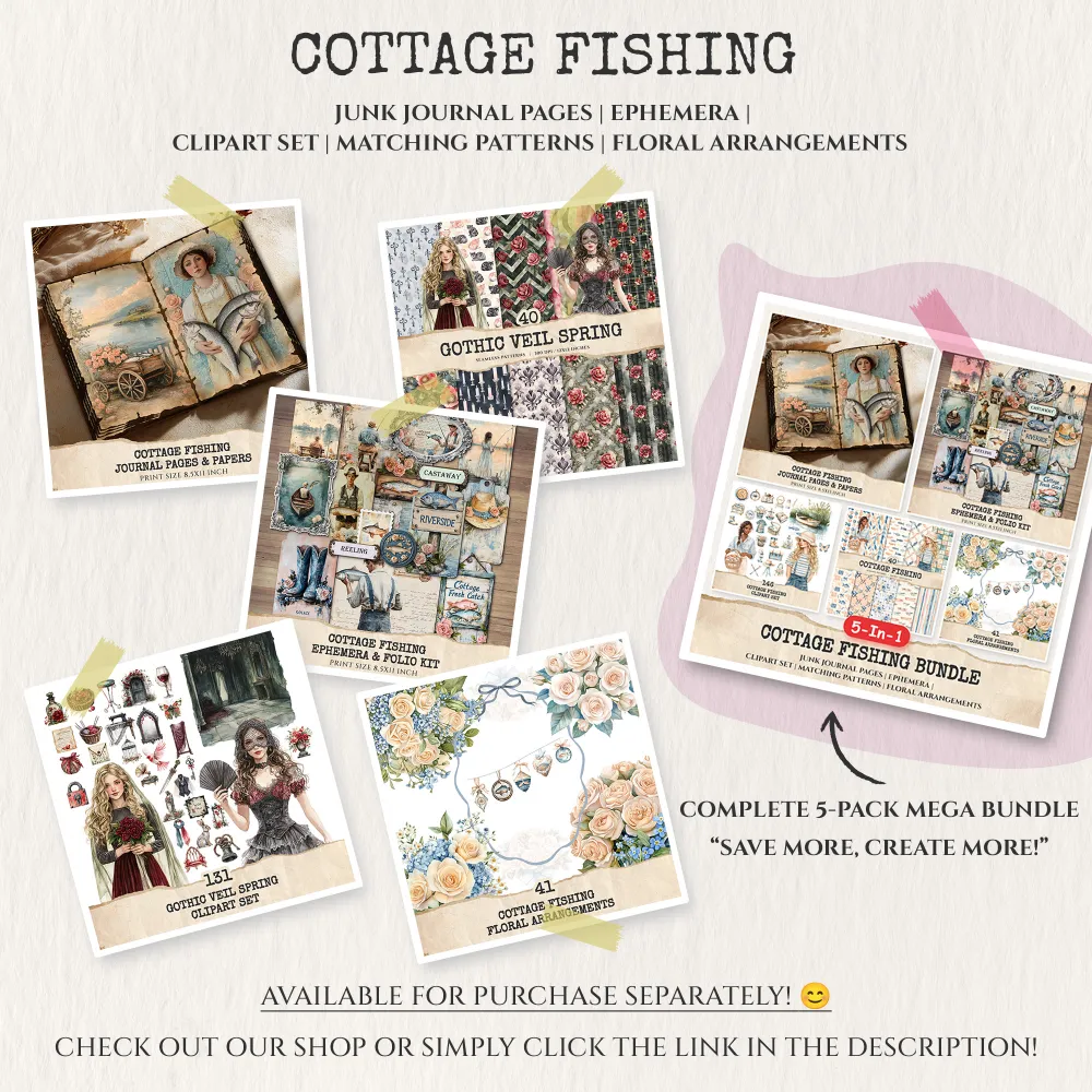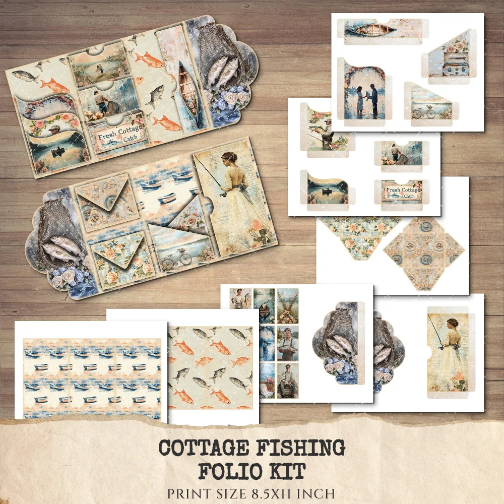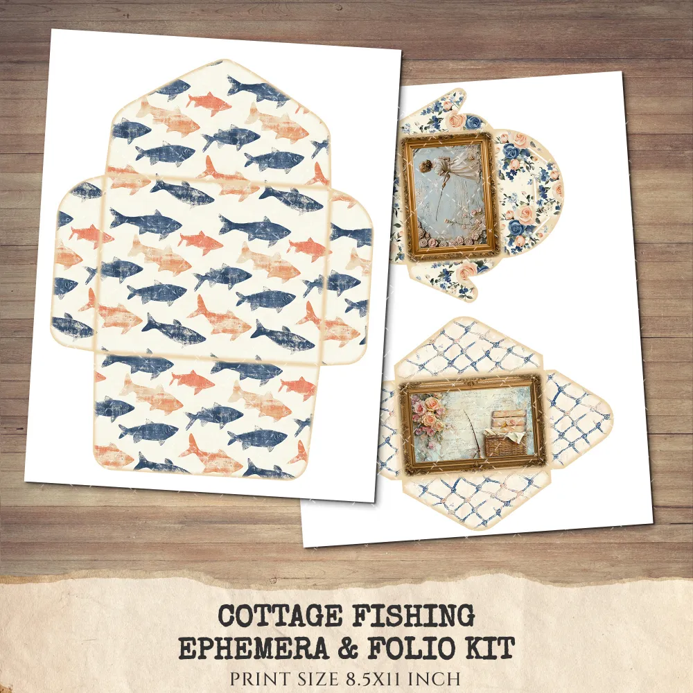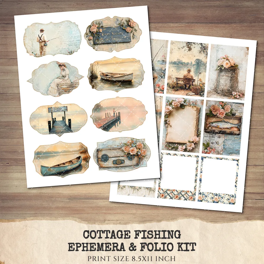 1. Cottage Fishing Junk Journal Pages & Papers: