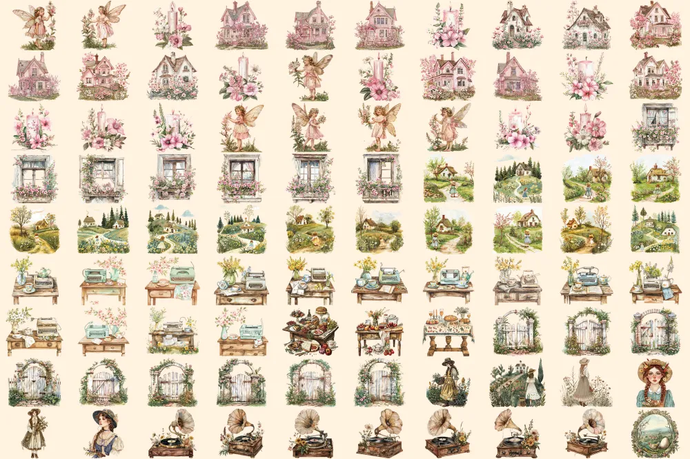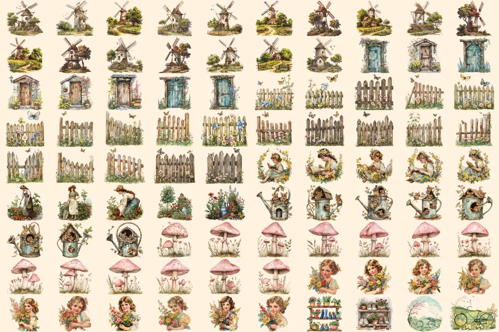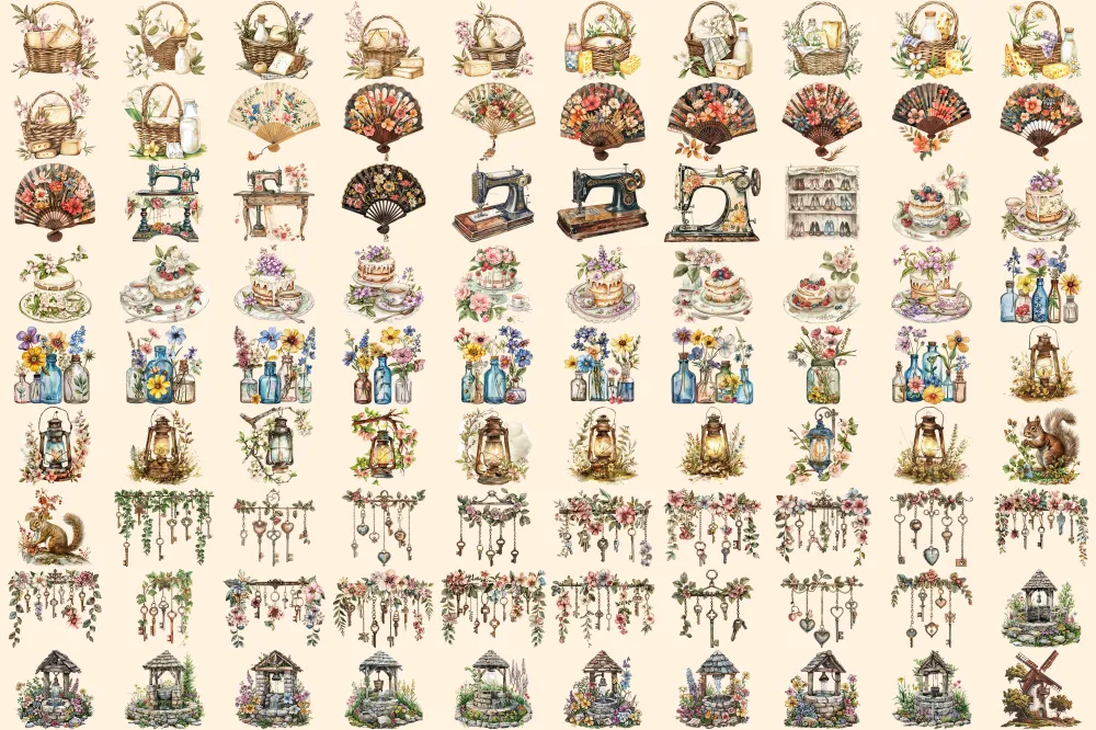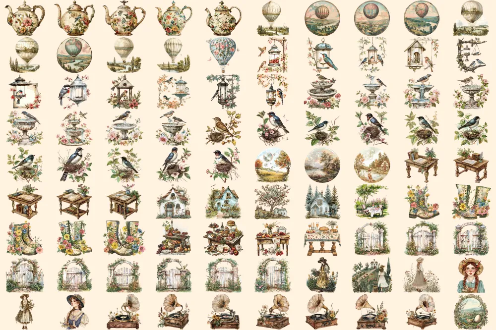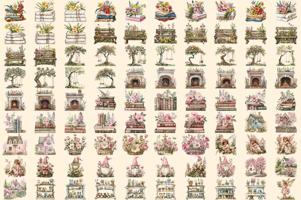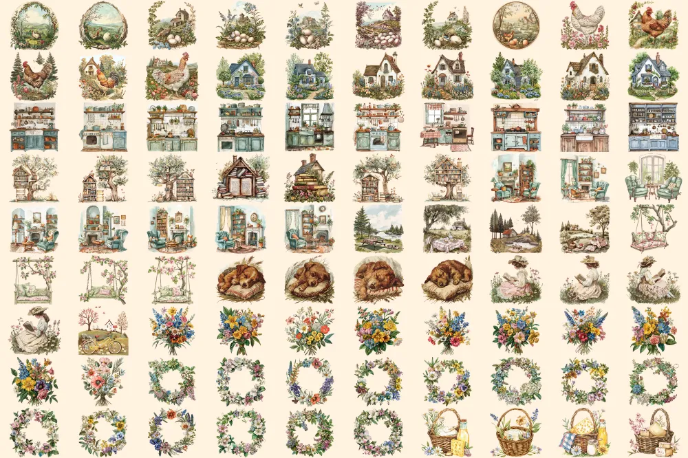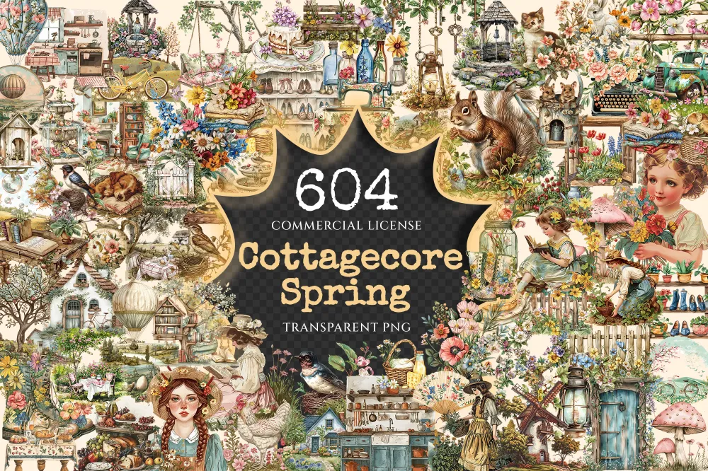 Cottagecore Spring Clipart Bundle – 600+ transparent PNG, Springtime clipart, Countryside nature graphics, Commercial use, Digital download