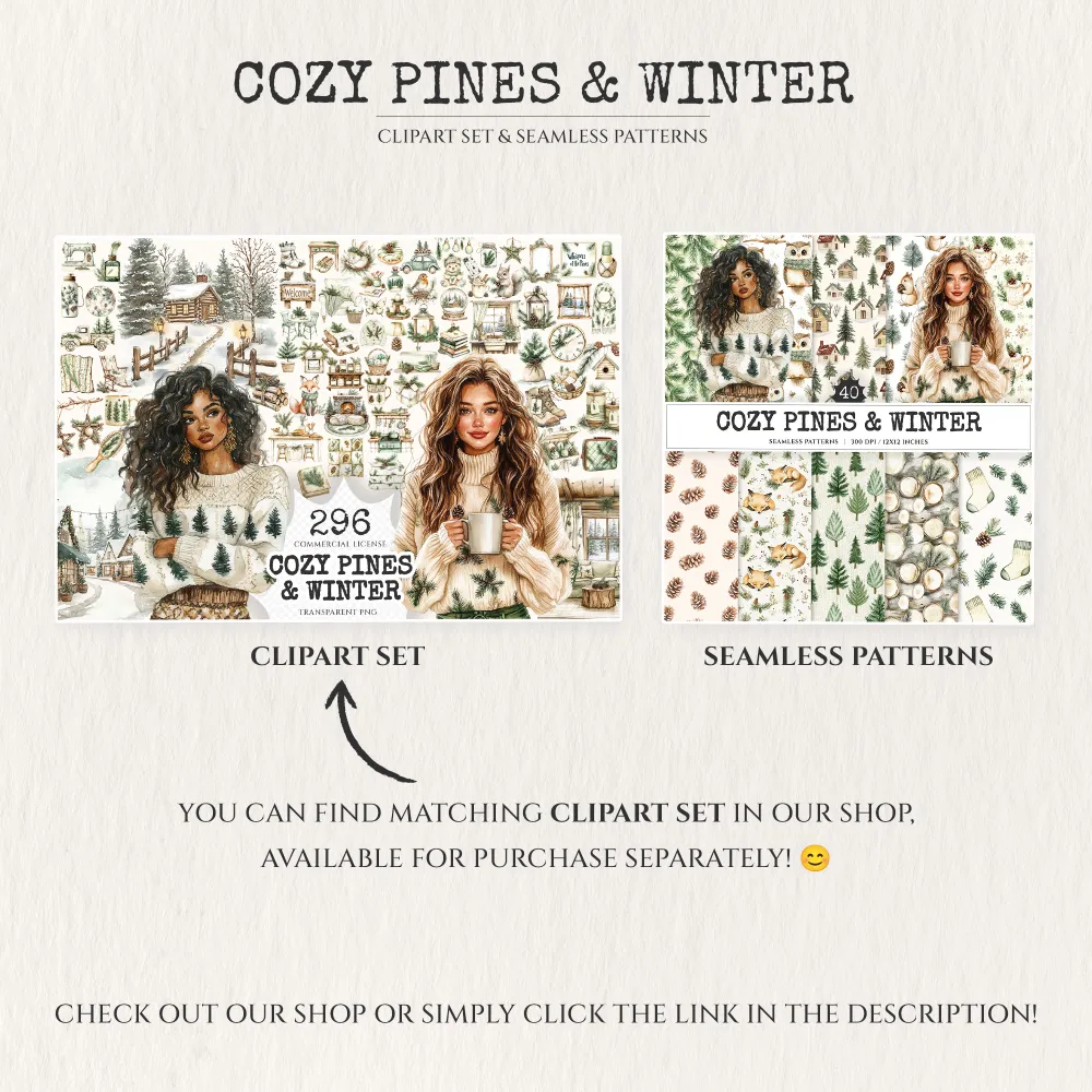1. Cozy Pines and Winter Watercolor Clipart Set (296 PNG files):
