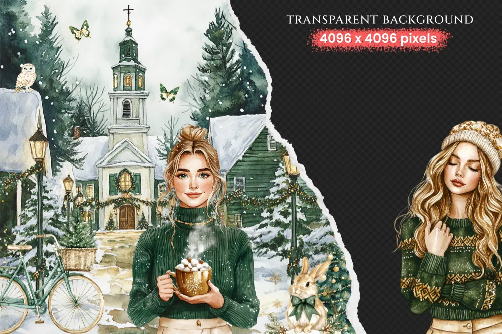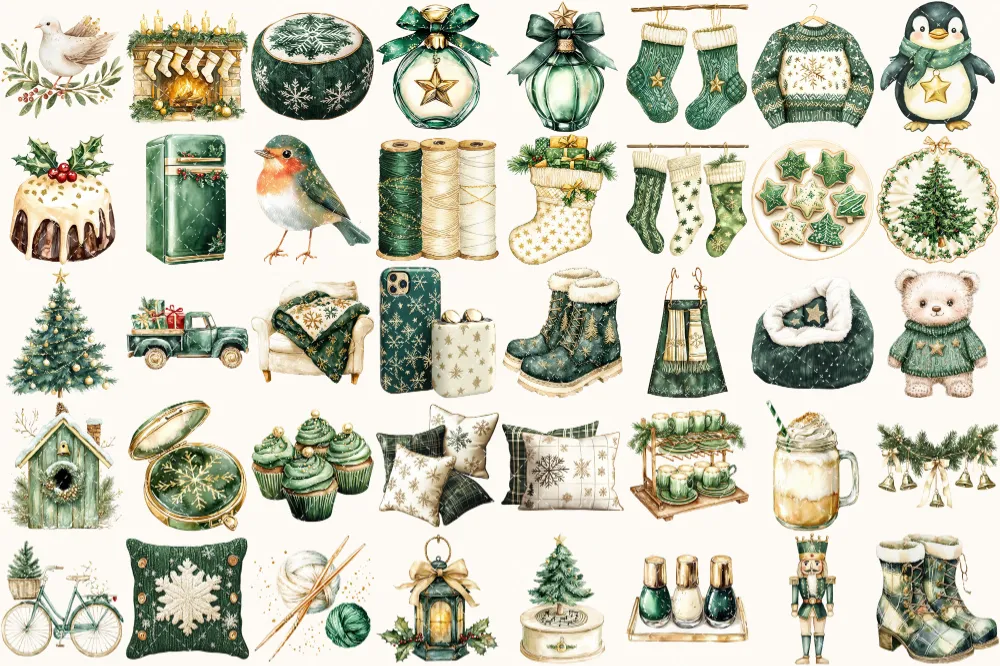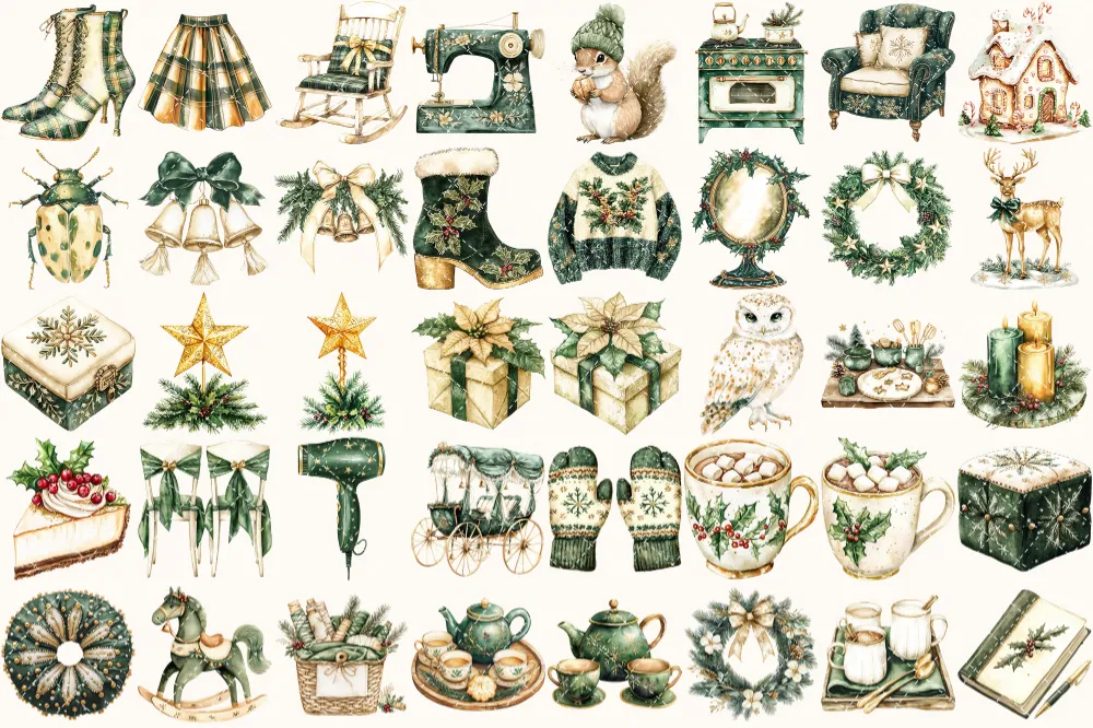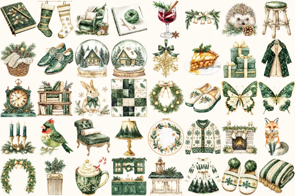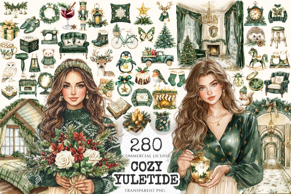 Cozy Yuletide Watercolor Clipart Set – 275+ transparent PNG, Cozy holiday graphics, Festive christmas png, Commercial use, Digital download