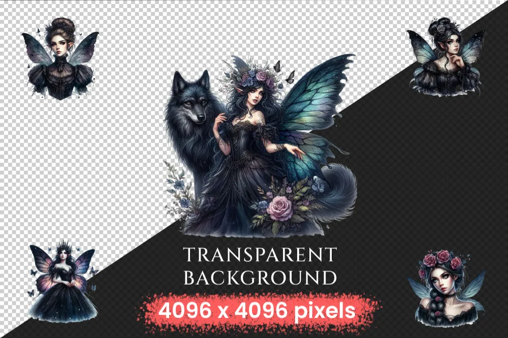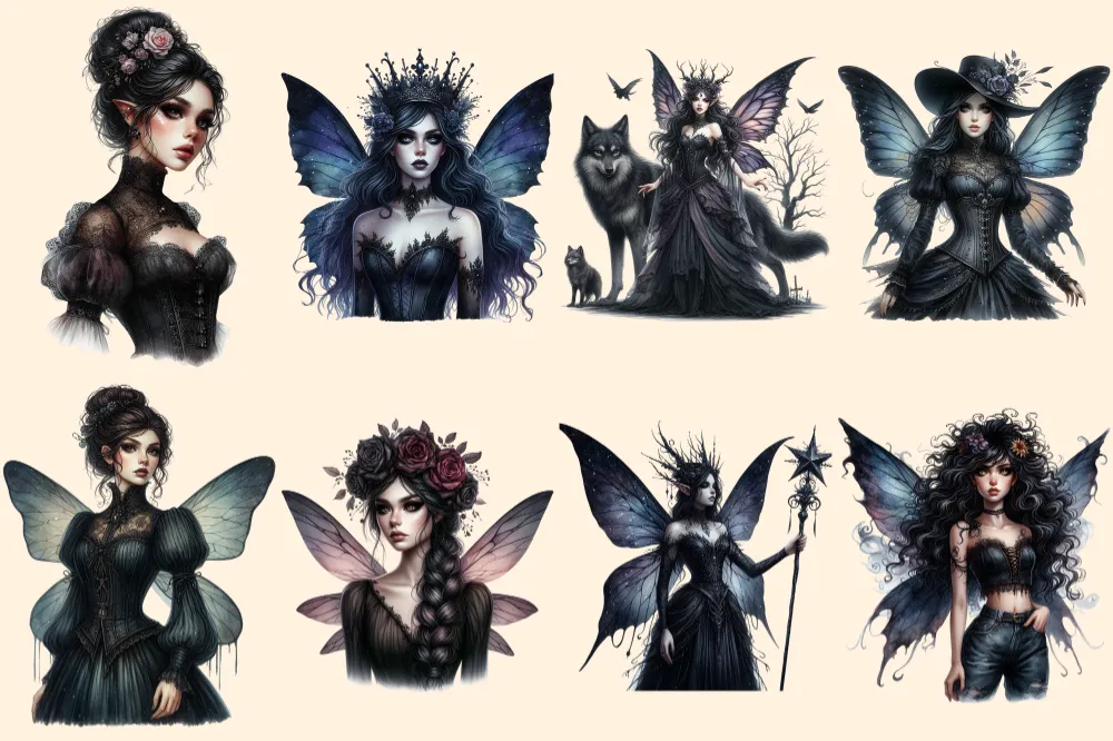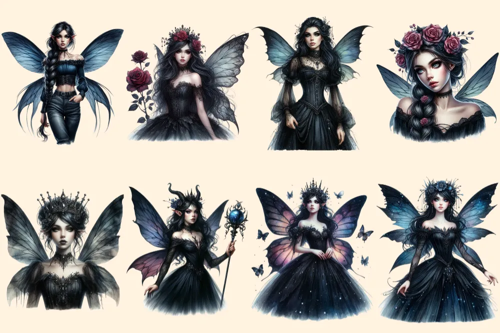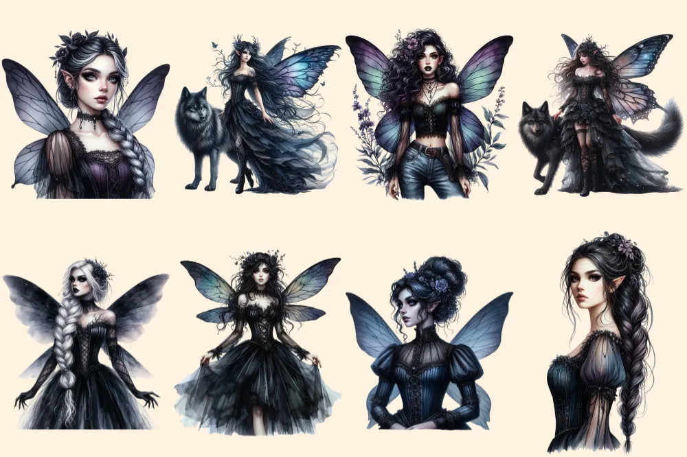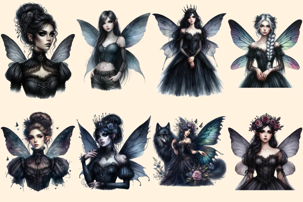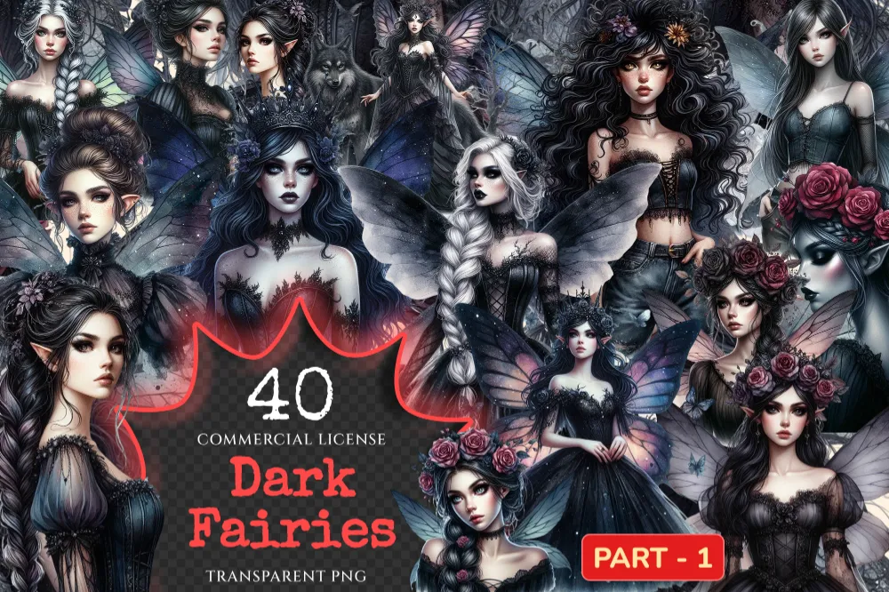 Dark Fairies PNG Clipart Collection – 40 PNG, Enchanted witch illustrations, Gothic printables, Commercial use, Digital download