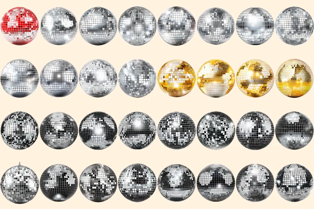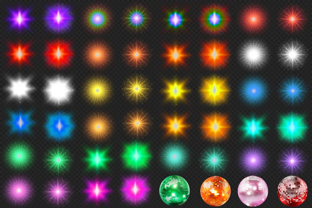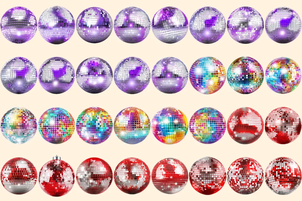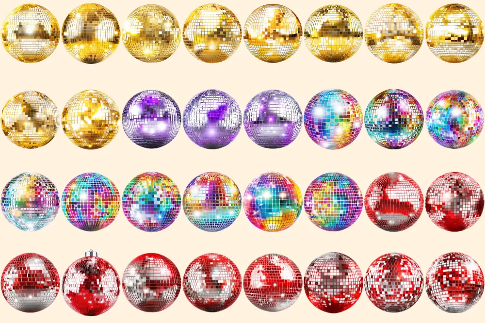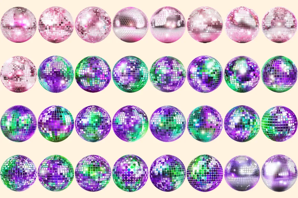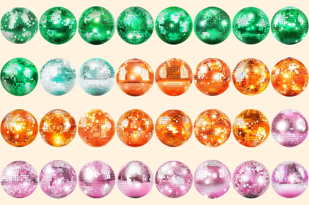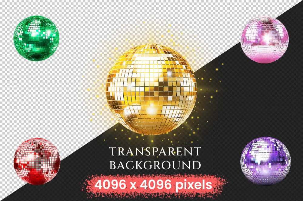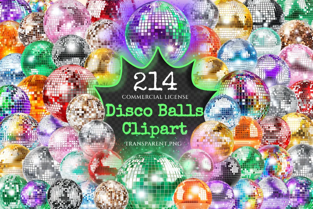 Disco Balls Watercolor Clipart Bundle – 210+ transparent PNG, Party dance illustrations, Light burst png, Commercial use, Digital download