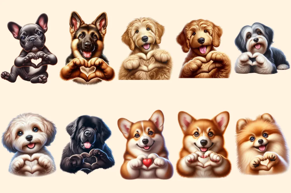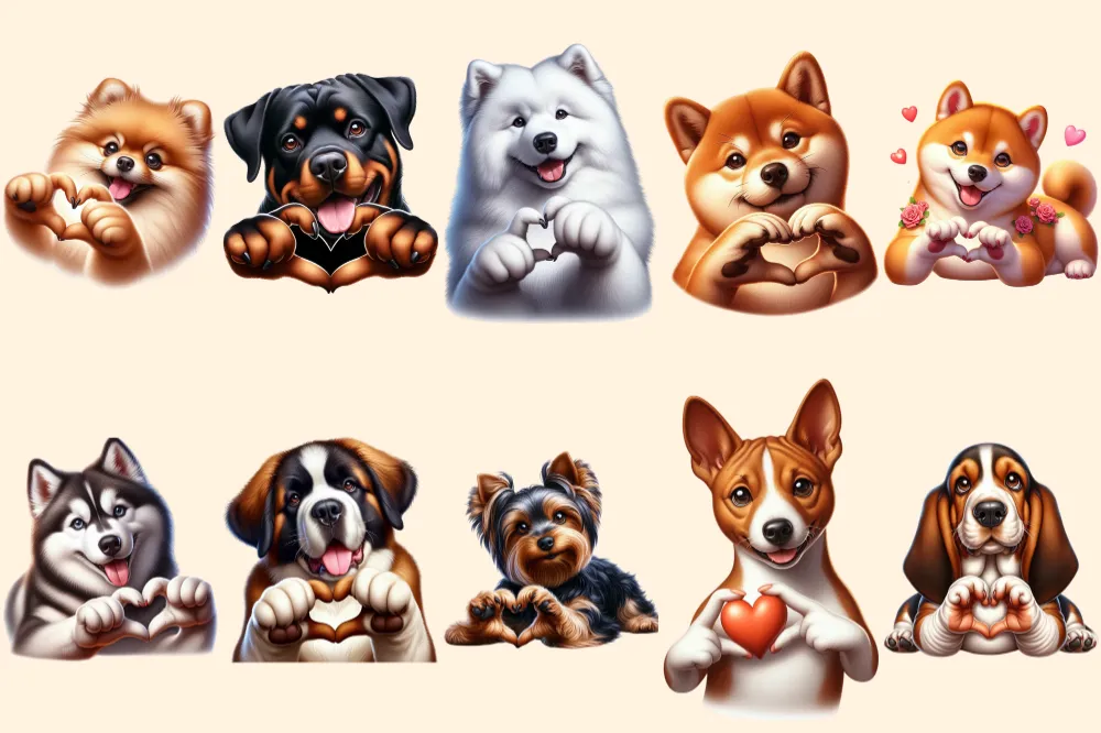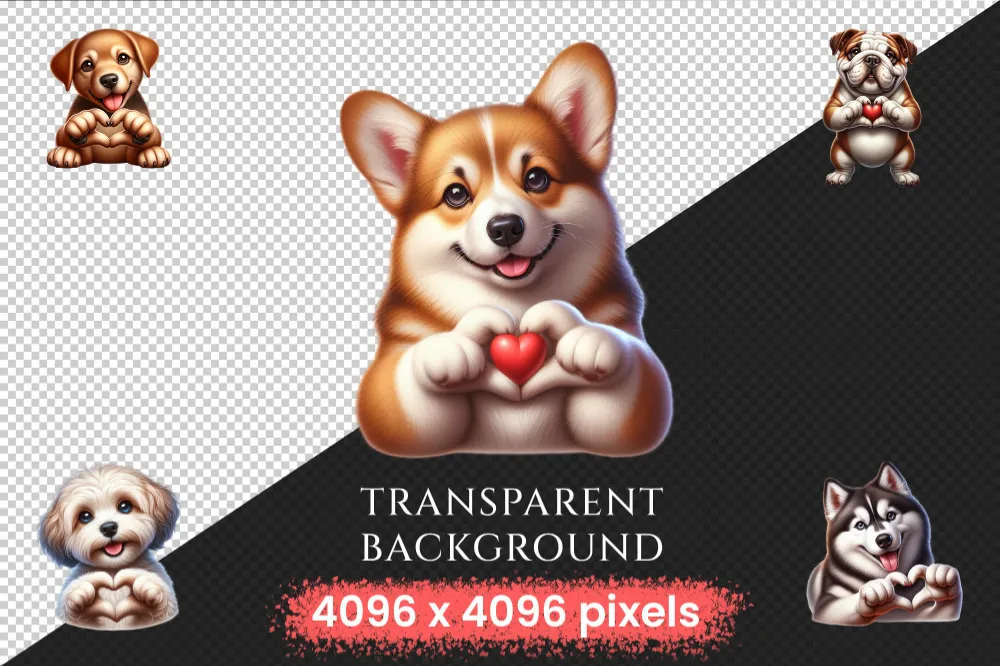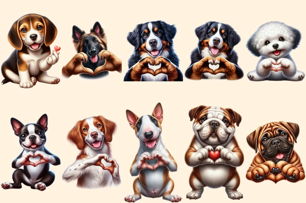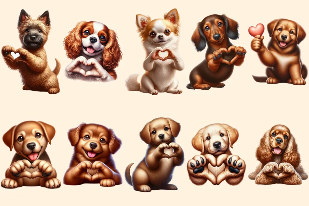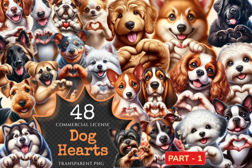 Dog Hearts PNG Clipart Collection – 48 PNG, Charming puppy illustrations, Sweet dog love printables, Commercial use, Digital download