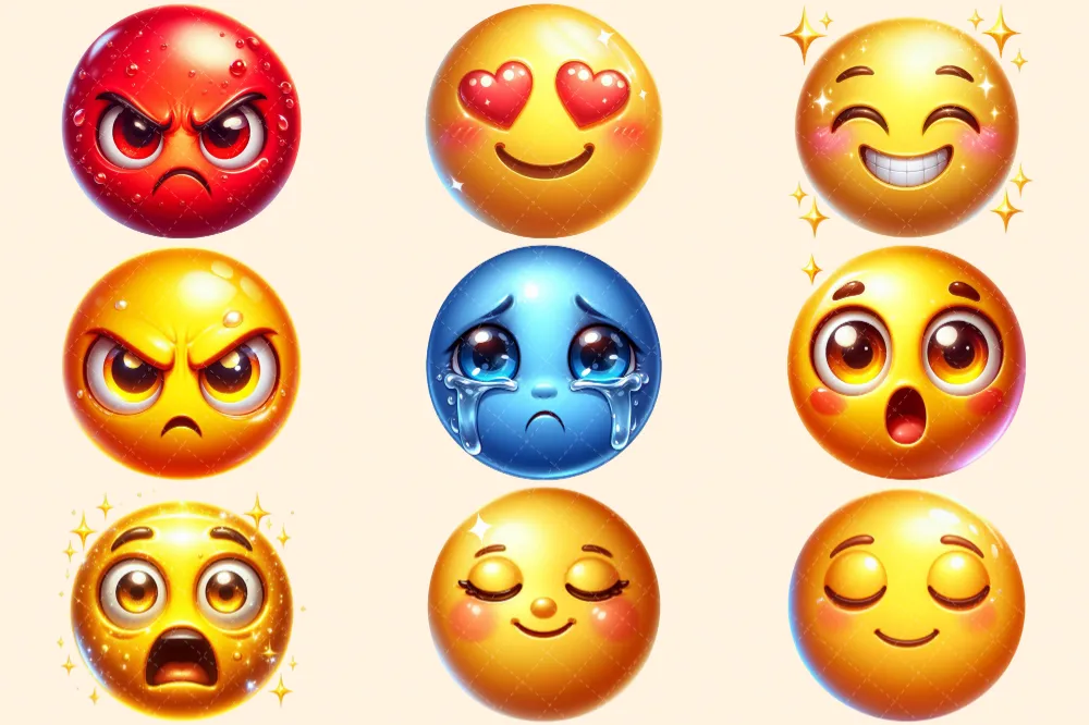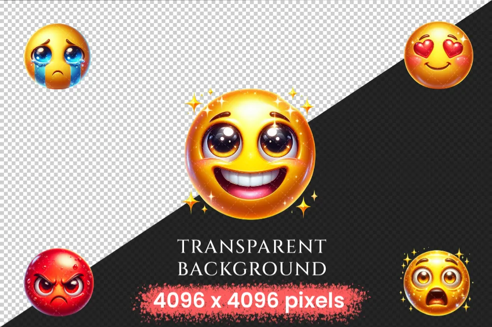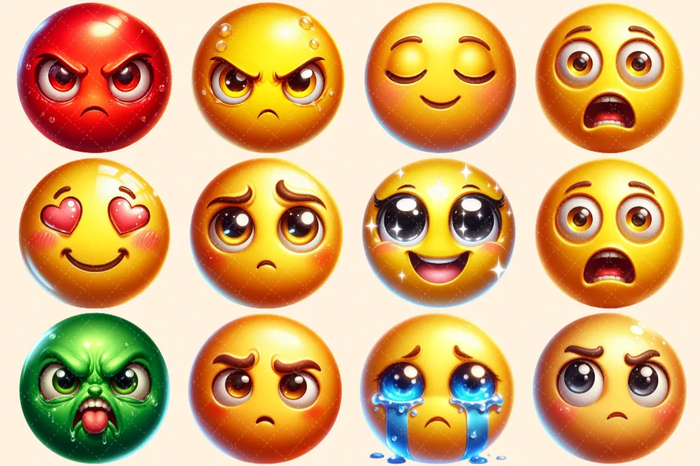 Emotion Emojis PNG Clipart Collection – 47 PNG, Emotional face illustrations, Expression printables, Commercial use, Digital download