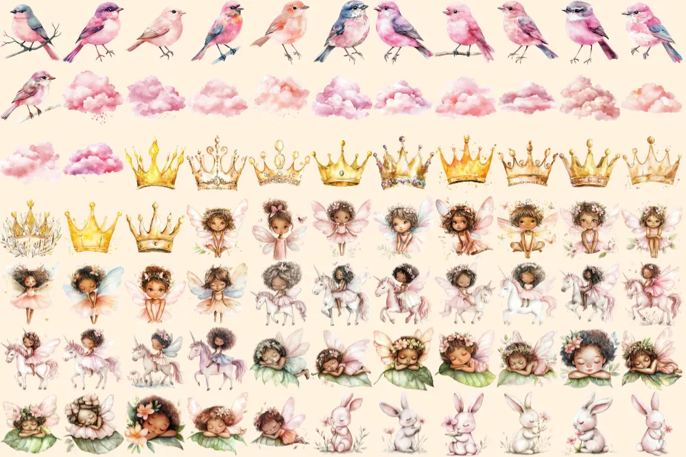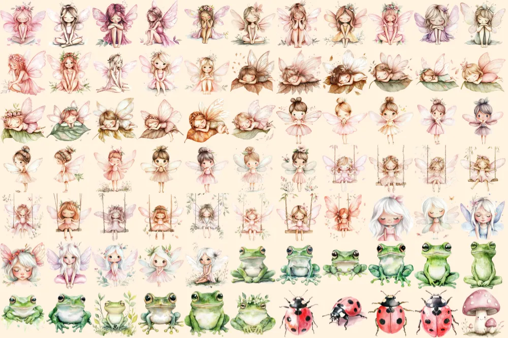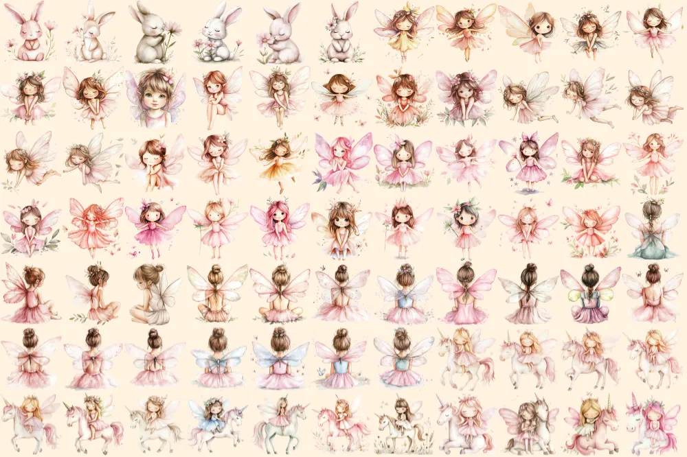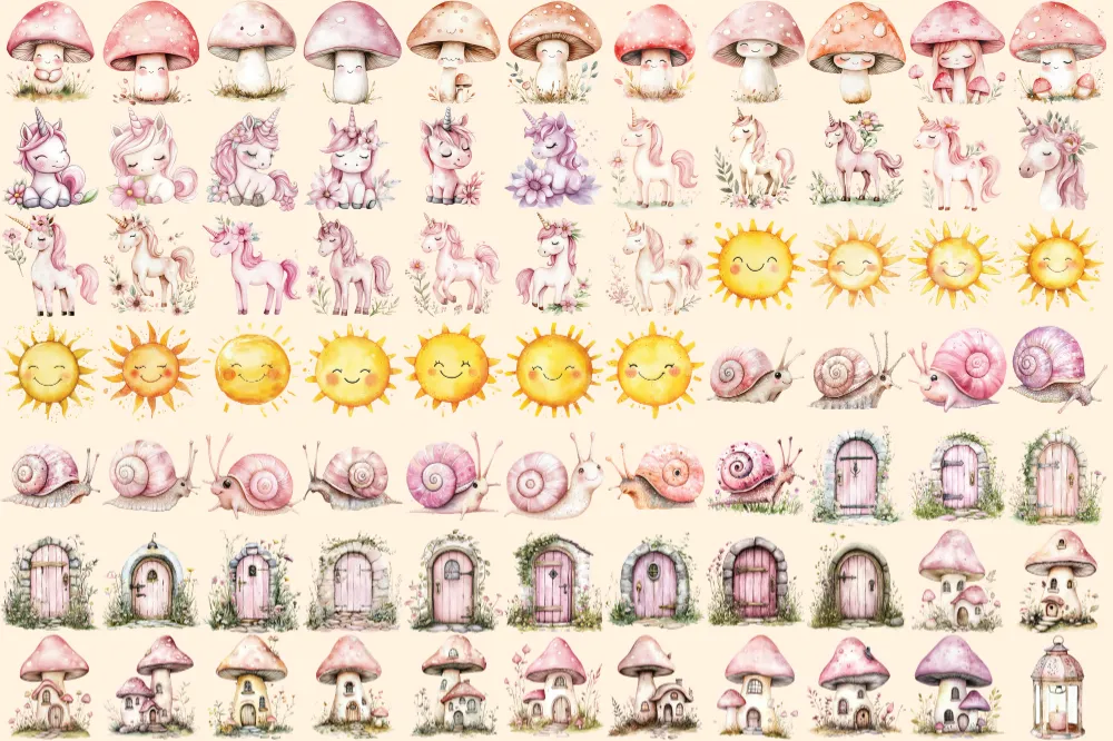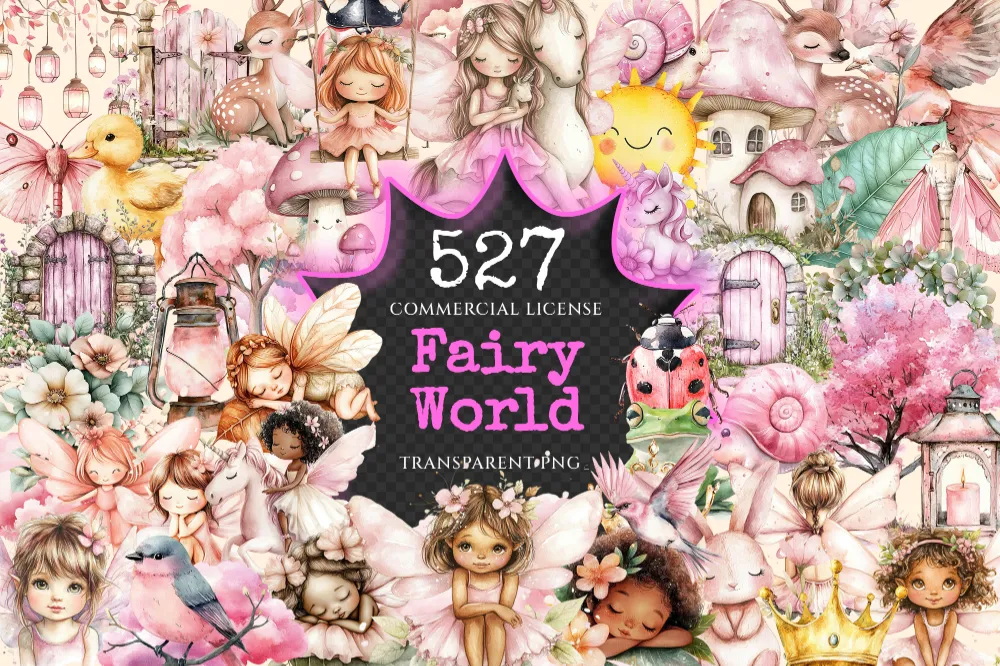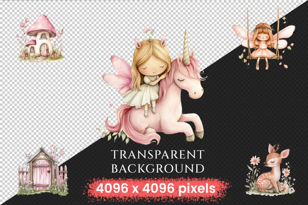 Fairy World Watercolor Clipart Bundle – 523+ transparent PNG, Whimsical fairy garden graphics, Unicorn png, Commercial use, Digital download