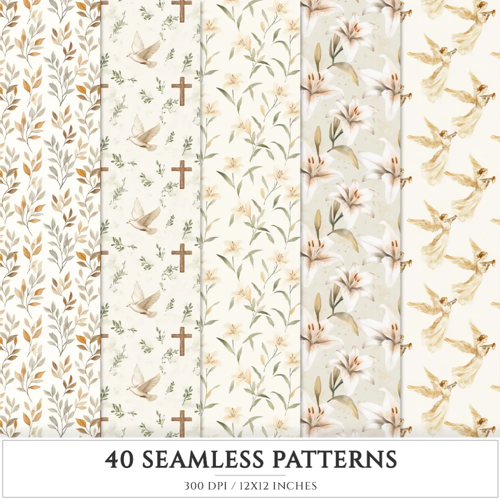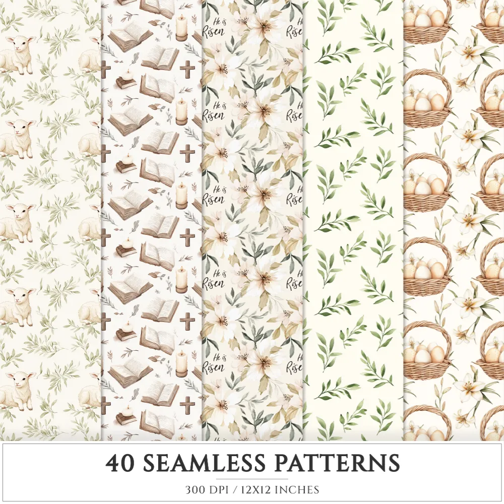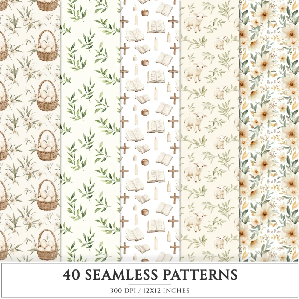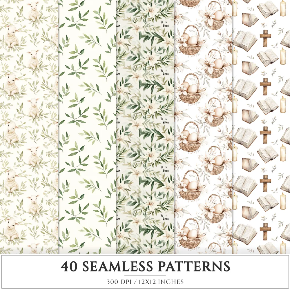 Faithful Easter Seamless Patterns, Jesus cross JPEG, He is risen seamless pattern, Easter lily repeating pattern, Digital scrapbook paper
