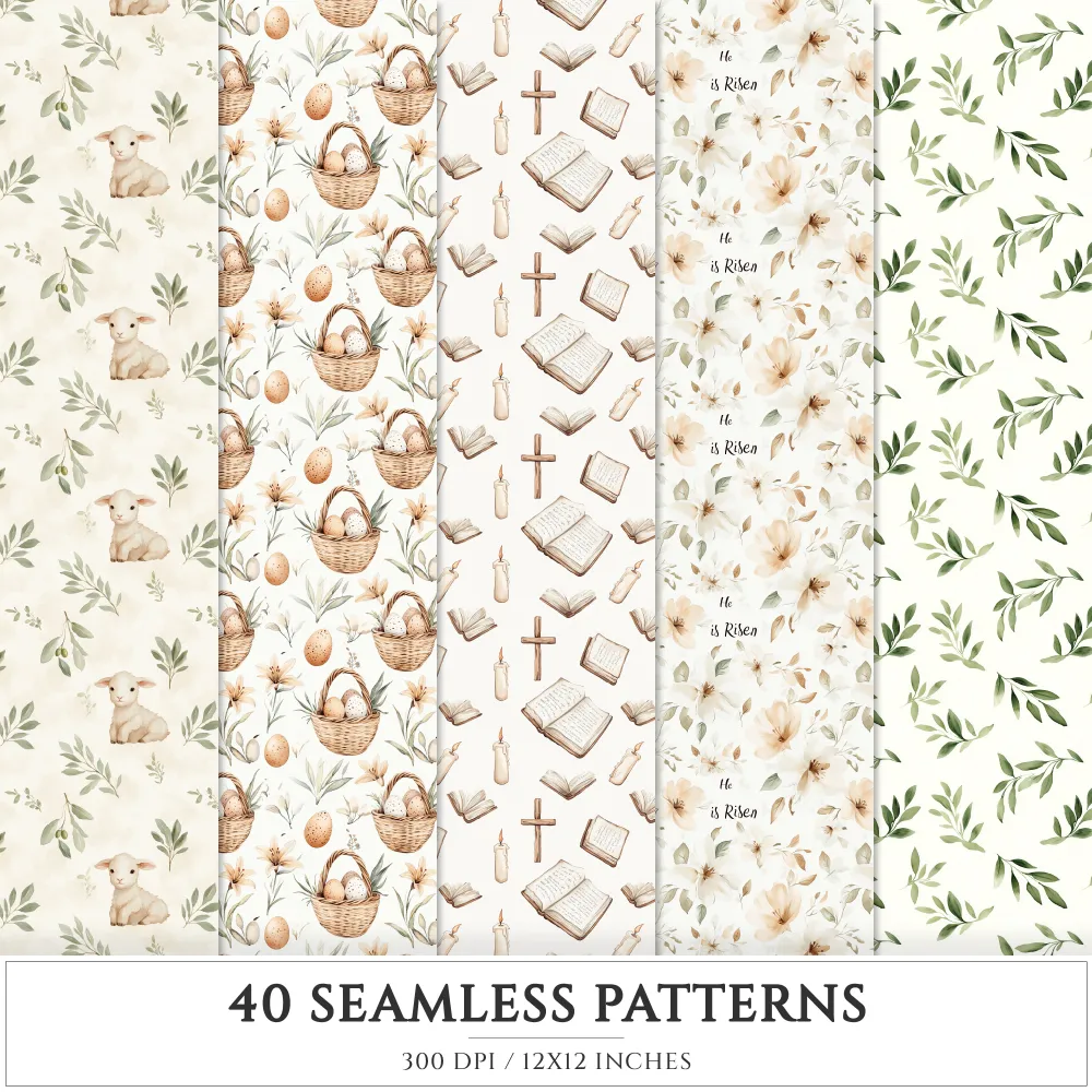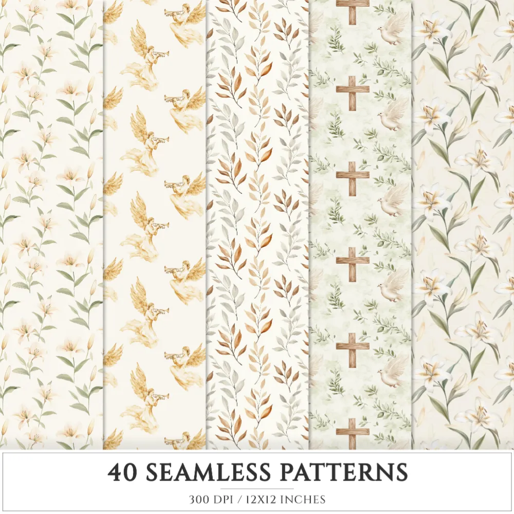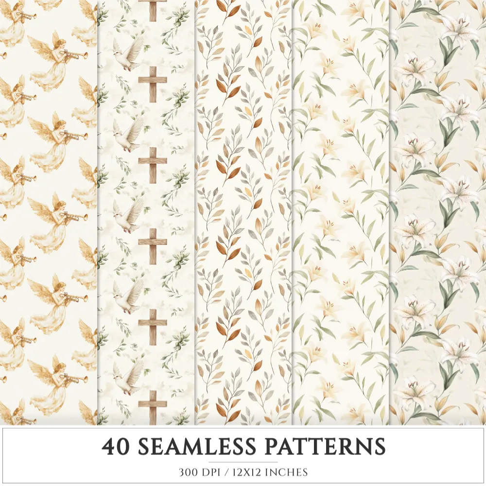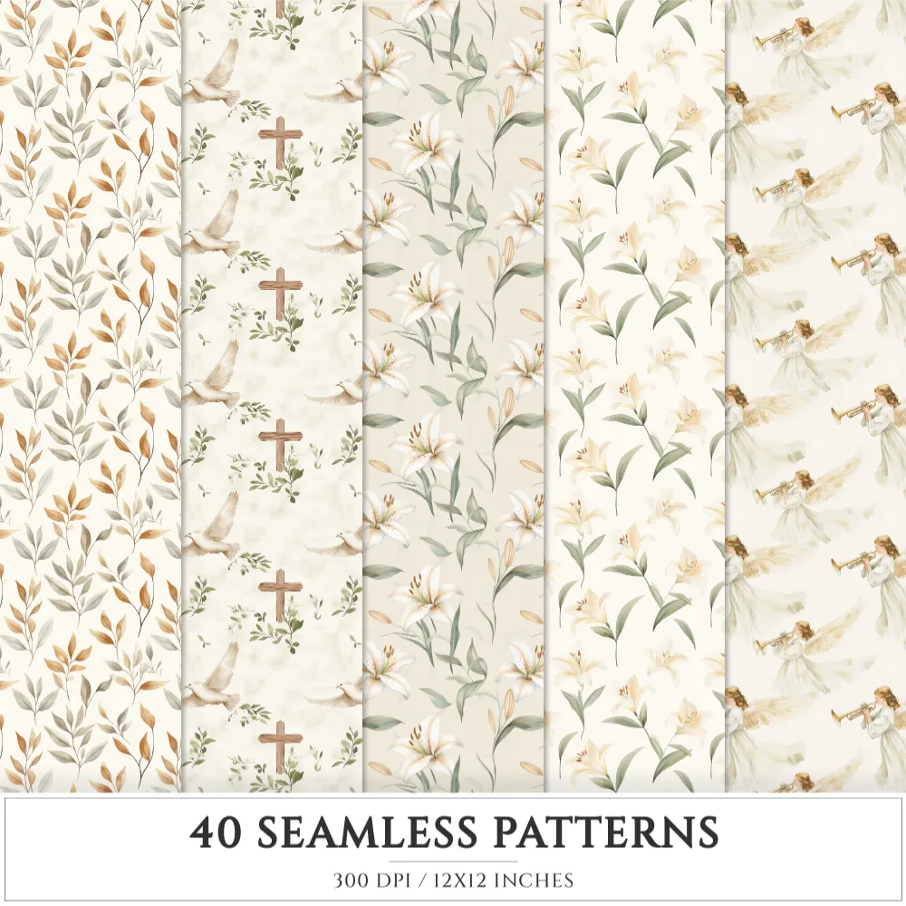 Faithful Easter Seamless Patterns, Jesus cross JPEG, He is risen seamless pattern, Easter lily repeating pattern, Digital scrapbook paper