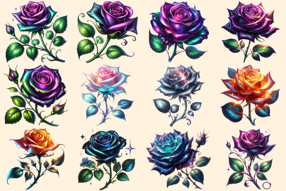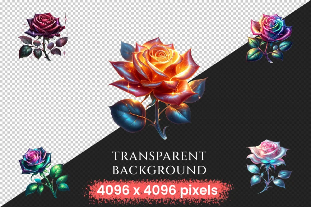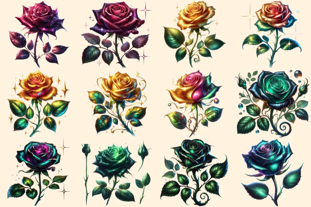 Fantasy Roses PNG Clipart Collection – 54 PNG, Magical rose illustration, Enchanted floral art, Commercial use, Digital download