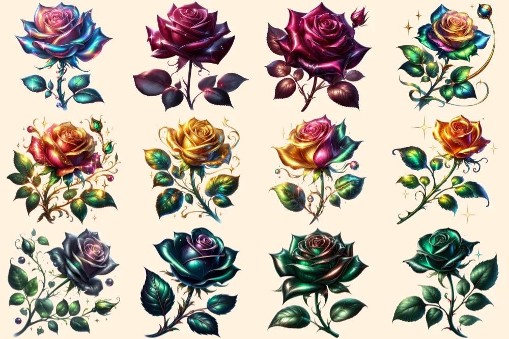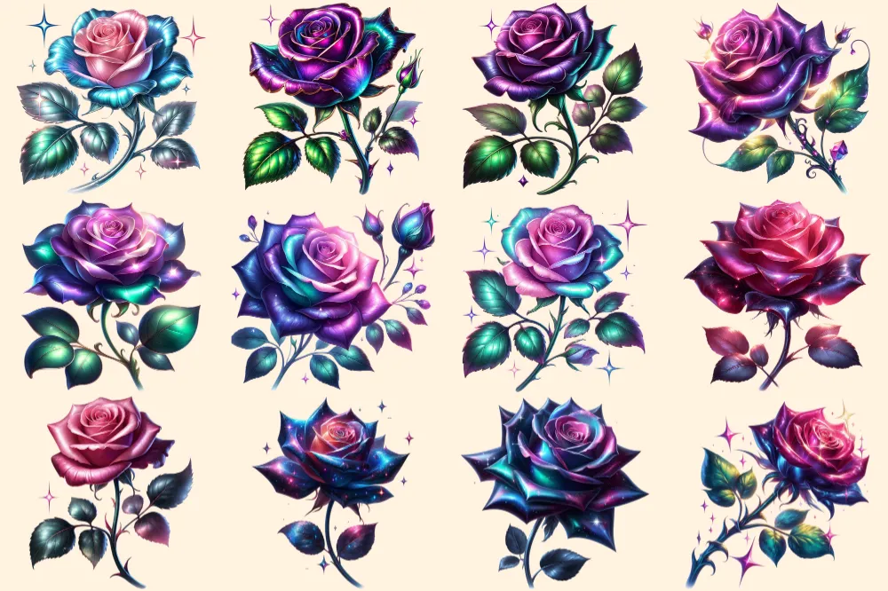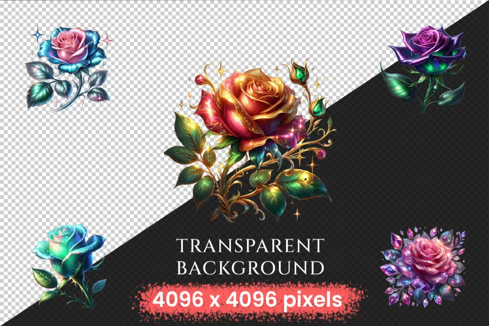 Fantasy Roses PNG Clipart Collection – 54 PNG, Magical rose illustration, Enchanted floral art, Commercial use, Digital download