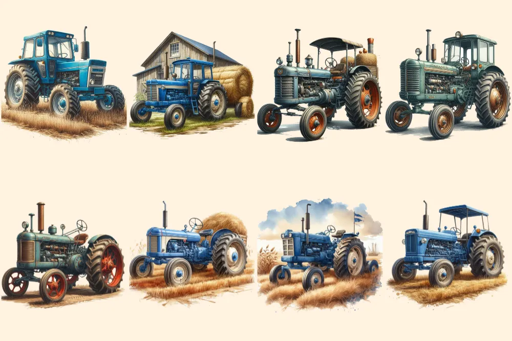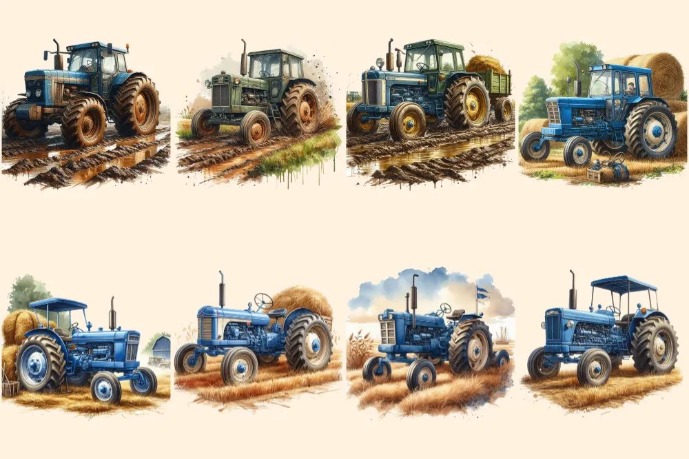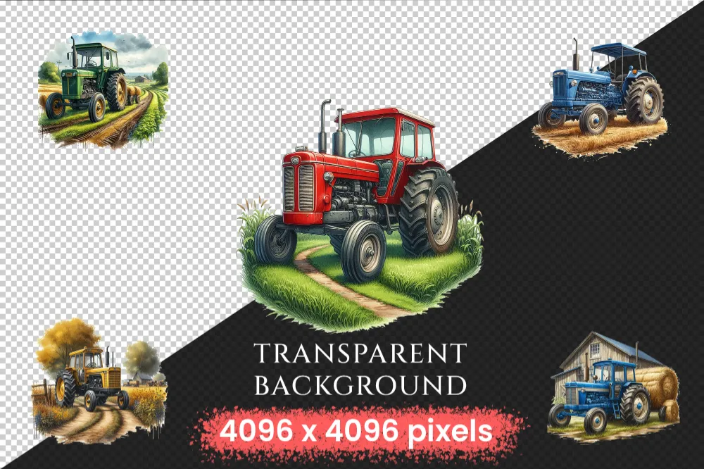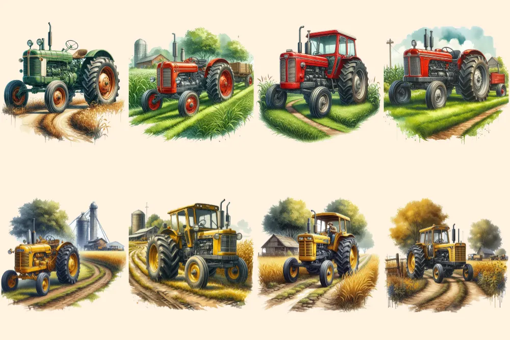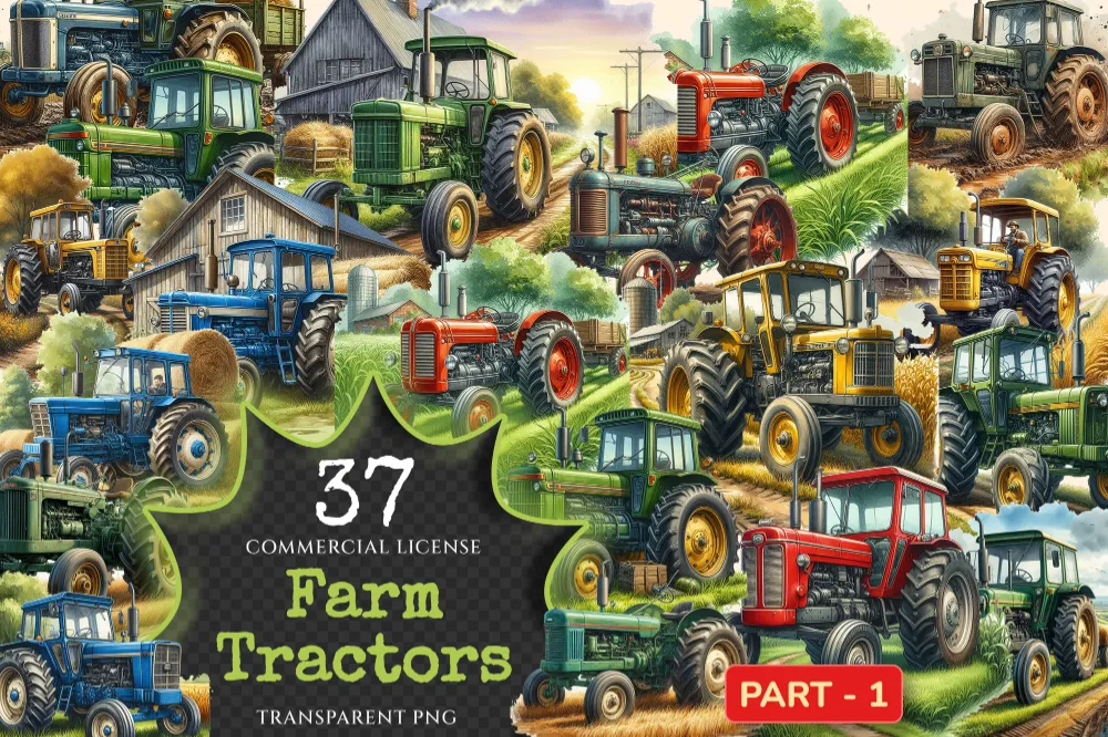 Farm Tractors PNG Clipart Collection – 37 PNG, Farm tractor illustrations, Rural agriculture art, Commercial use, Digital download