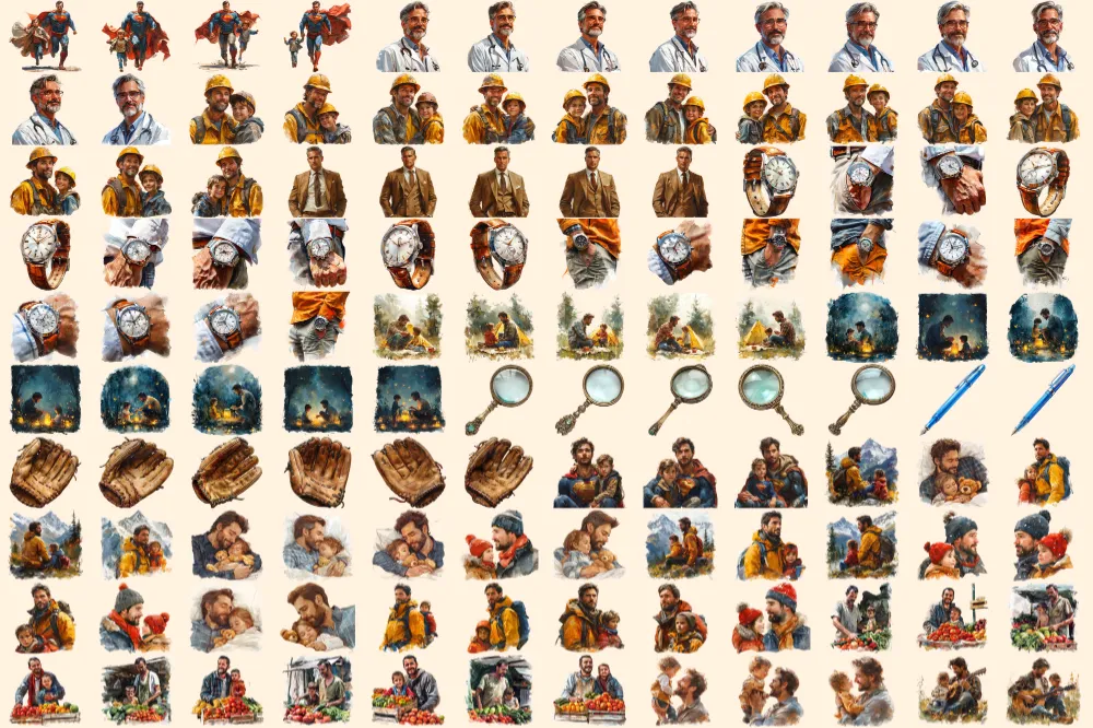 Fathers Clipart Bundle – 800+ transparent PNG, Father’s day clipart, Super dad graphics, Heartening father, Commercial use, Digital download