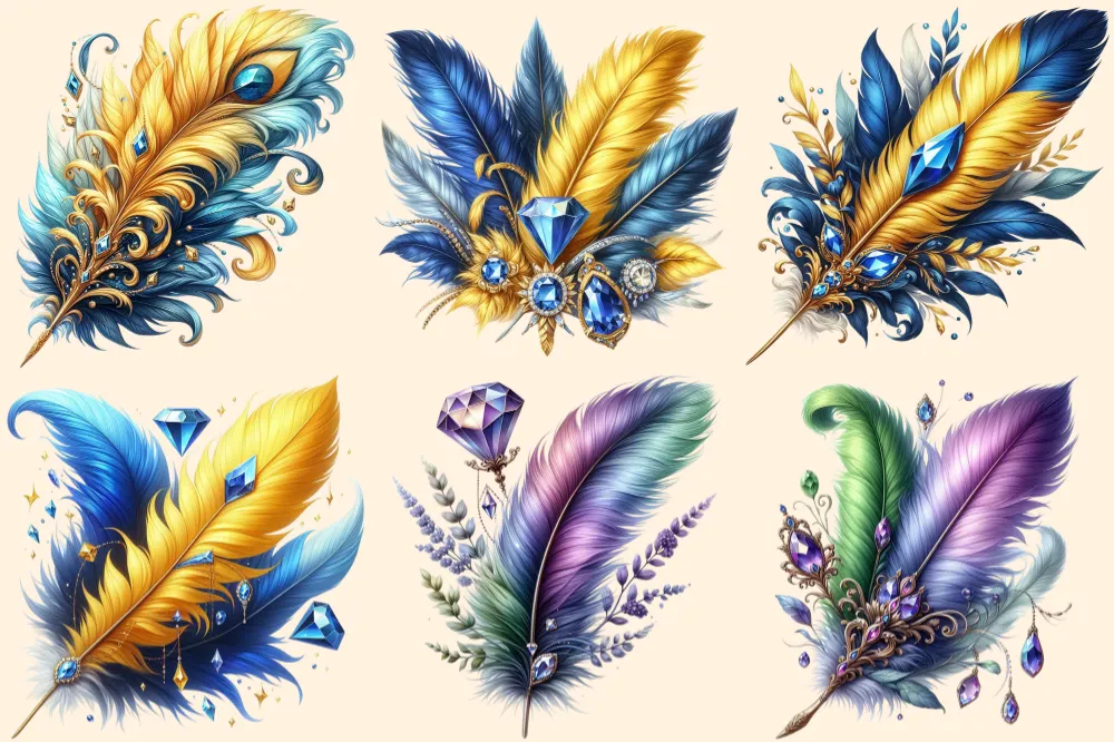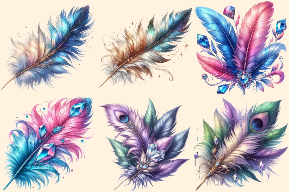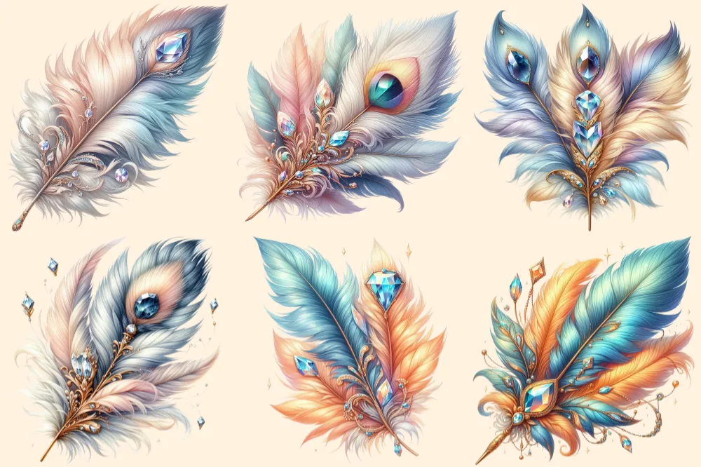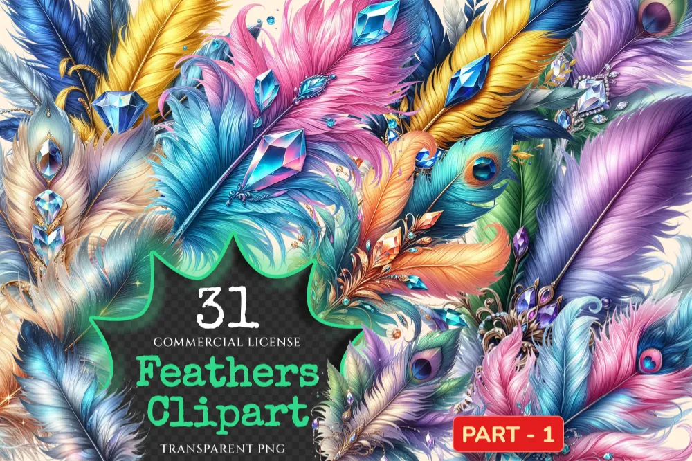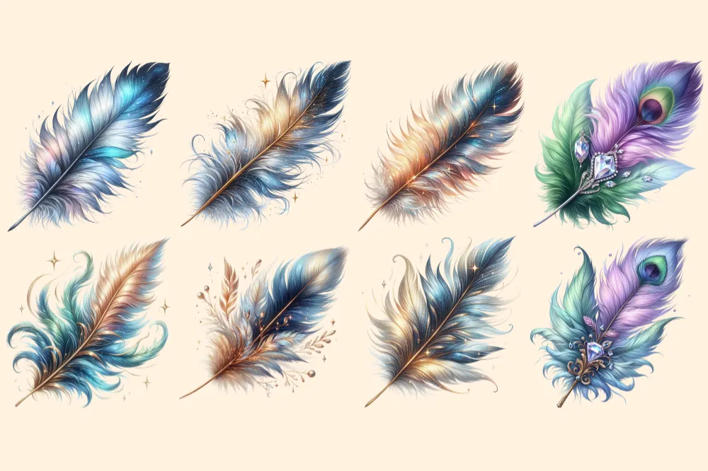 Feathers PNG Clipart Collection – 31 PNG, Artistic feather illustrations, Elegant printables, Commercial use, Digital download