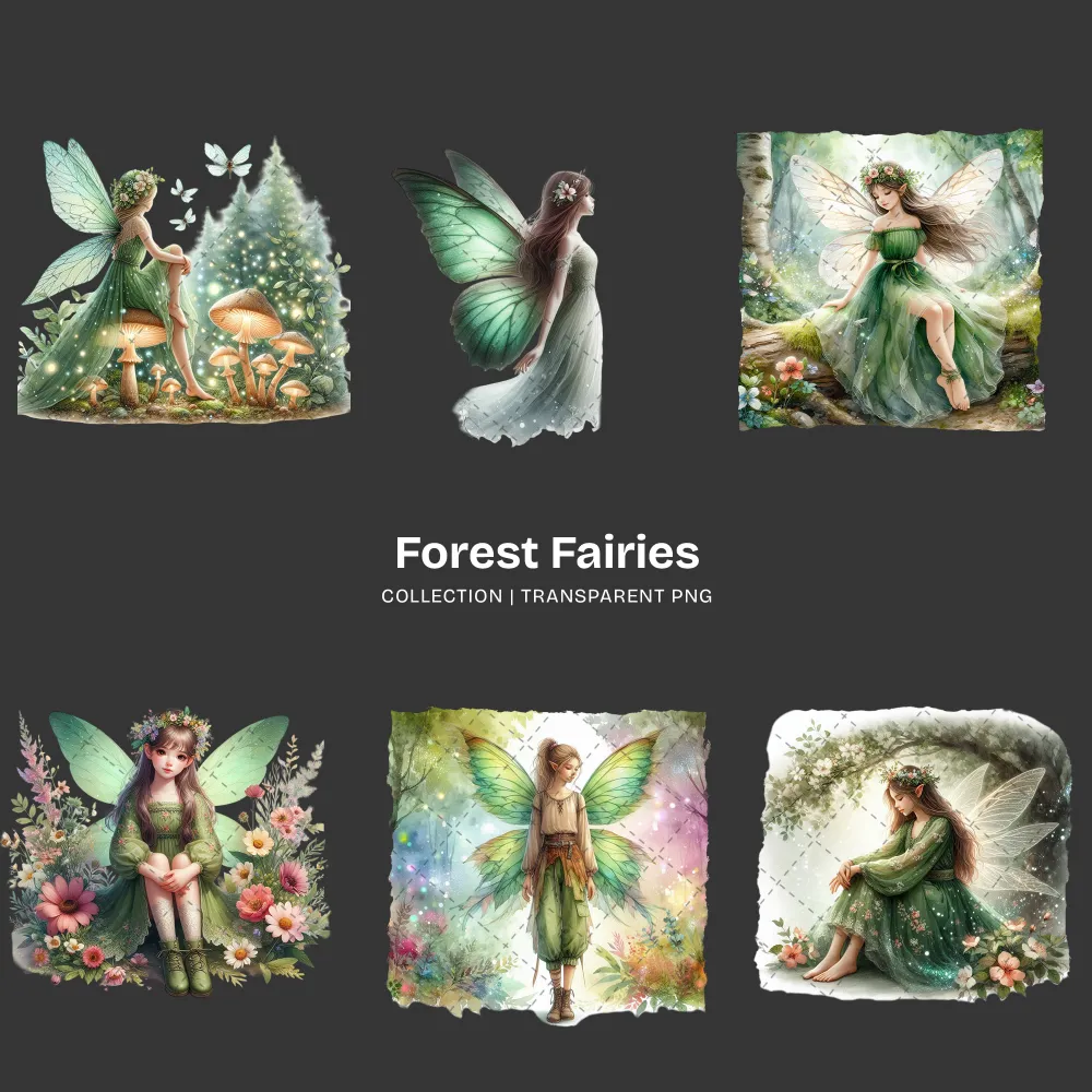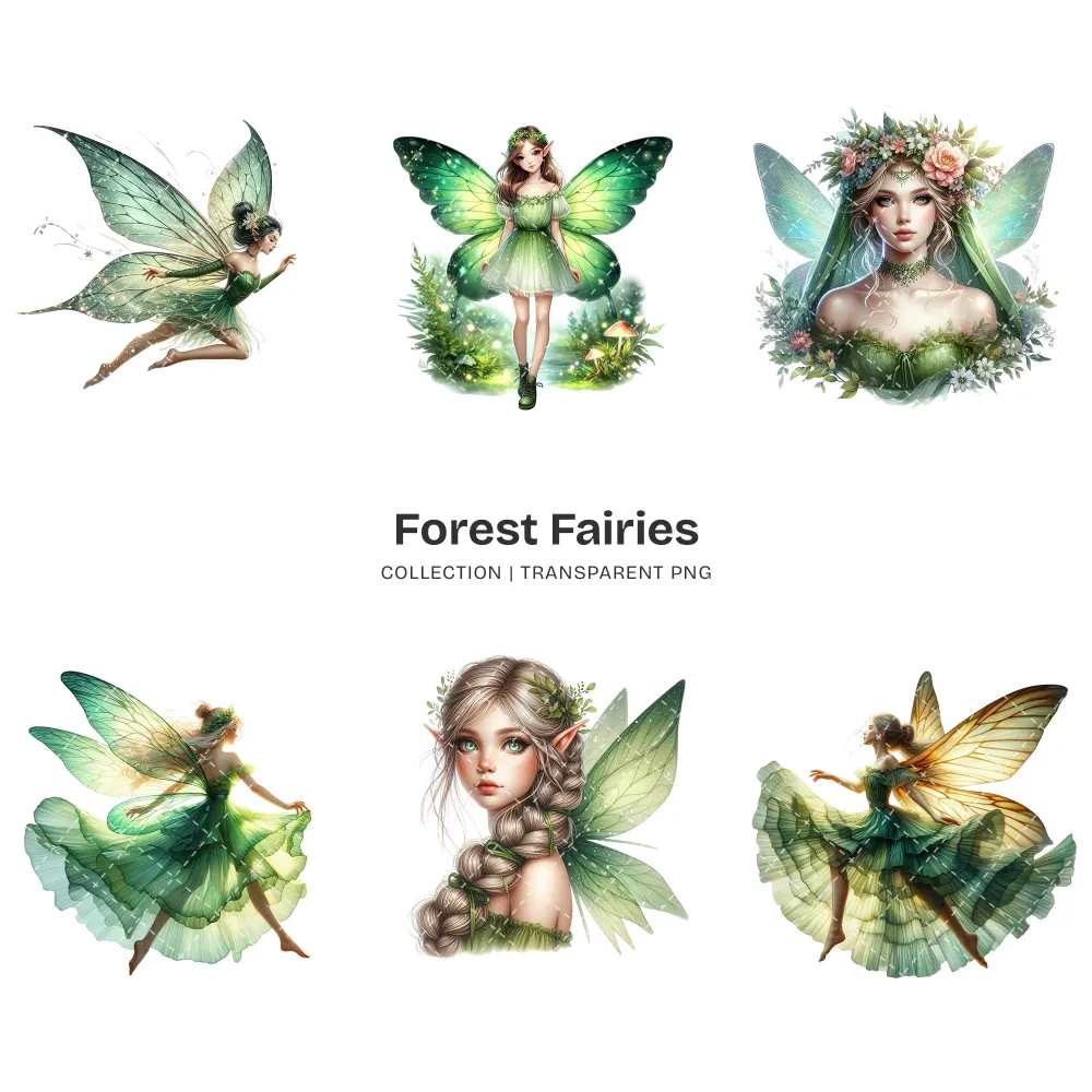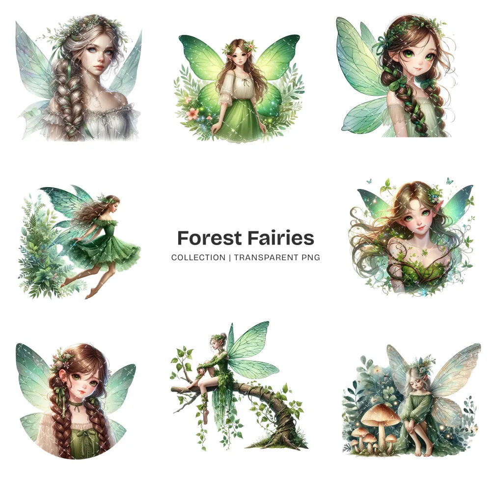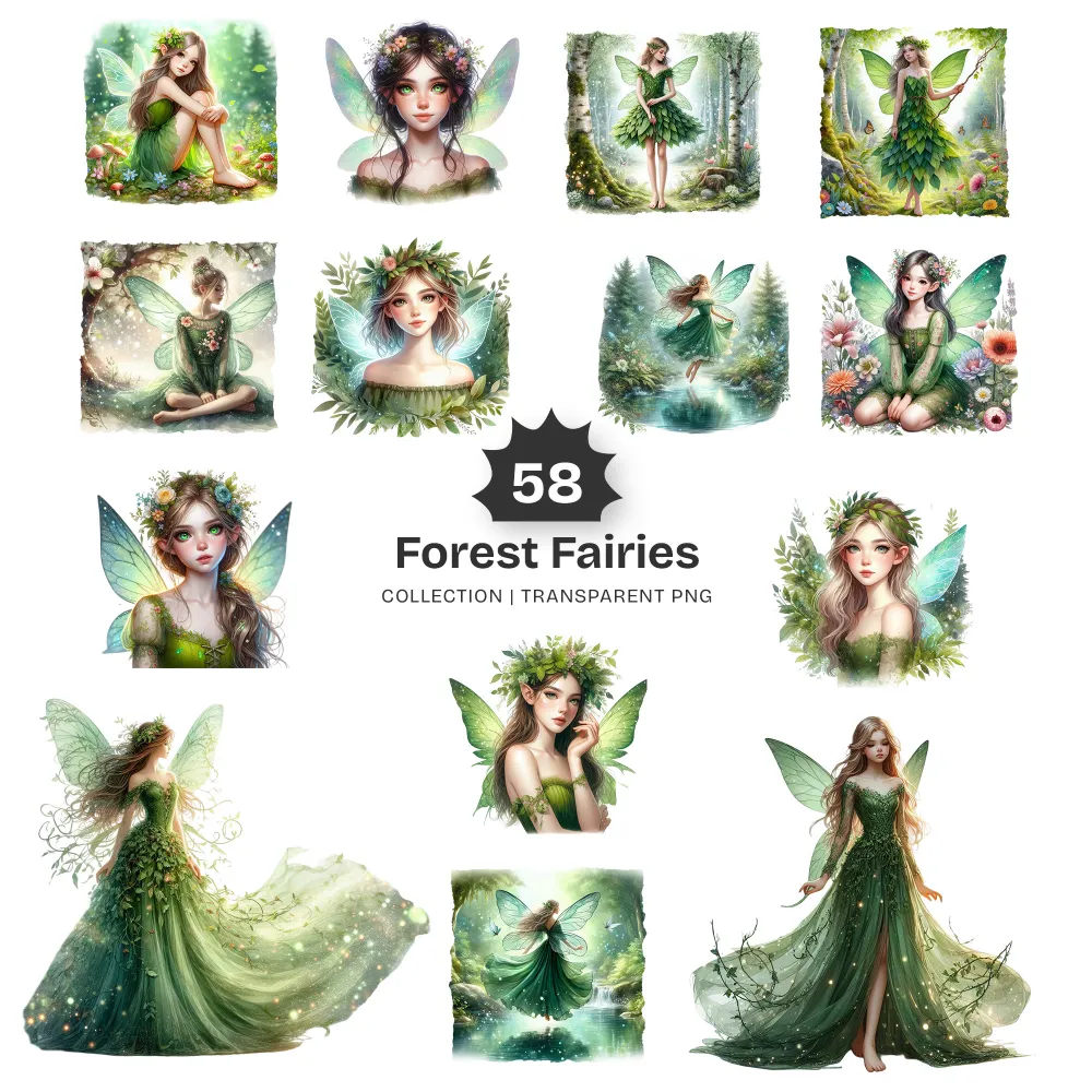 Forest Fairies PNG Clipart Collection – 58 PNG, Ethereal Fairy Graphics, Magical Forest Printables, Commercial use, Digital download