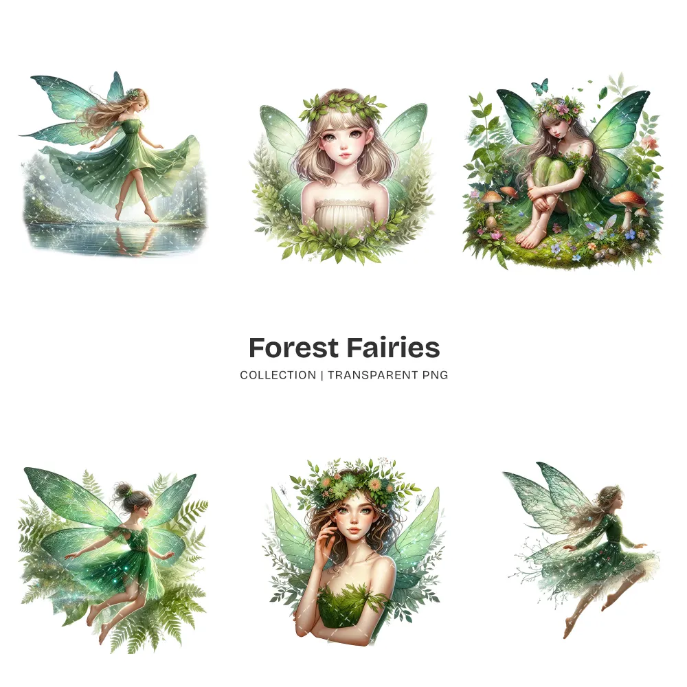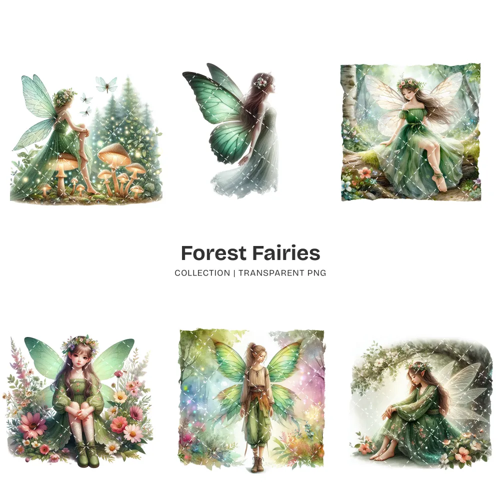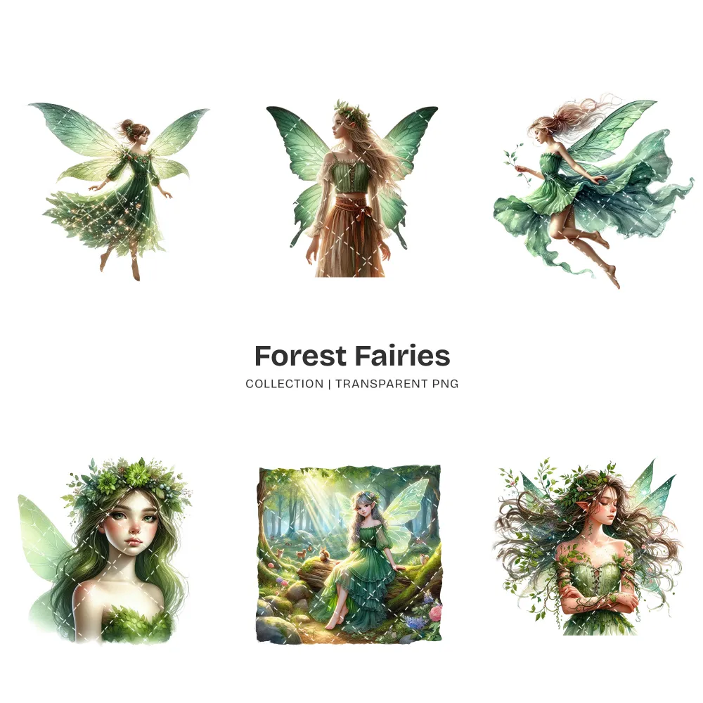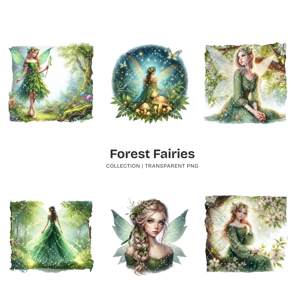 Forest Fairies PNG Clipart Collection – 58 PNG, Ethereal Fairy Graphics, Magical Forest Printables, Commercial use, Digital download