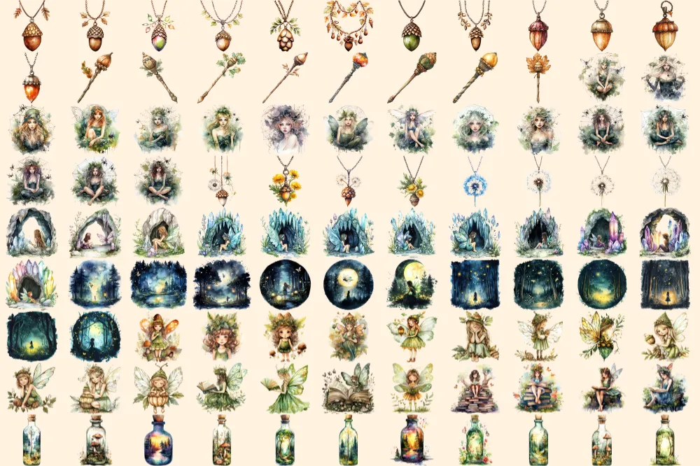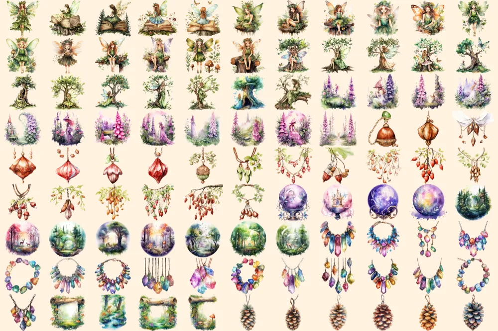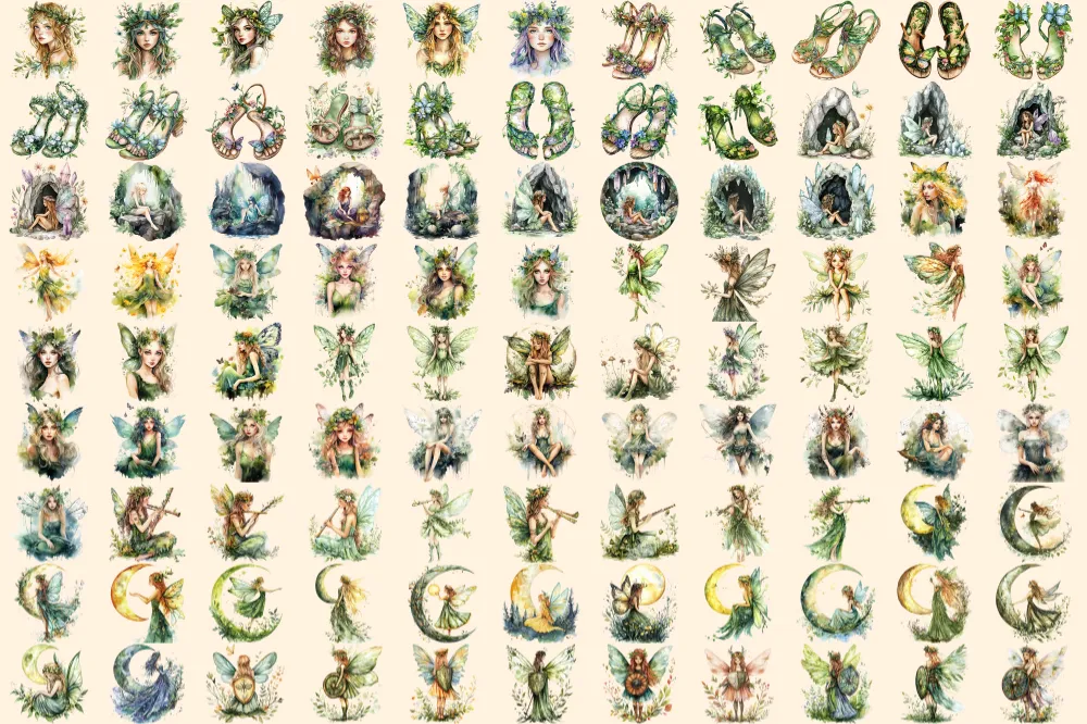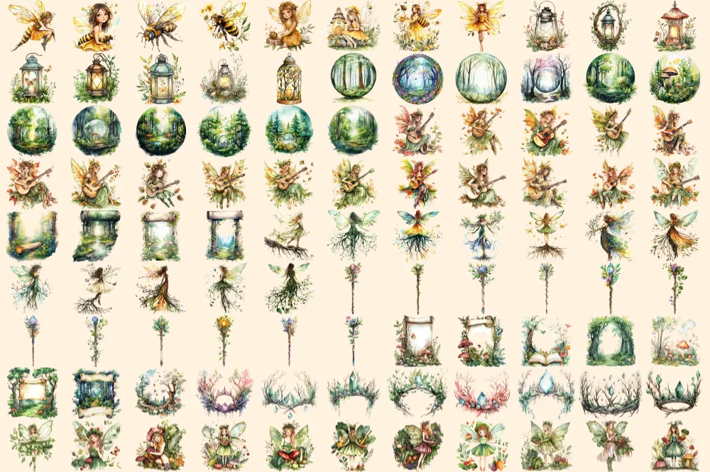 Forest Fairies Watercolor Clipart Bundle – 675+ transparent PNG, Whimsical fairy illustrations, Fairy art, Commercial use, Digital download