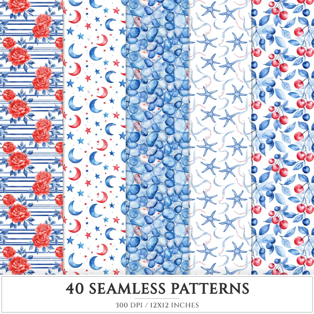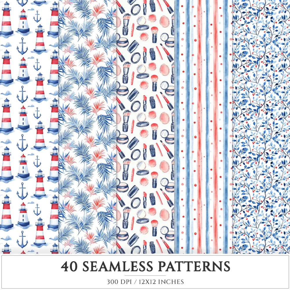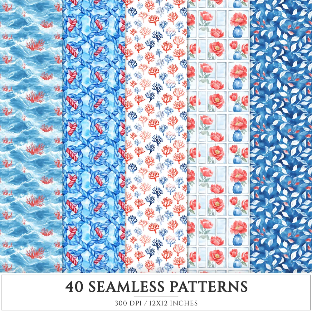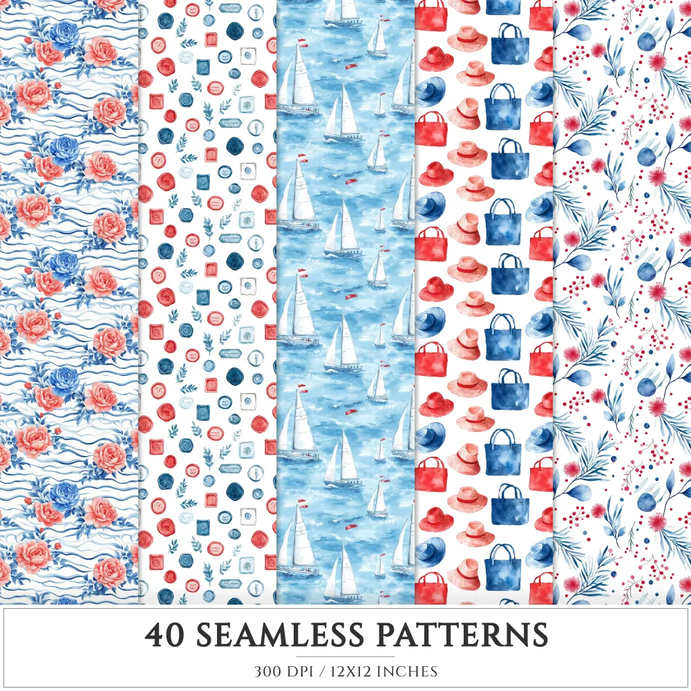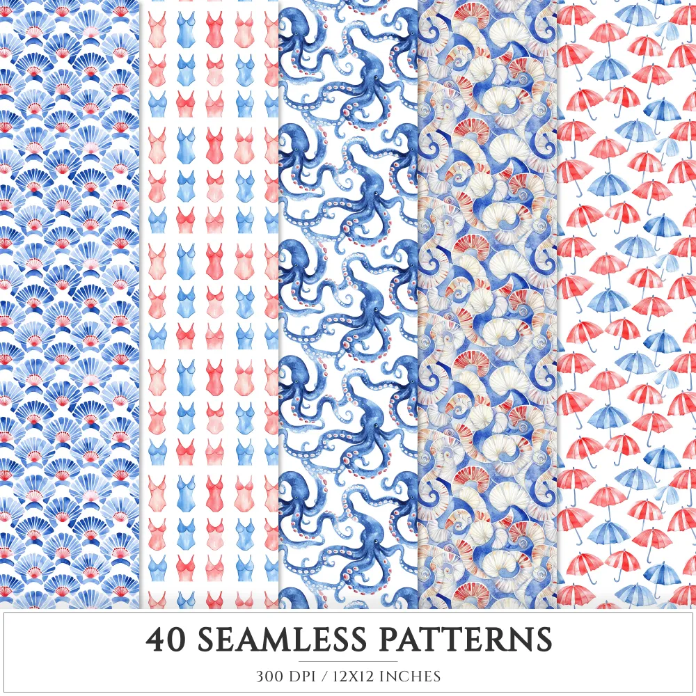 French Riviera Seamless Patterns, Summer beach JPEG, Sea pebble pattern, Shells, Seagull, Seaside repeating pattern, Digital scrapbook paper