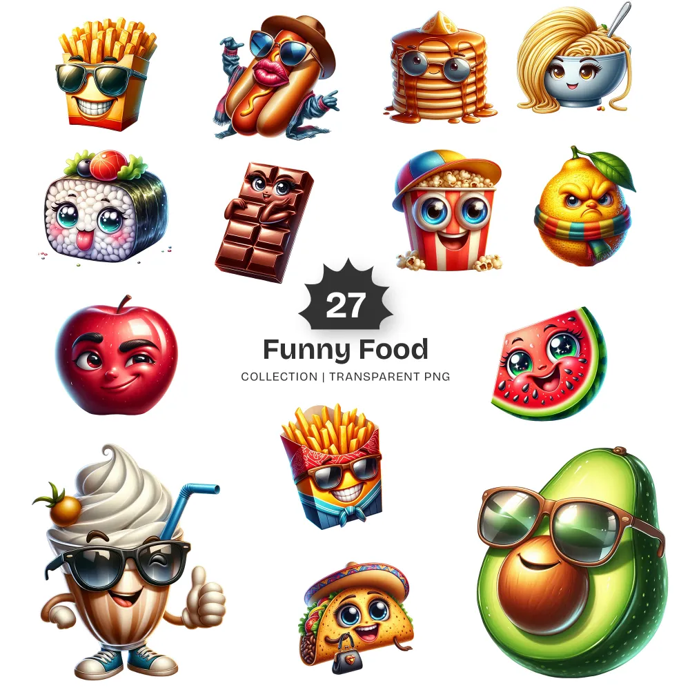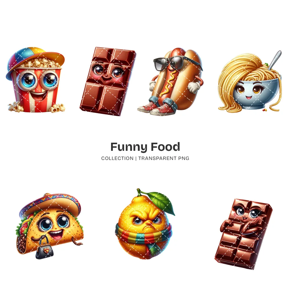 Funny Food PNG Clipart Collection – 27 PNG, Playful Food Graphics, Hilarious and Charming Food Printables, Commercial use, Digital download