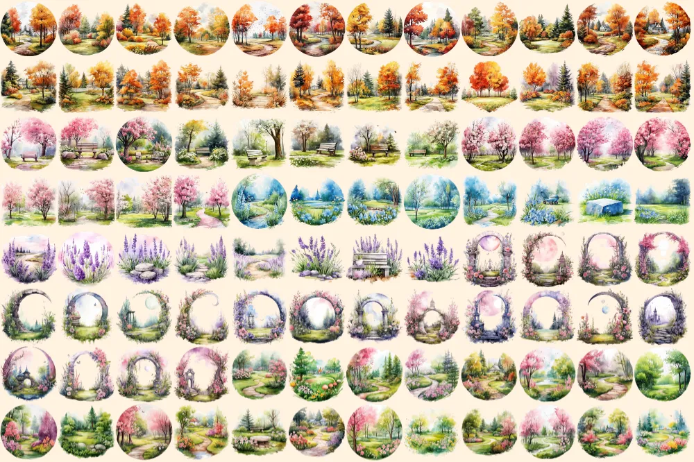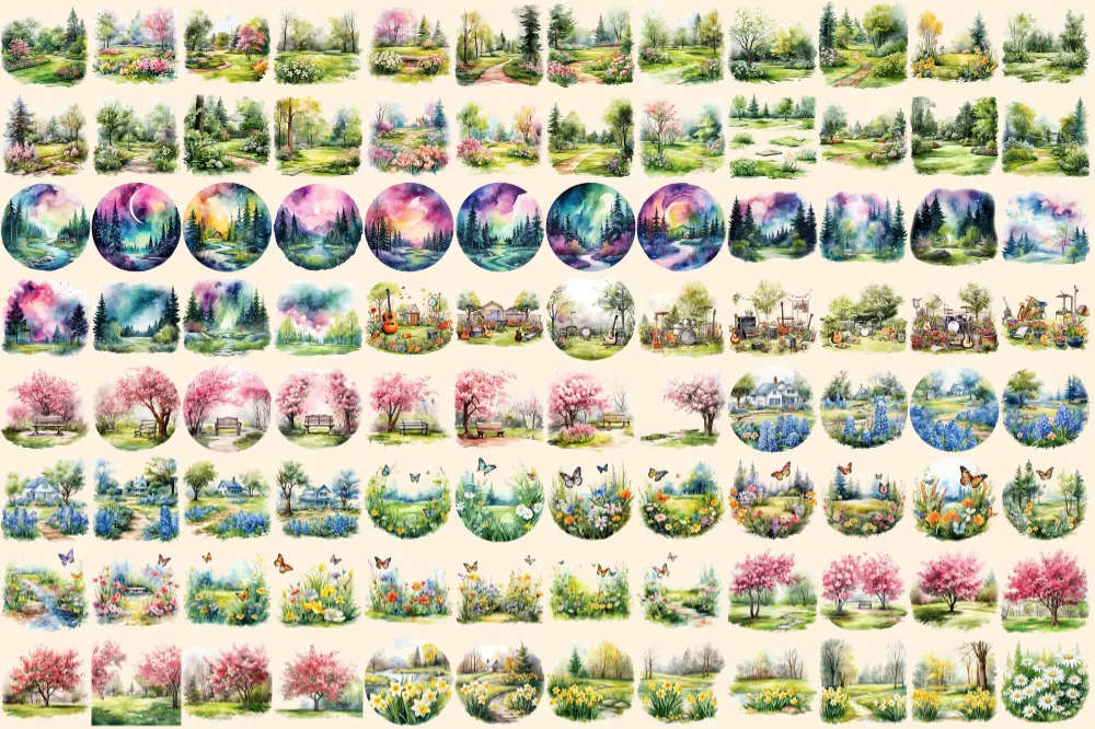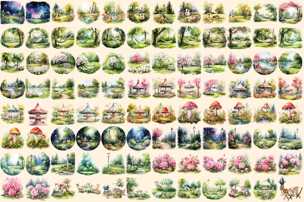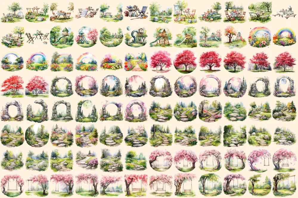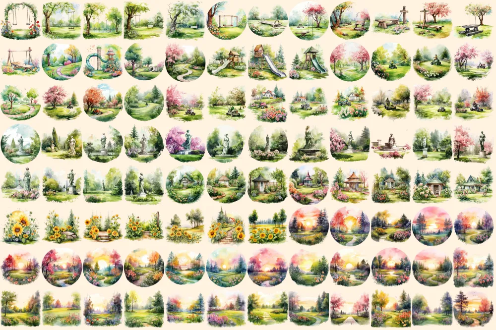 Garden Lawns Watercolor Clipart Bundle – 615+ transparent PNG, Verdant garden graphics, Spring landscape, Commercial use, Digital download