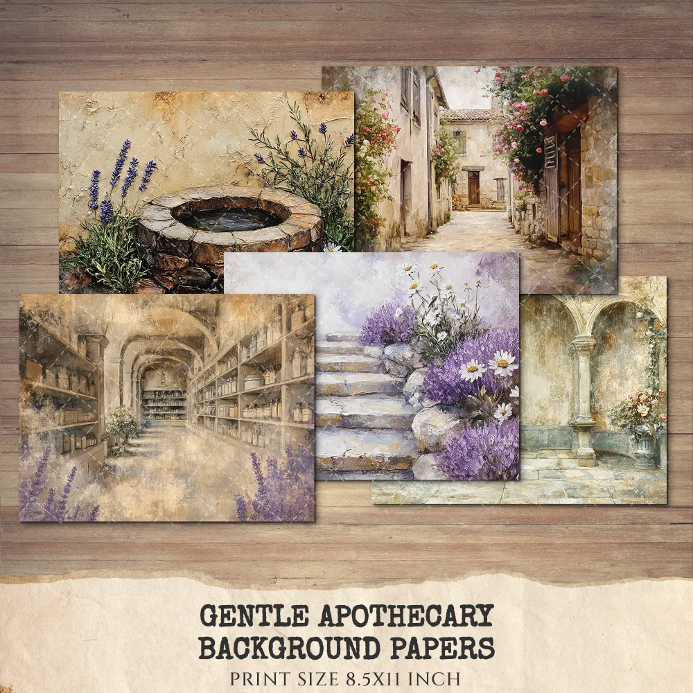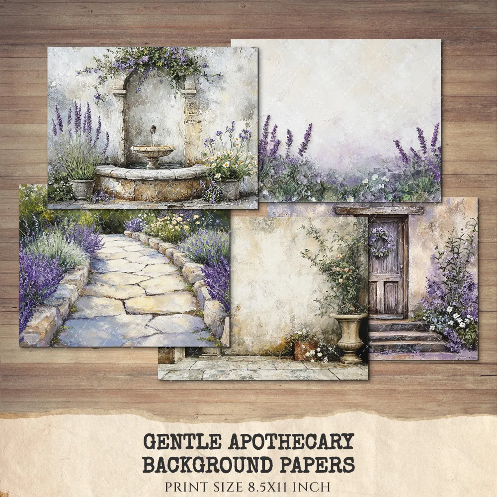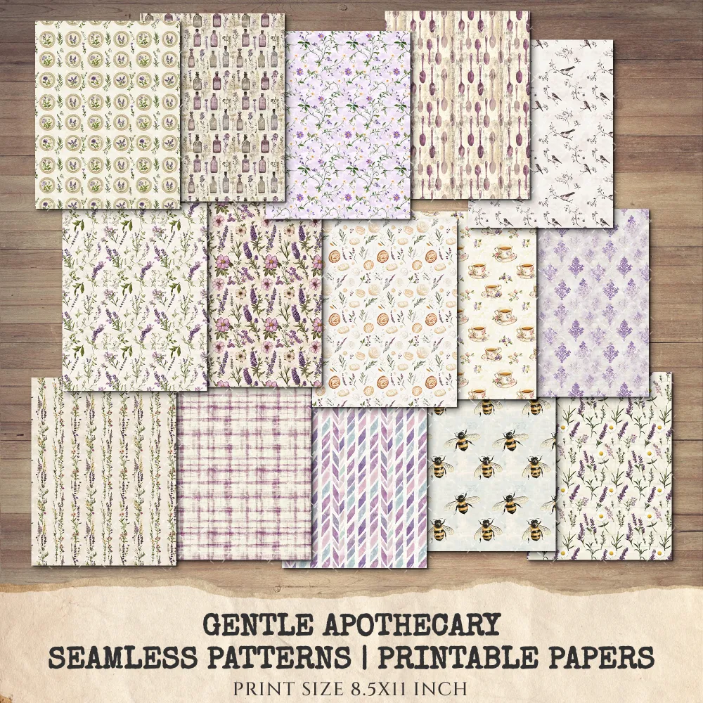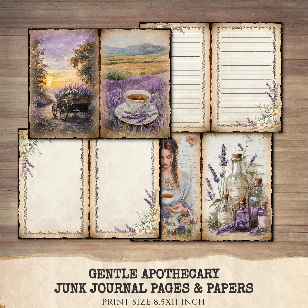 Gentle Apothecary Junk Journal Pages & Papers – Vintage Herb Jars, Botanical Printable, Lavender Scrapbook, Rosemary, Digital Download