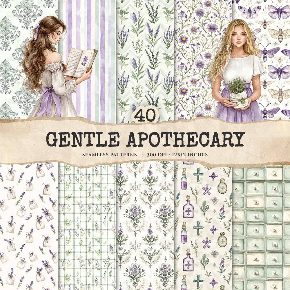 4. Gentle Apothecary Seamless Patterns: