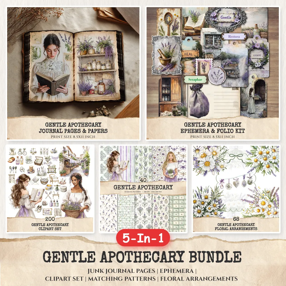 1. Gentle Apothecary Junk Journal Pages & Papers: