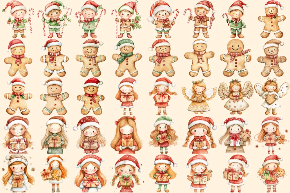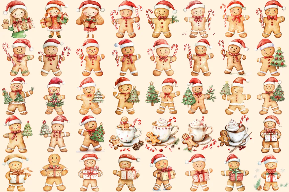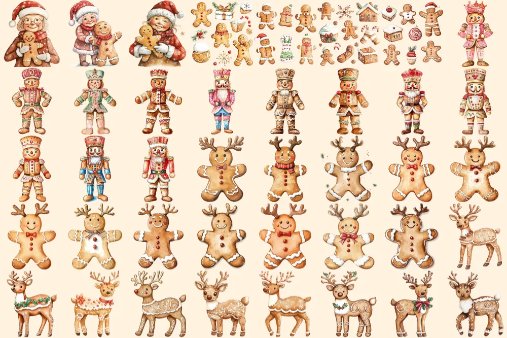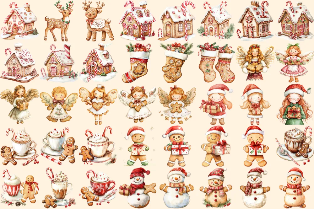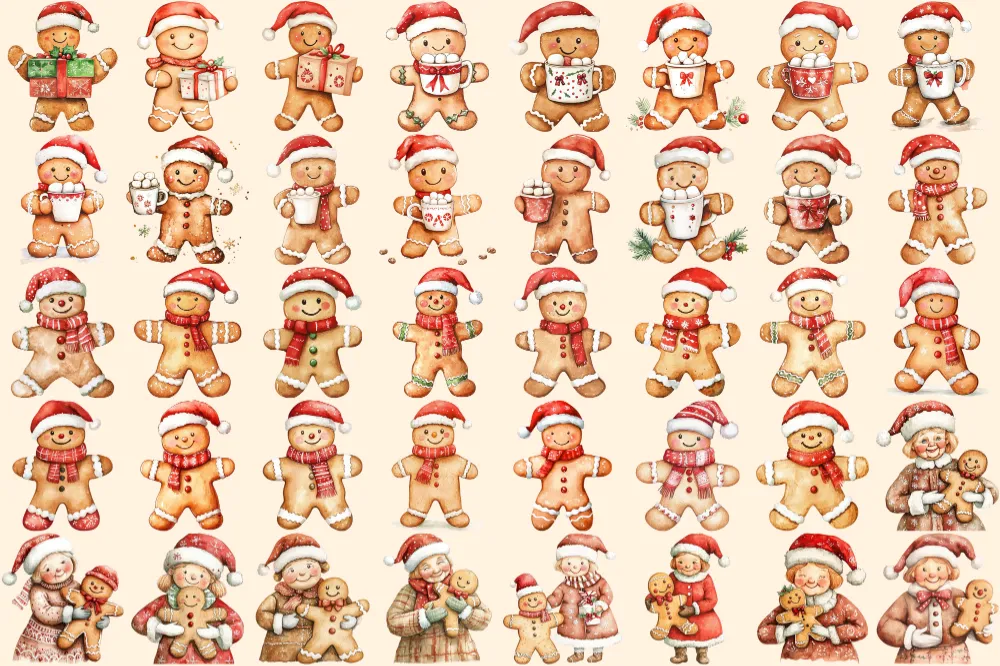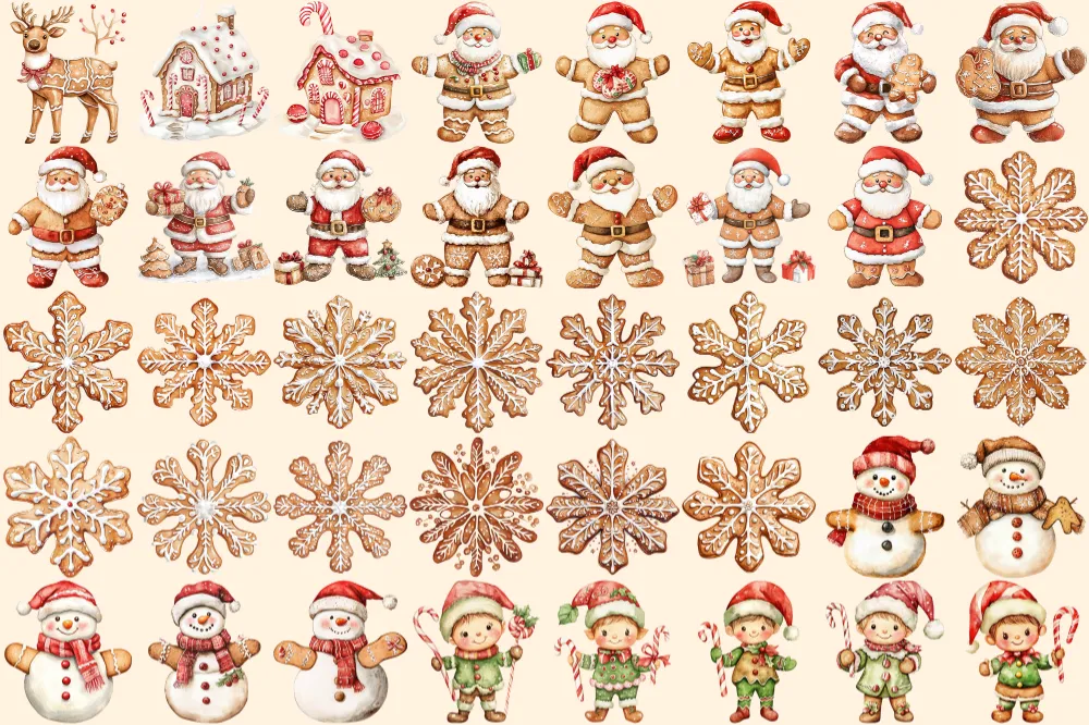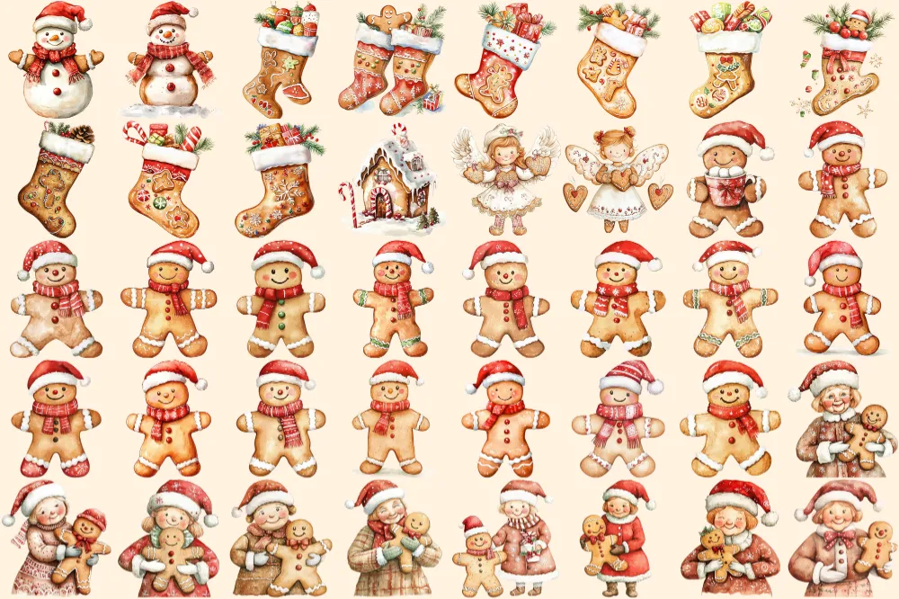 Gingerbread Christmas Watercolor Clipart Bundle – 250+ transparent PNG, Holiday treats graphics, Baking png, Commercial use,Digital download