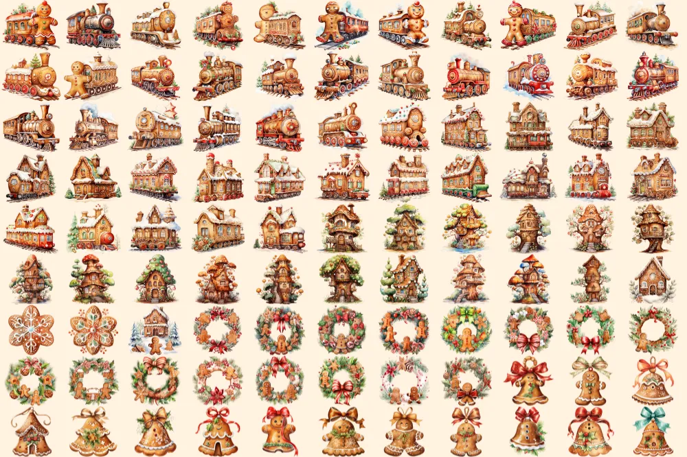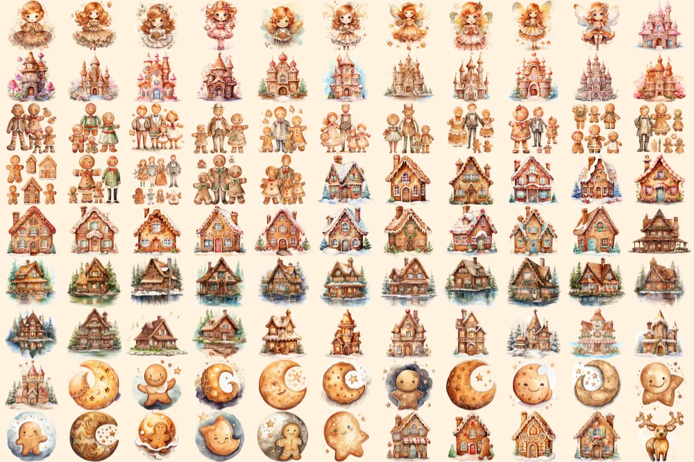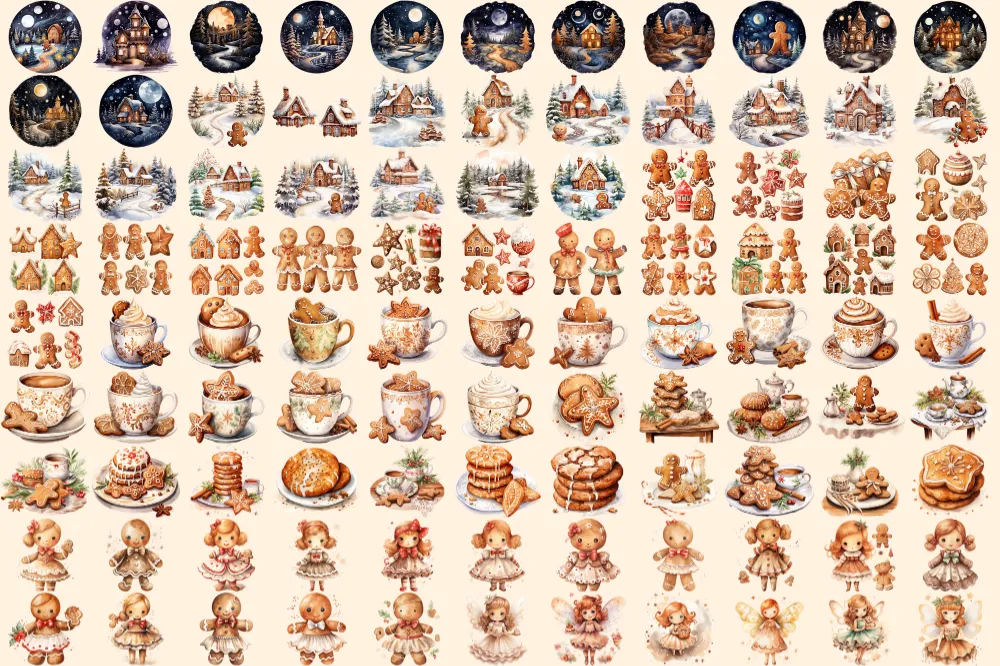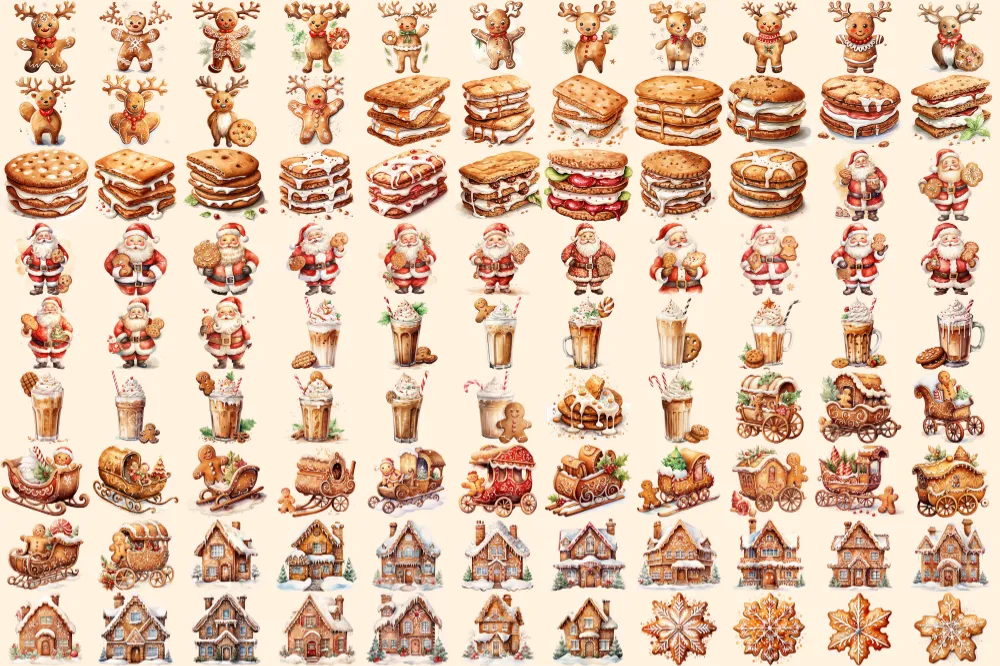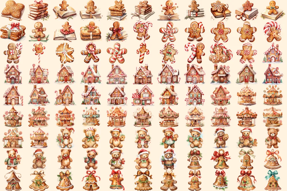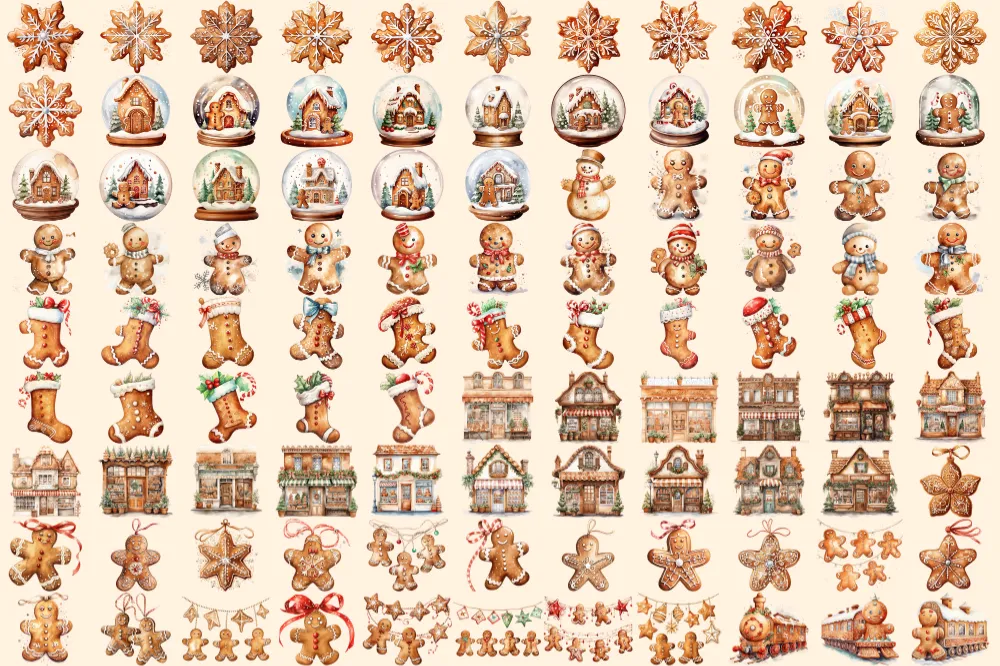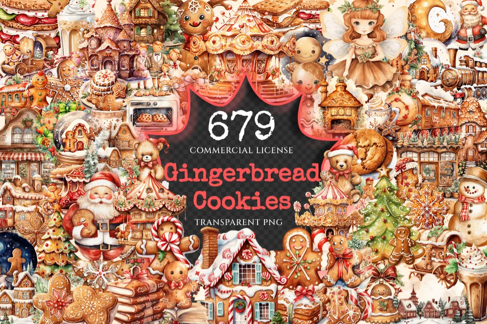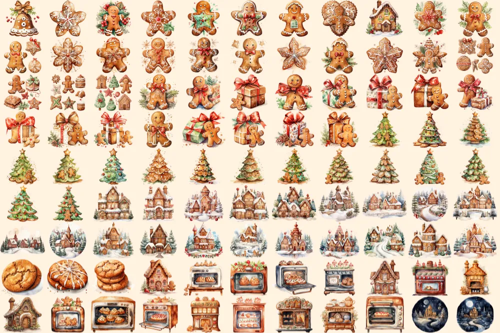 Gingerbread Cookies Watercolor Clipart Bundle – 675+ transparent PNG, Xmas cookies png, Festive baking png, Commercial use, Digital download