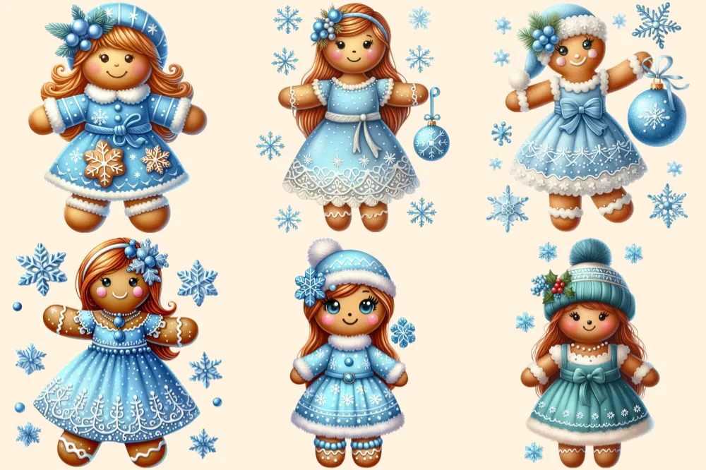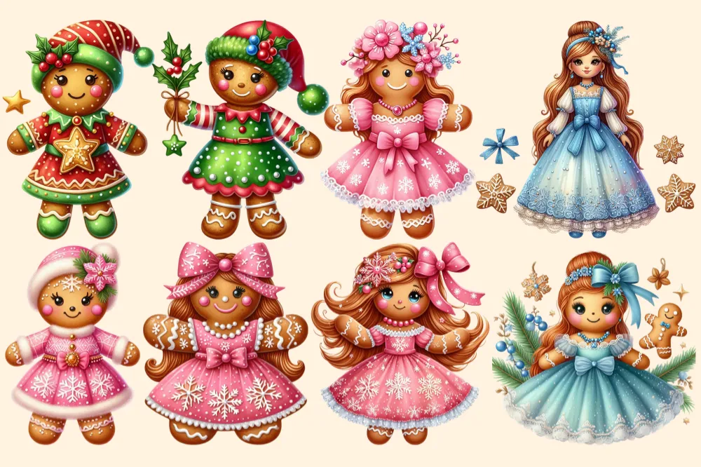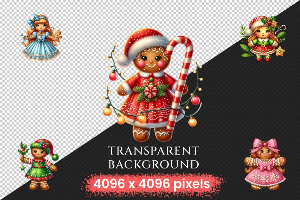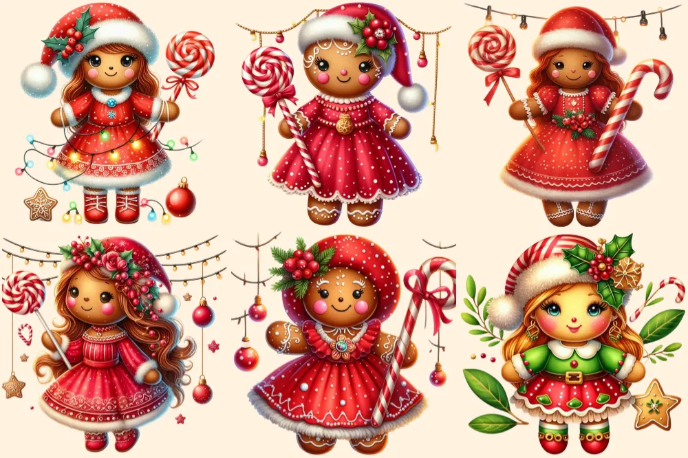Gingerbread Girl PNG Clipart Collection – 33 PNG, Festive cookie graphics, Cheerful holiday art, Commercial use, Digital download