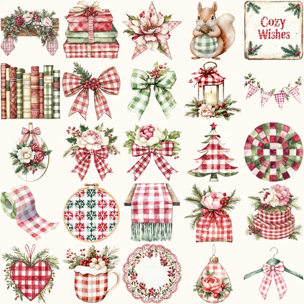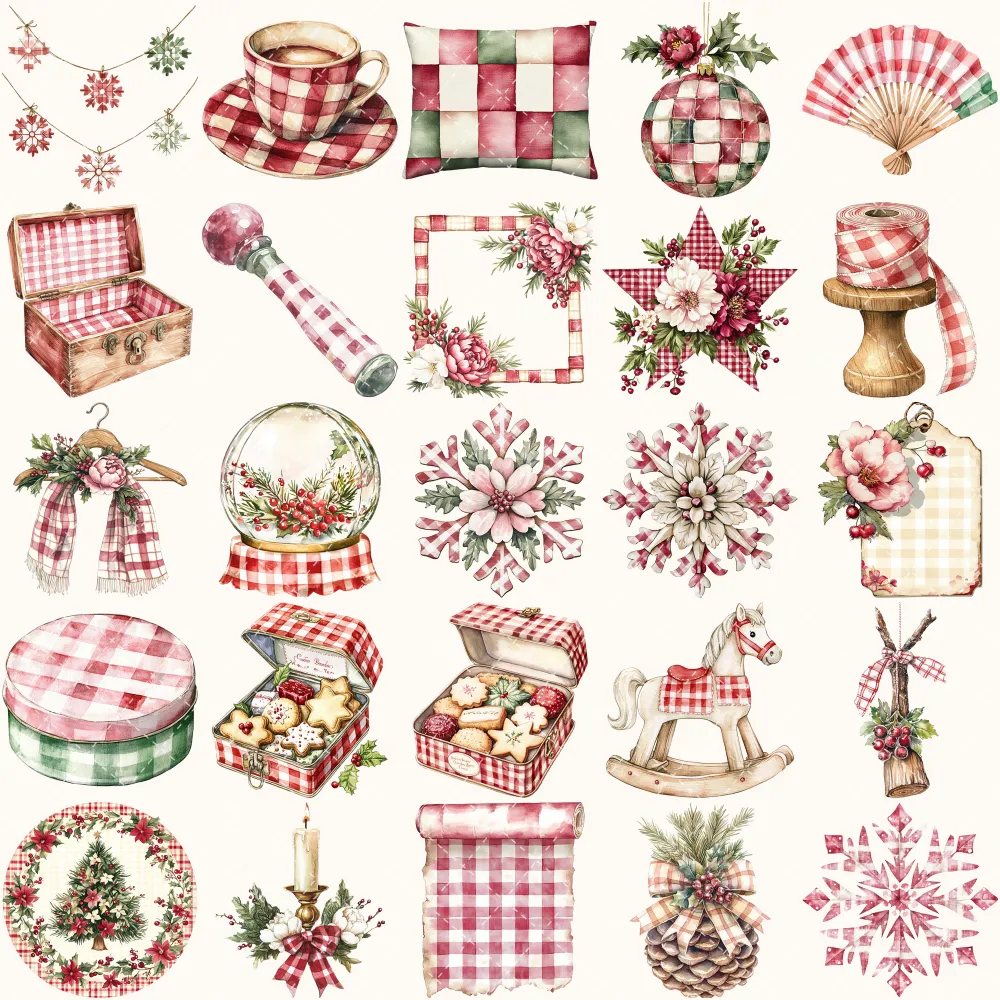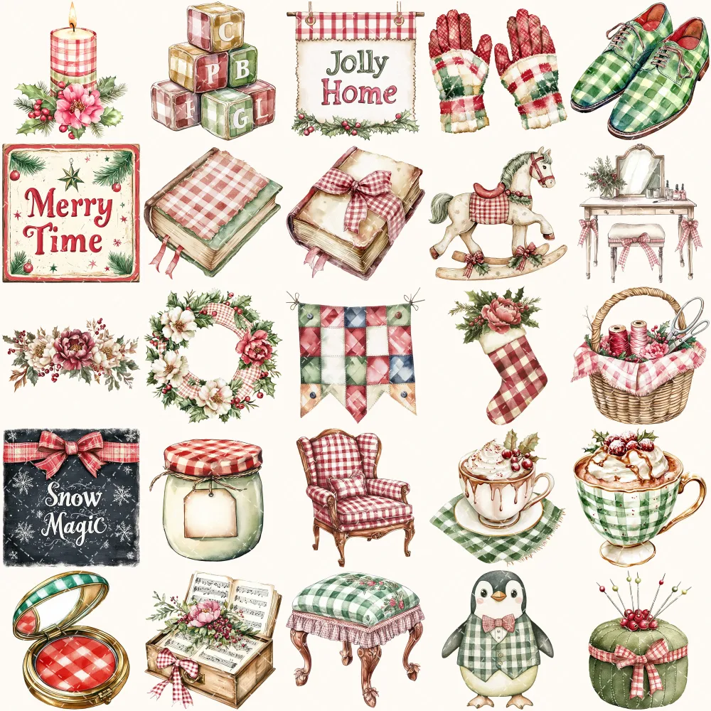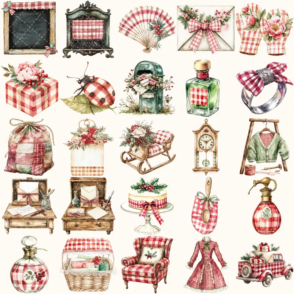 Gingham Glow Clipart Set – Plaid Holiday Illustrations, Festive Floral Graphics, Cozy Winter Christmas, Santa PNG, Digital download
