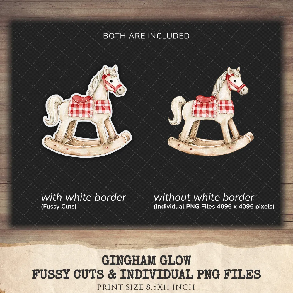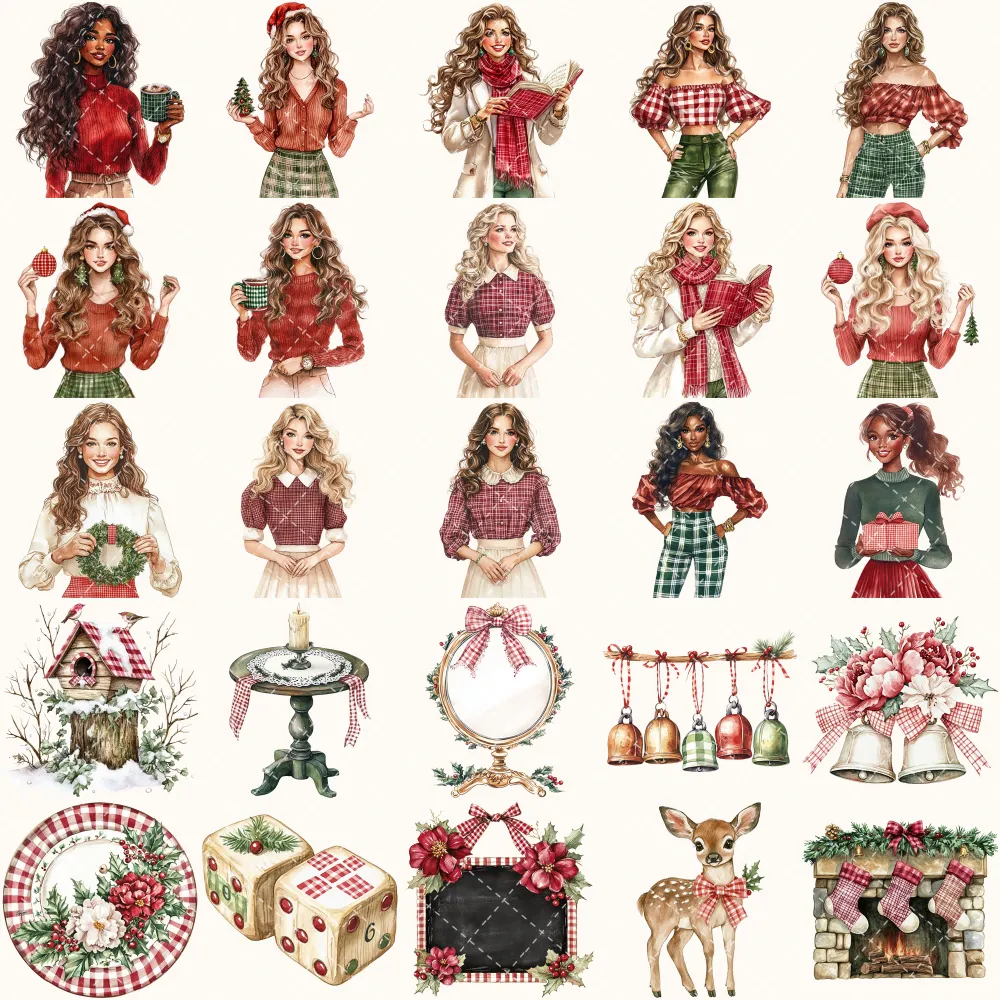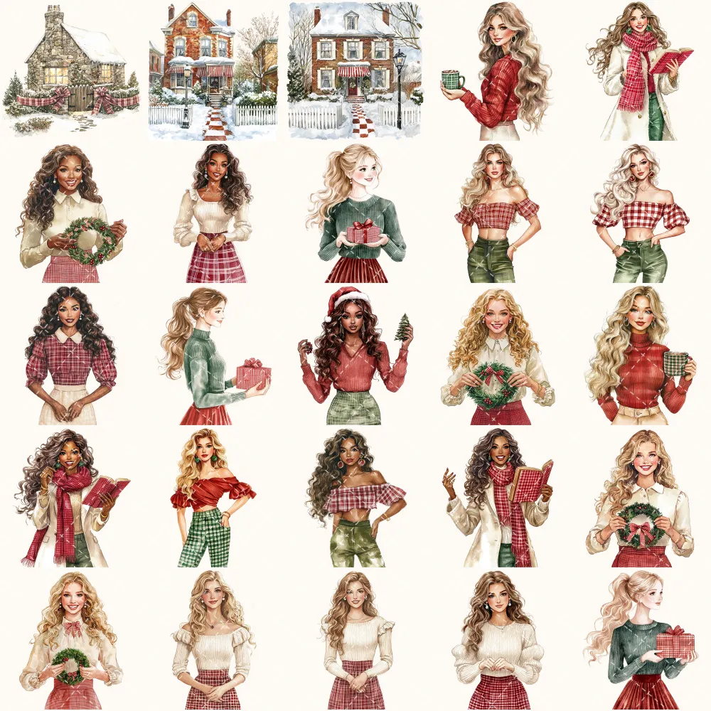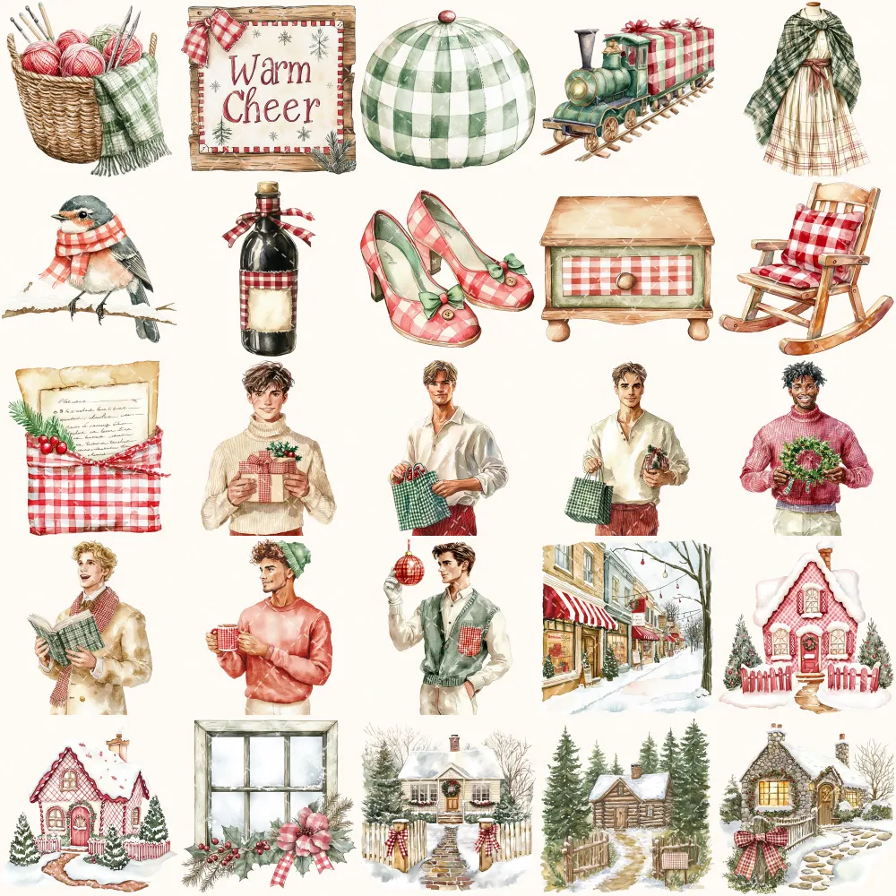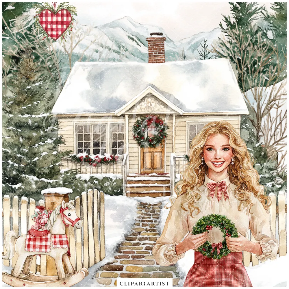 Gingham Glow Clipart Set – Plaid Holiday Illustrations, Festive Floral Graphics, Cozy Winter Christmas, Santa PNG, Digital download