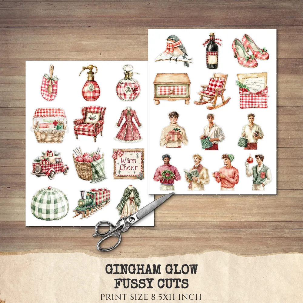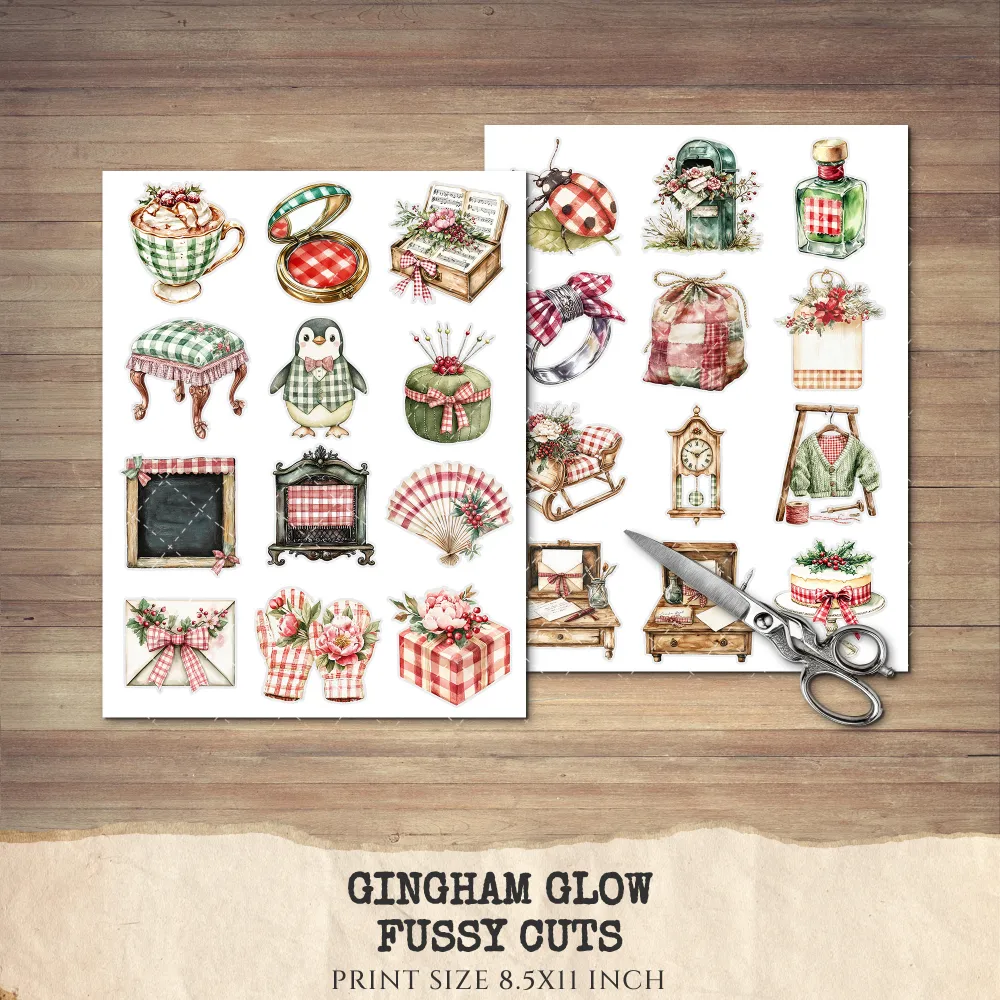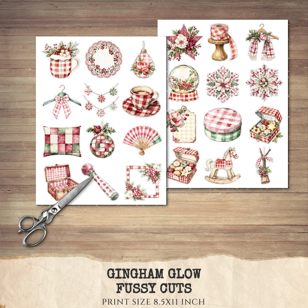 1. Gingham Glow Junk Journal Ephemera & Folio Kit: