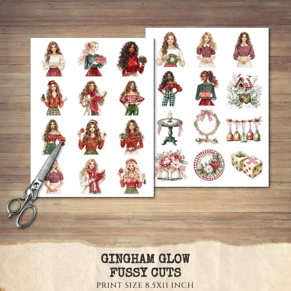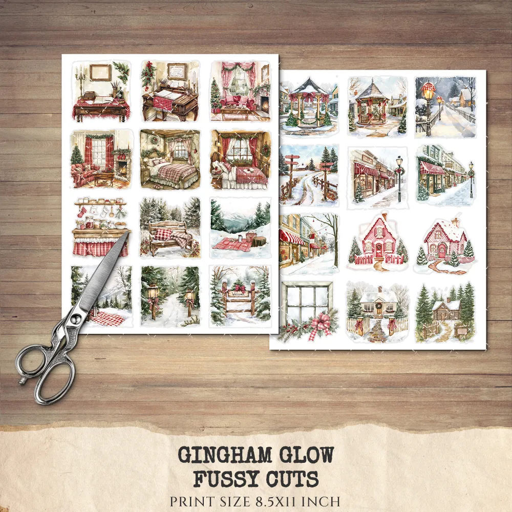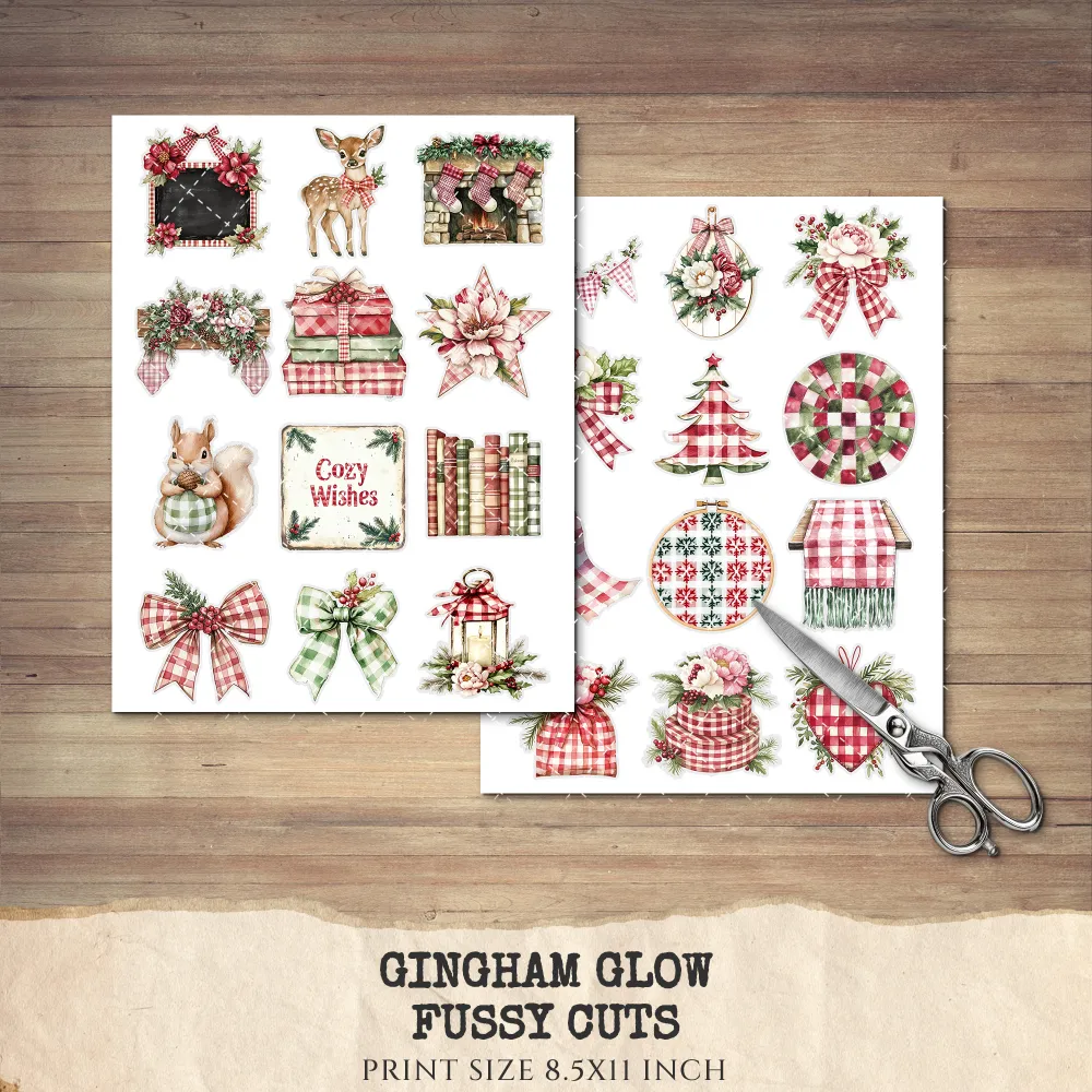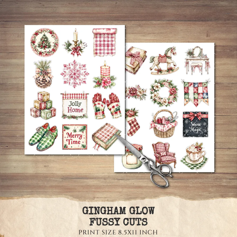 1. Gingham Glow Junk Journal Ephemera & Folio Kit: