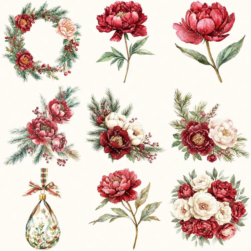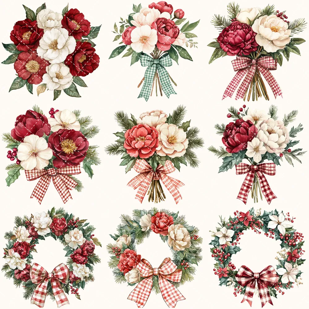 Gingham Glow Floral Arrangements, Peony Floral PNG, Peony Bouquet, Christmas Flowers, Festive Decor, Ornaments, Flower Art, Digital download