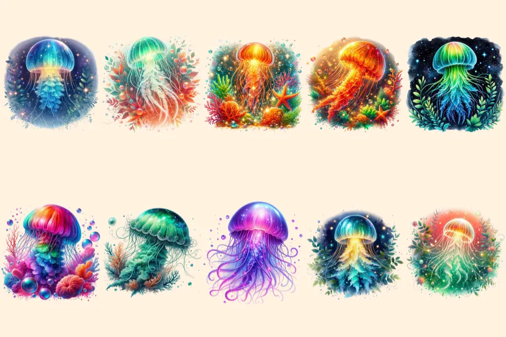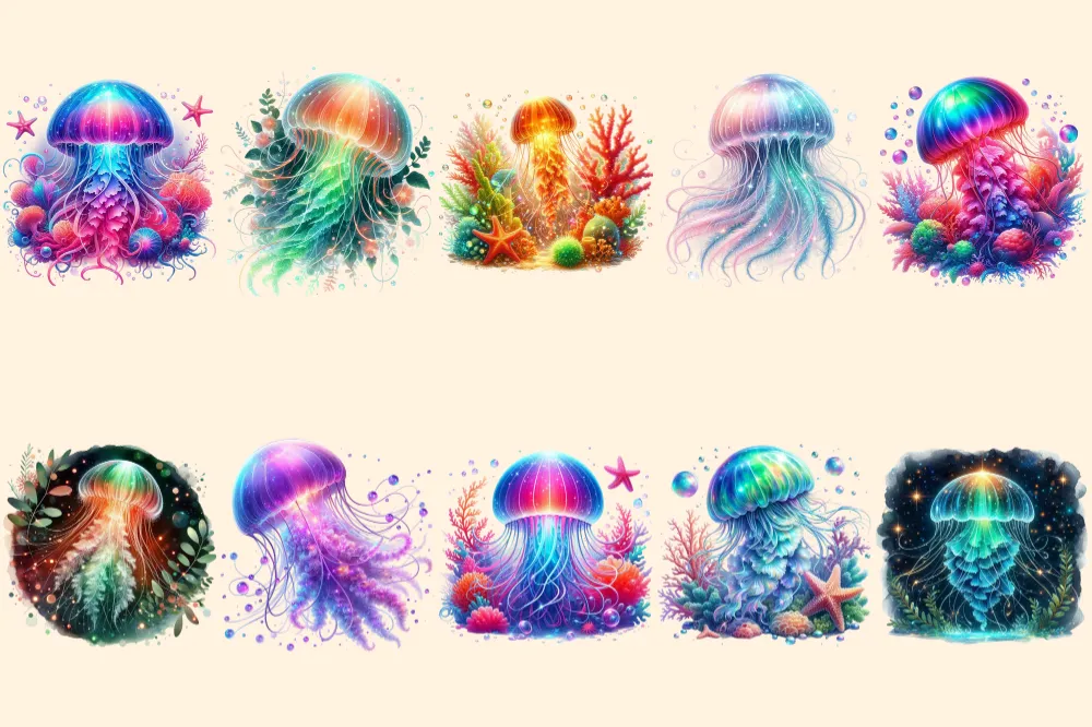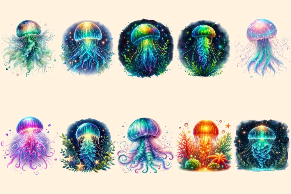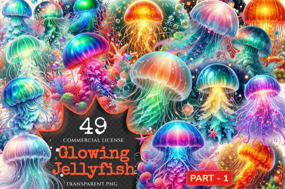 Glowing Jellyfish PNG Clipart Collection – 49 PNG, Underwater creature graphics, Ocean life printables, Commercial use, Digital download