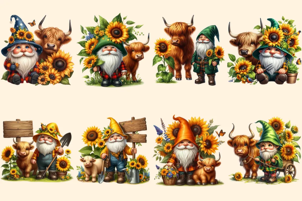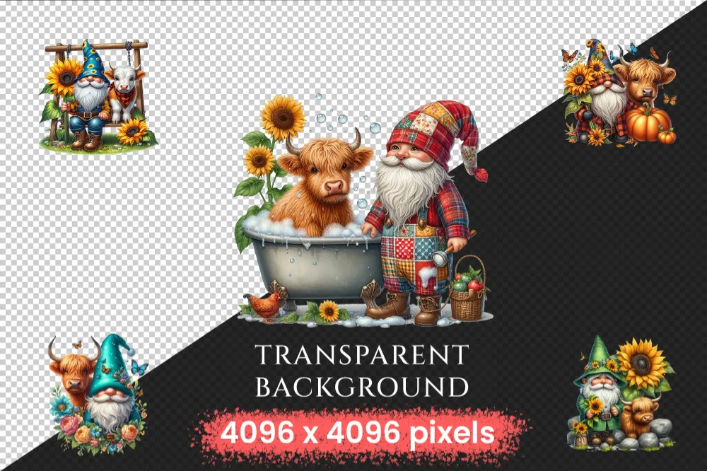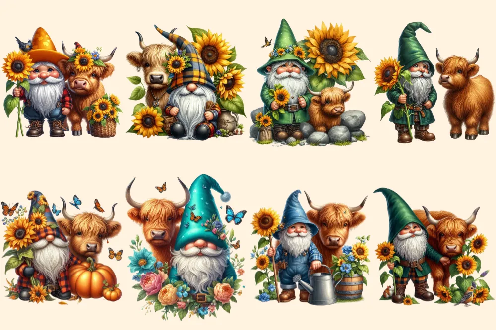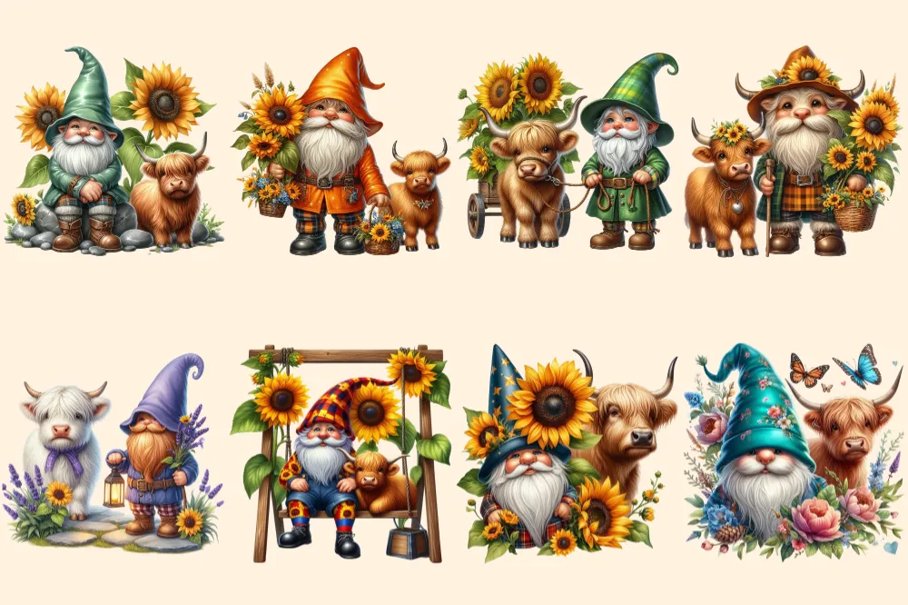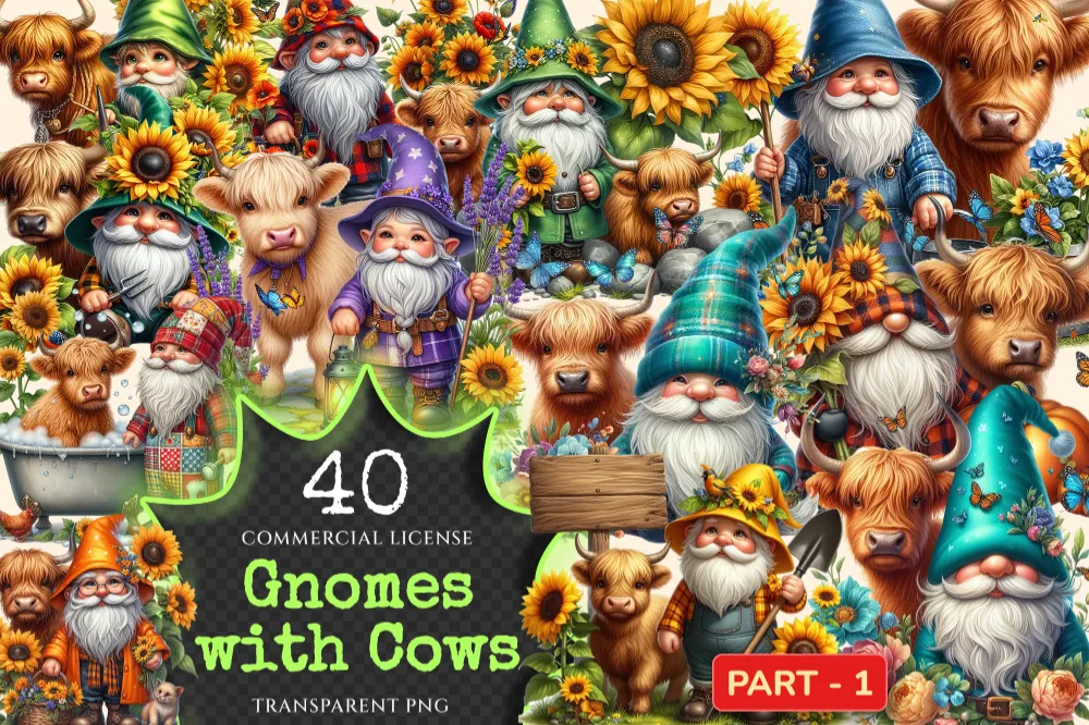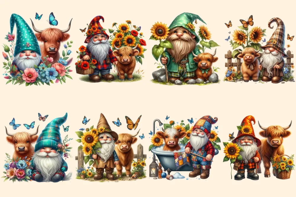 Gnomes With Cows PNG Clipart Collection – 40 PNG, Quirky gnome and cow graphics, Farmhouse prints, Commercial use, Digital download