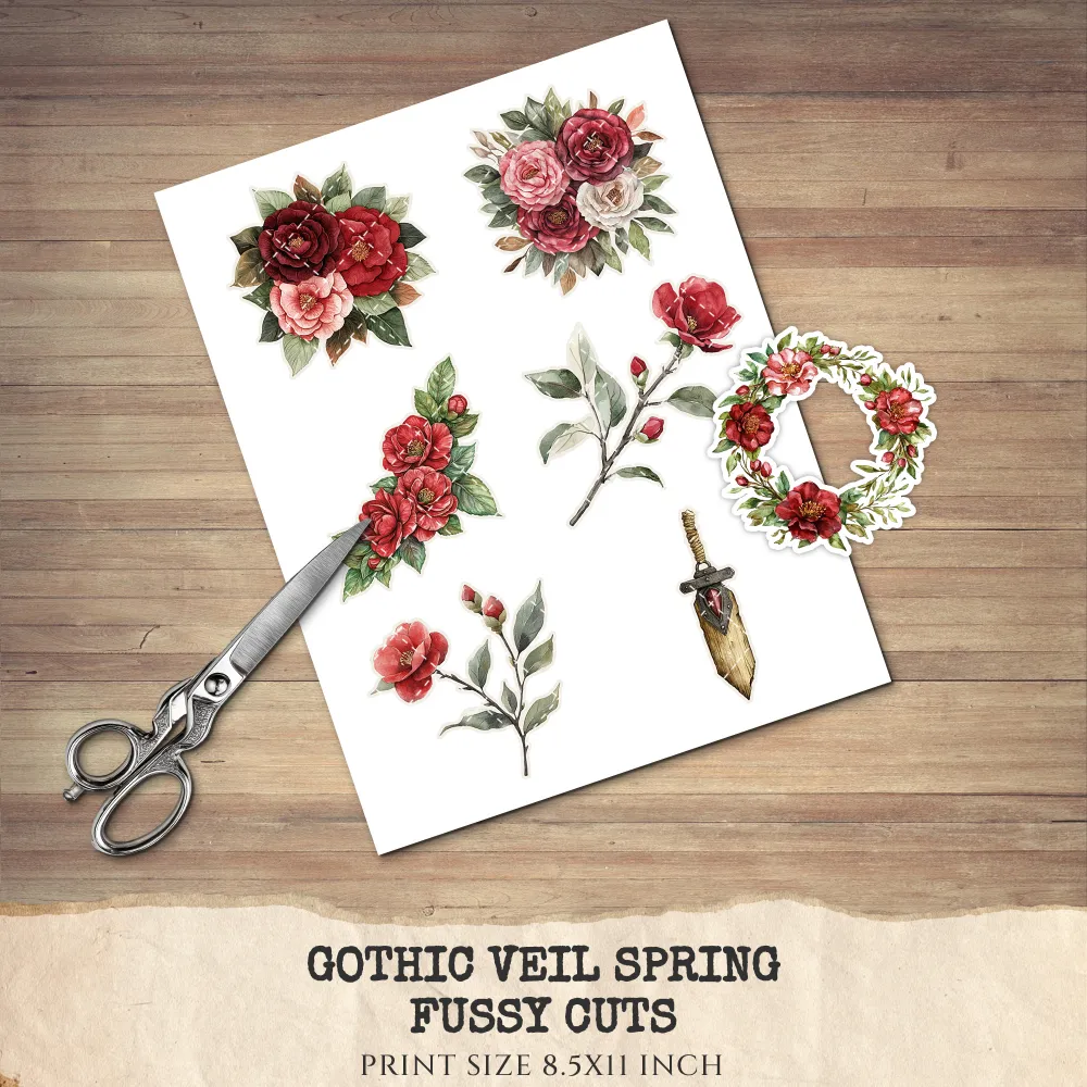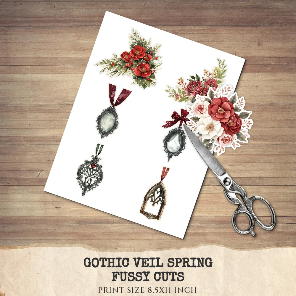 1. Gothic Veil Spring Junk Journal Ephemera & Folio Kit: