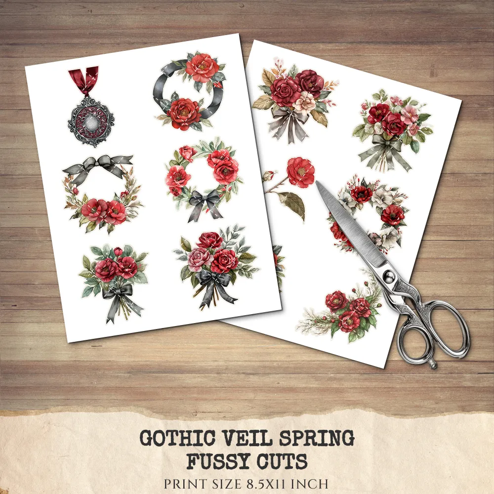 2. Gothic Veil Spring Junk Journal Pages & Papers: