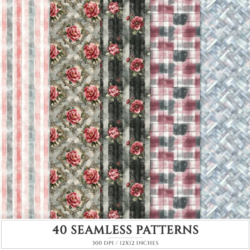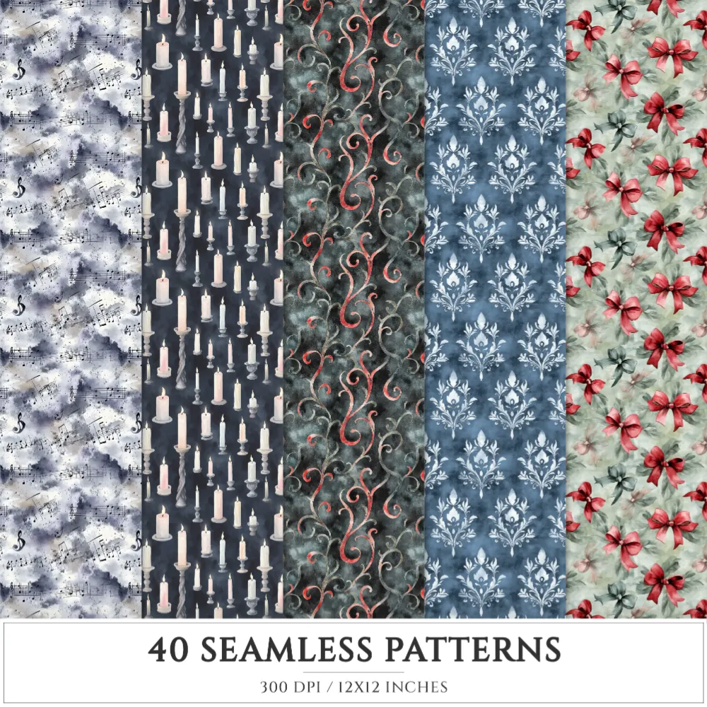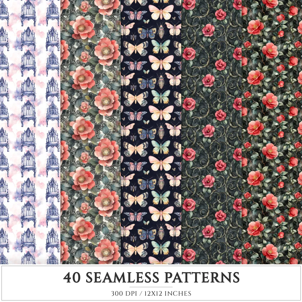 Gothic Veil Spring Seamless Patterns, Haunted Floral JPEG, Gothic Pattern, Lace, Dark Floral Repeating Pattern, Digital Scrapbook Paper