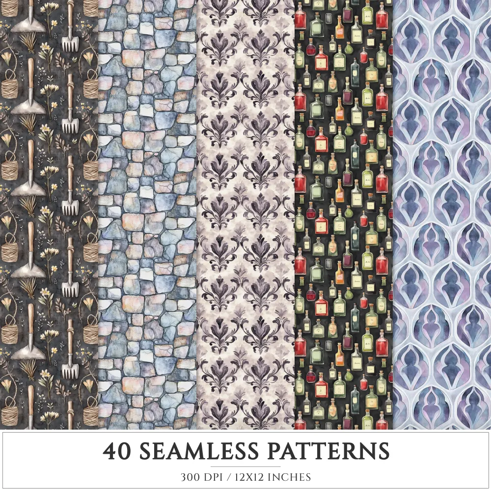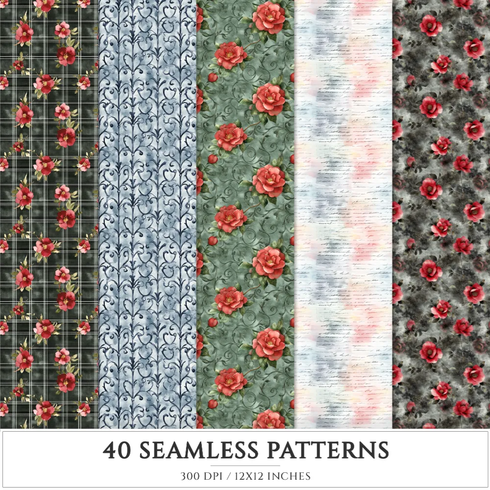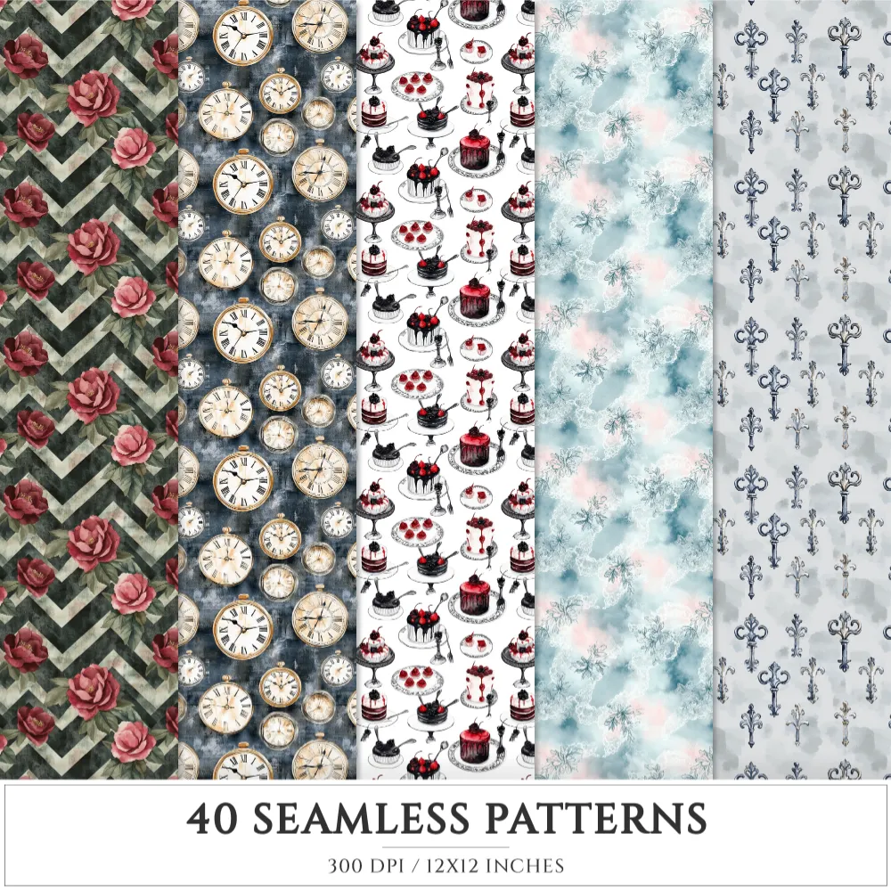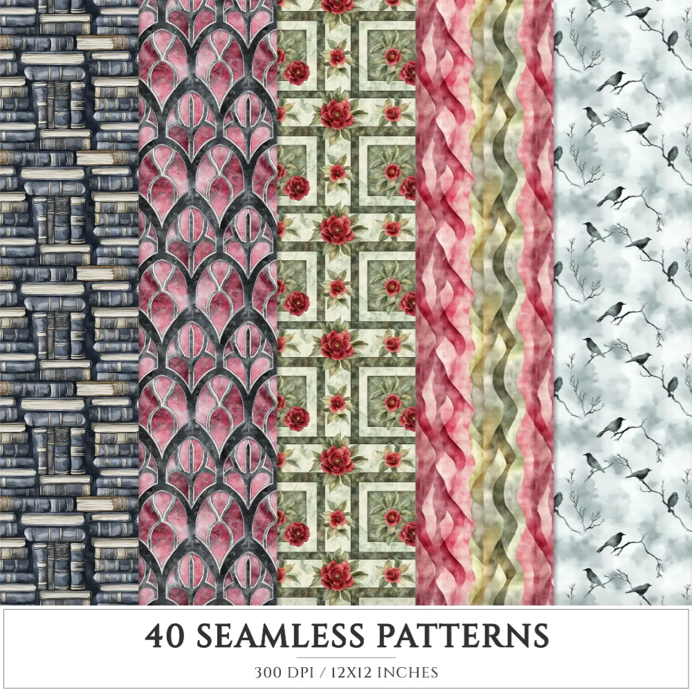 Gothic Veil Spring Seamless Patterns, Haunted Floral JPEG, Gothic Pattern, Lace, Dark Floral Repeating Pattern, Digital Scrapbook Paper