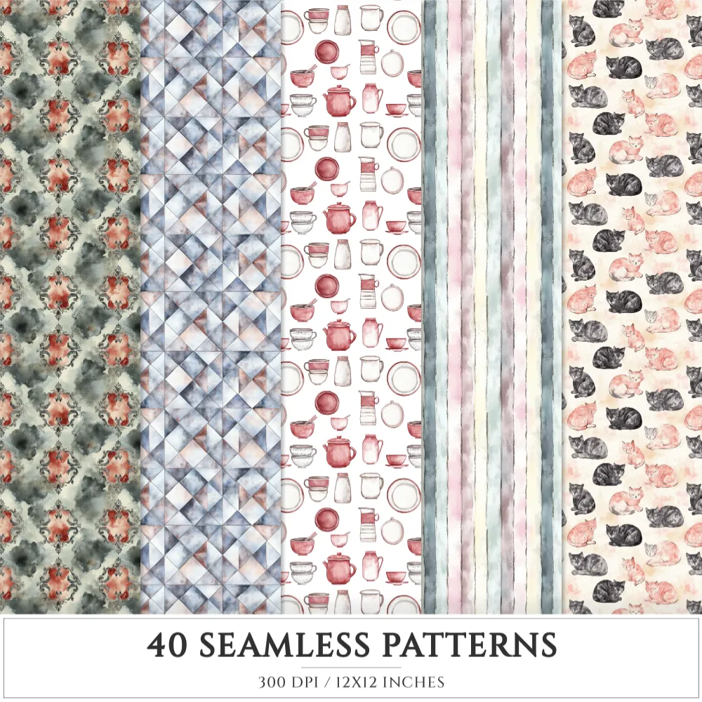• 40 individual JPG files (300 dpi, 12 X 12 inches, 3600 x 3600 pixels)