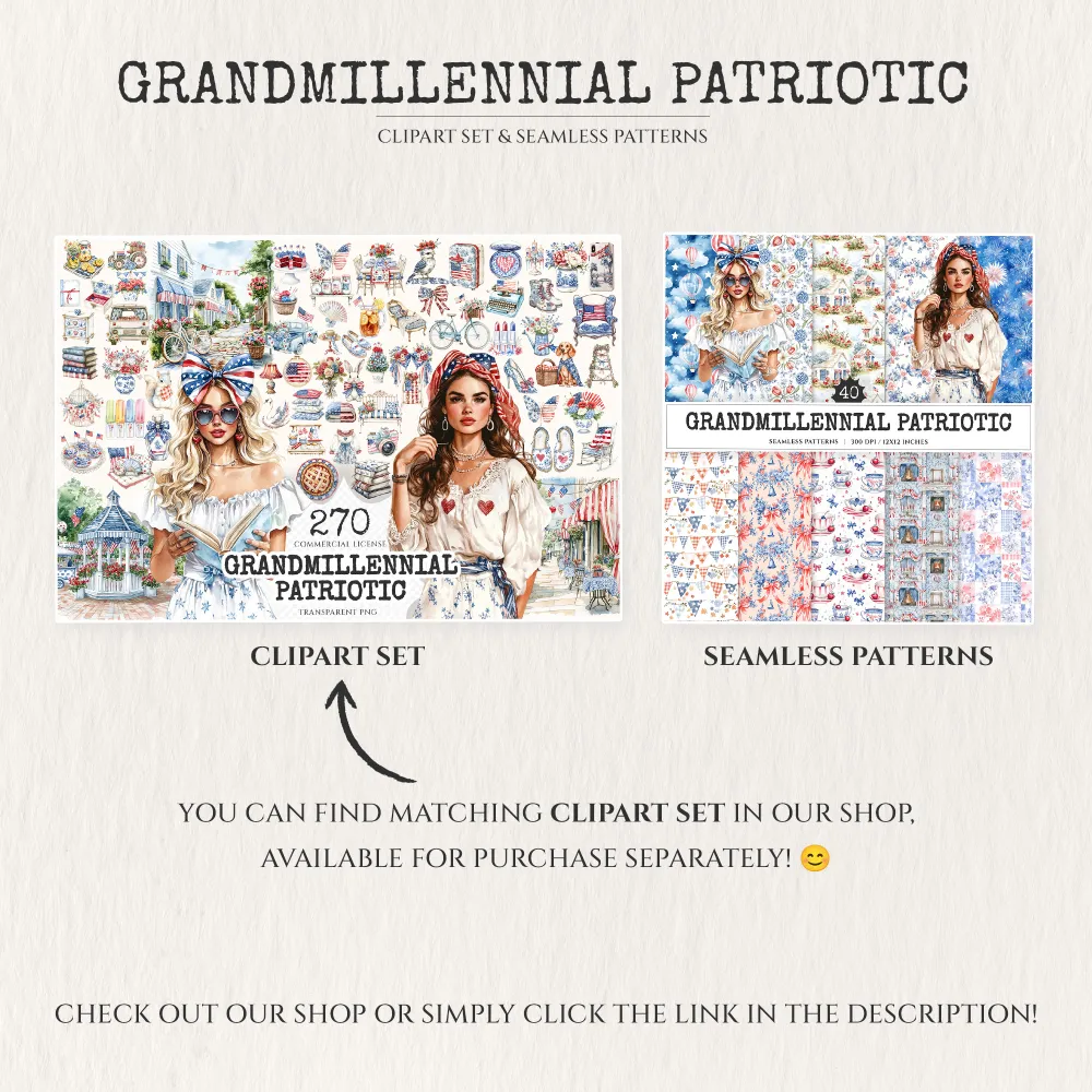1. Grandmillennial Patriotic Watercolor Clipart Set (270 PNG files):