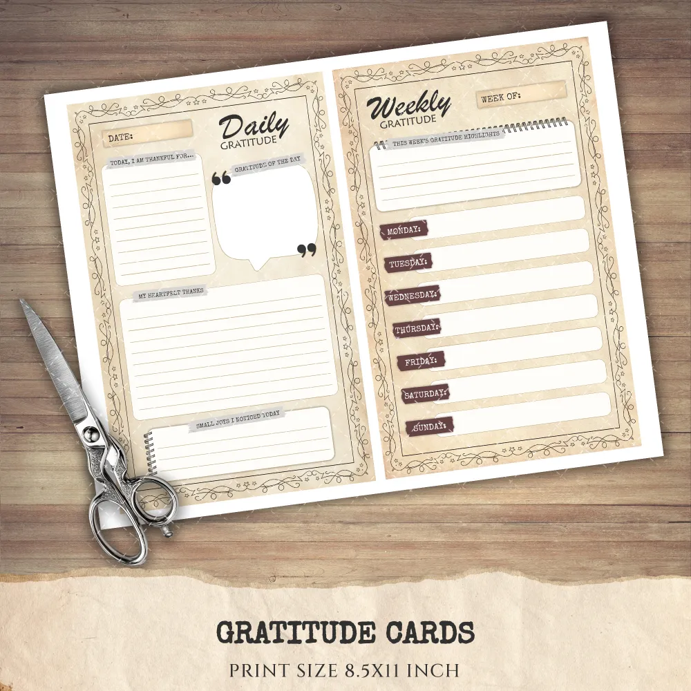 Gratitude Cards – Planner, Journal Printable, Craft kits, Vintage Junk Journal, Gratitude Diary, Daily Gratitude, Digital download