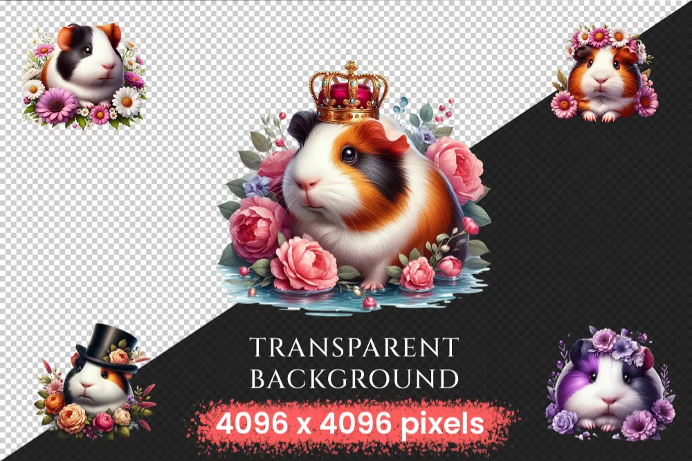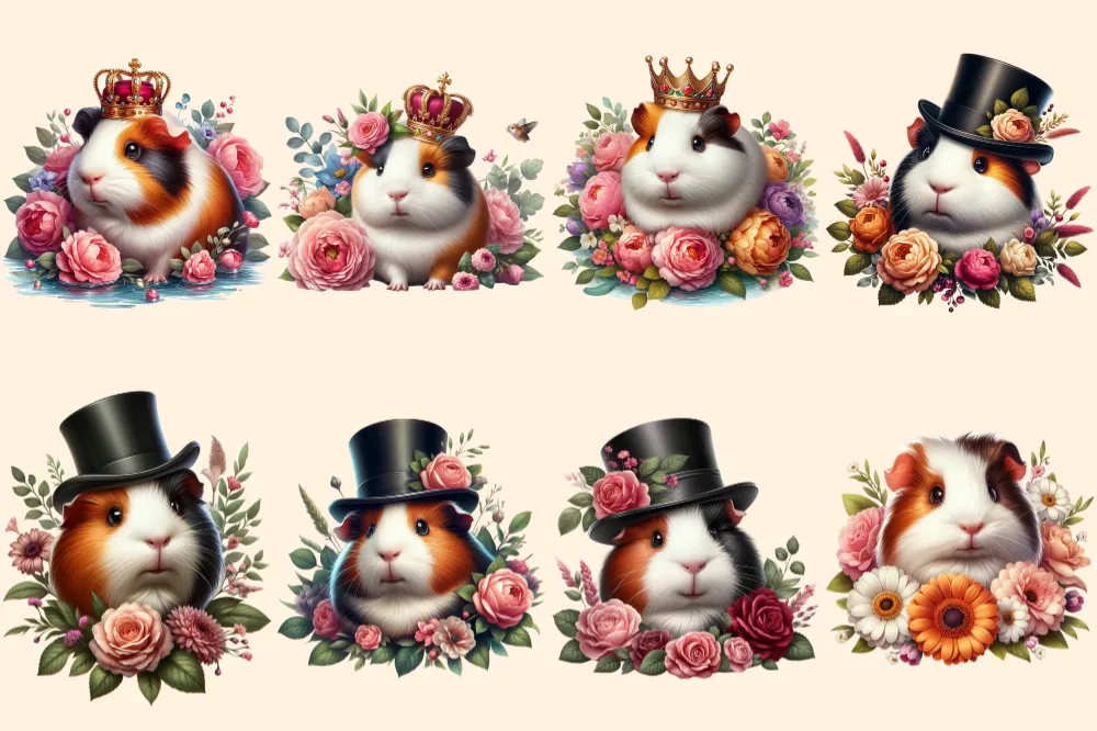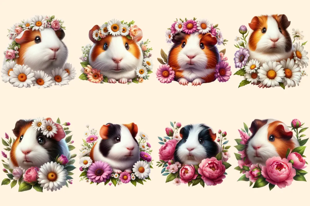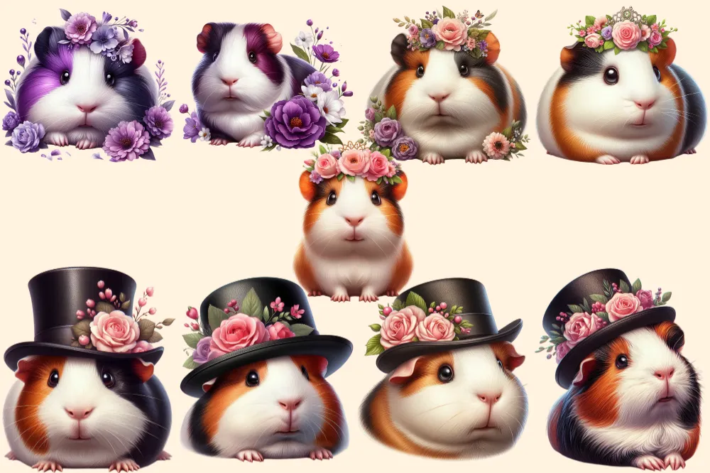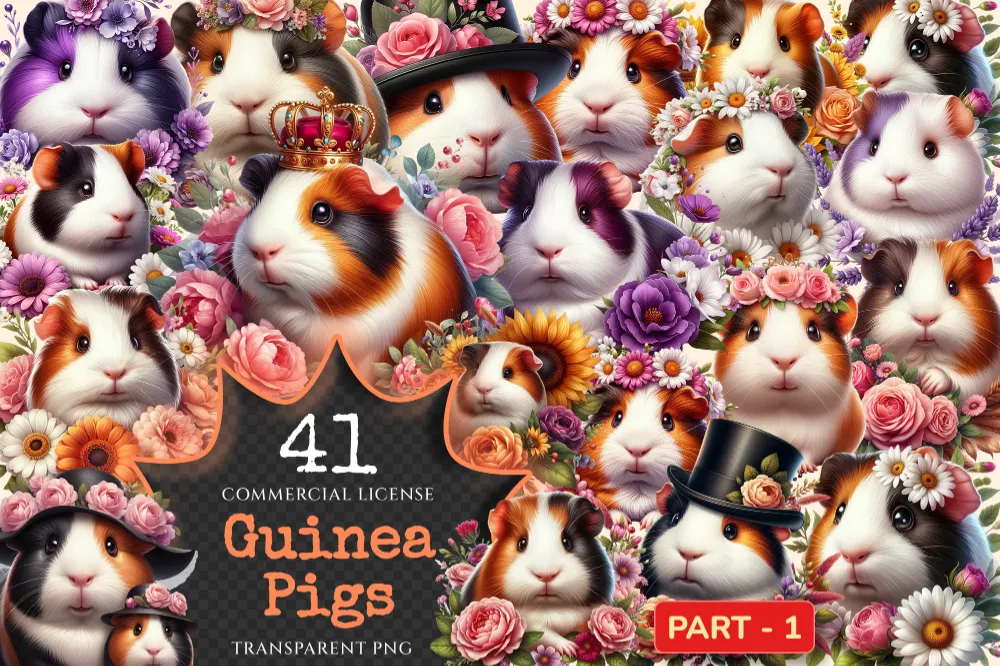 Guinea Pigs PNG Clipart Collection – 41 PNG, Charming guinea pig illustrations, Sweet pet printables, Commercial use, Digital download