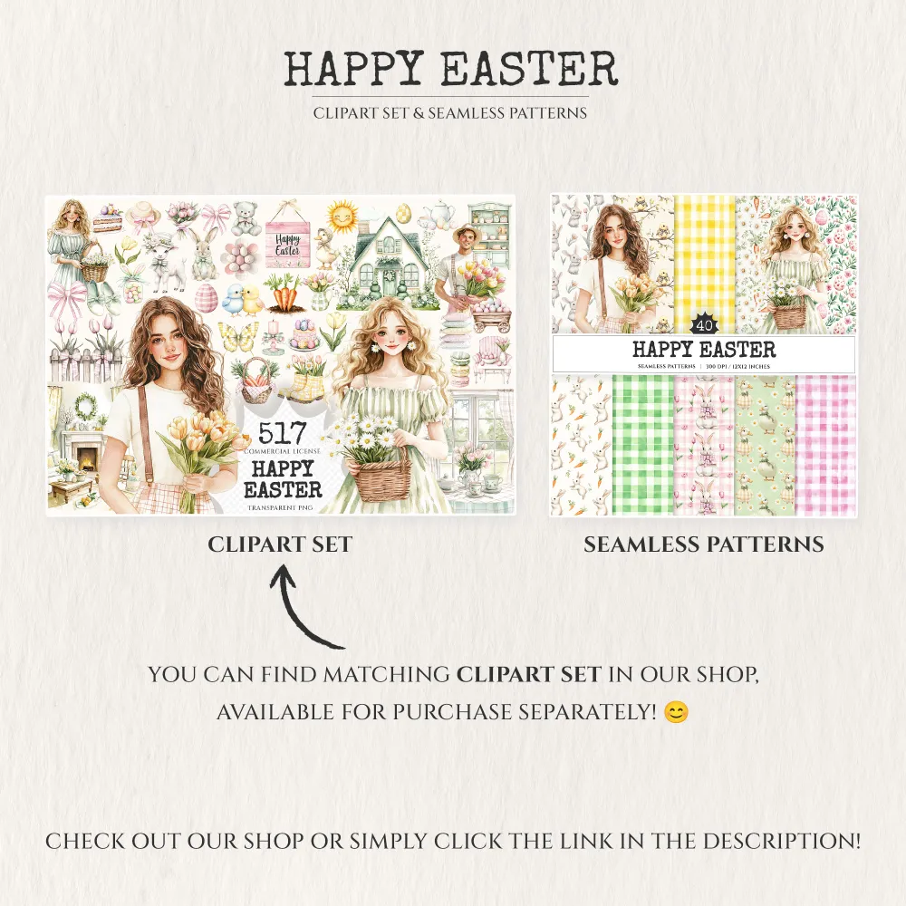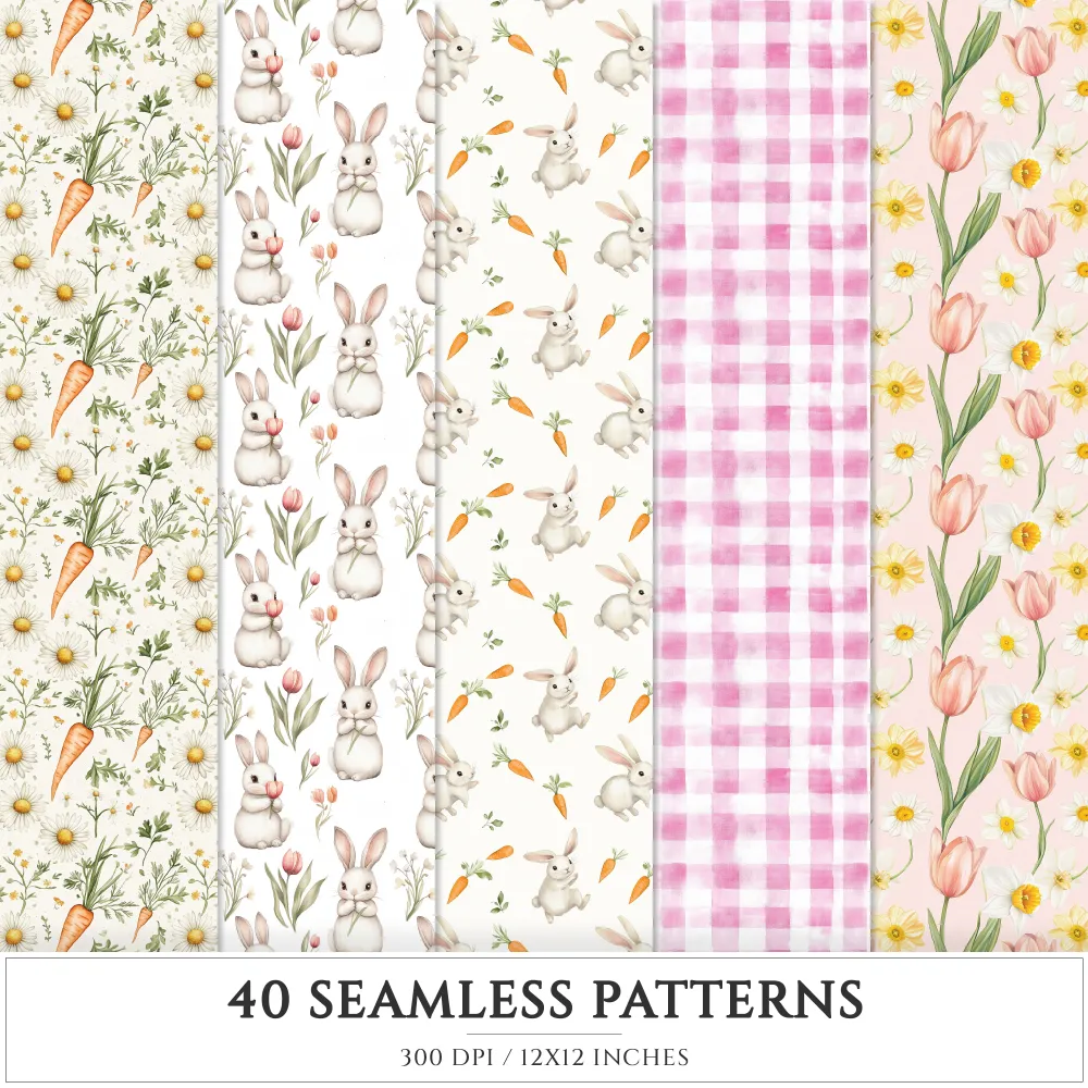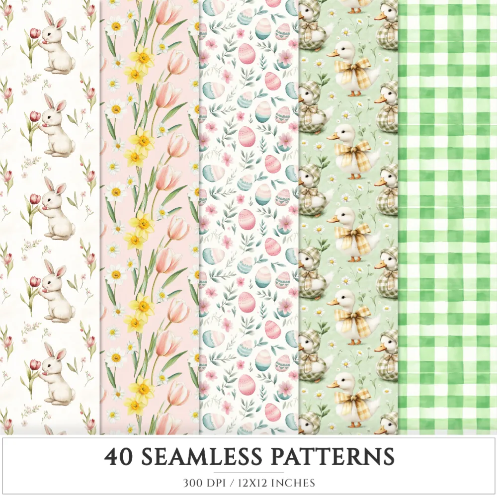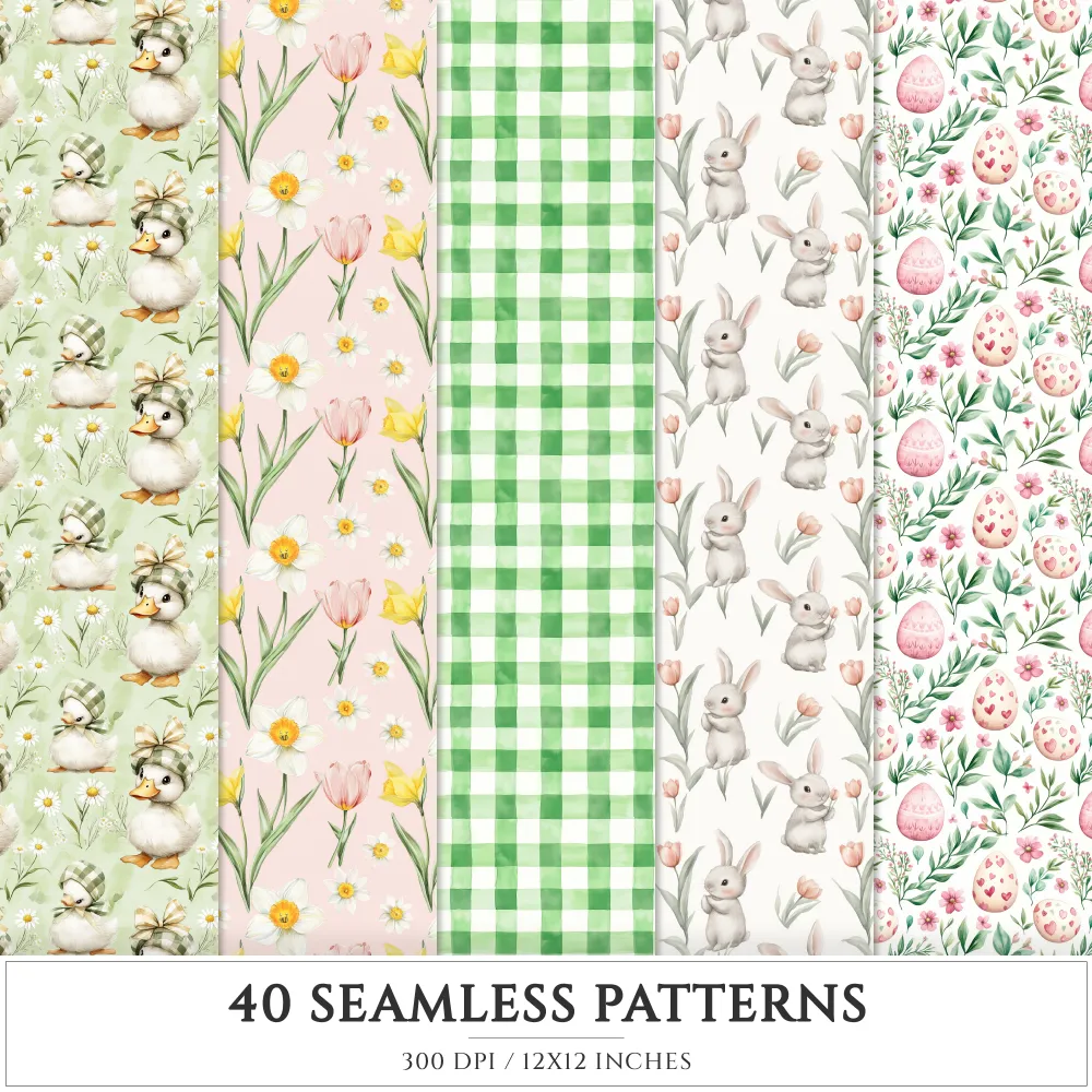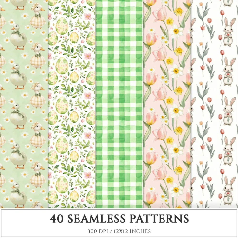 Happy Easter Seamless Patterns, Cozy floral easter JPEG, Checkered plaid pattern, Easter bunnies repeating pattern, Digital scrapbook paper