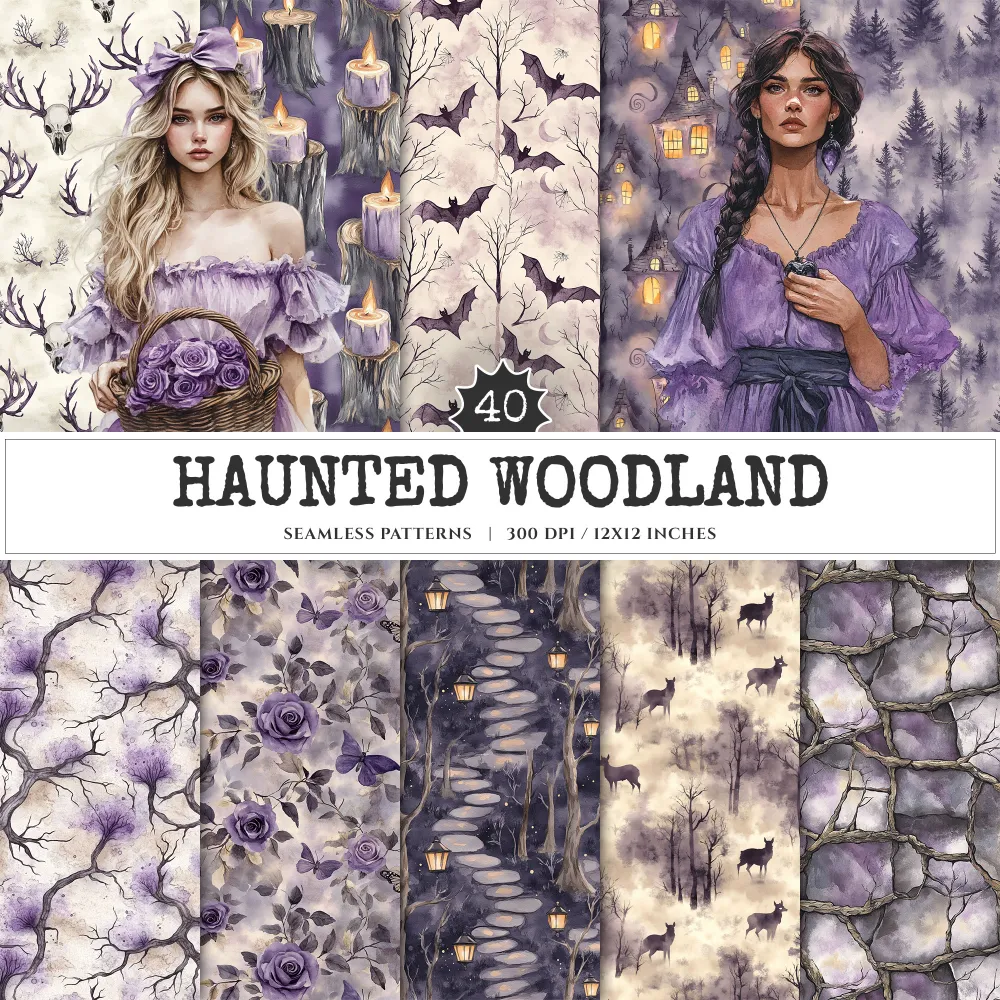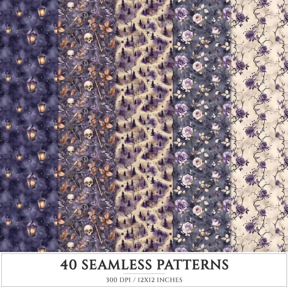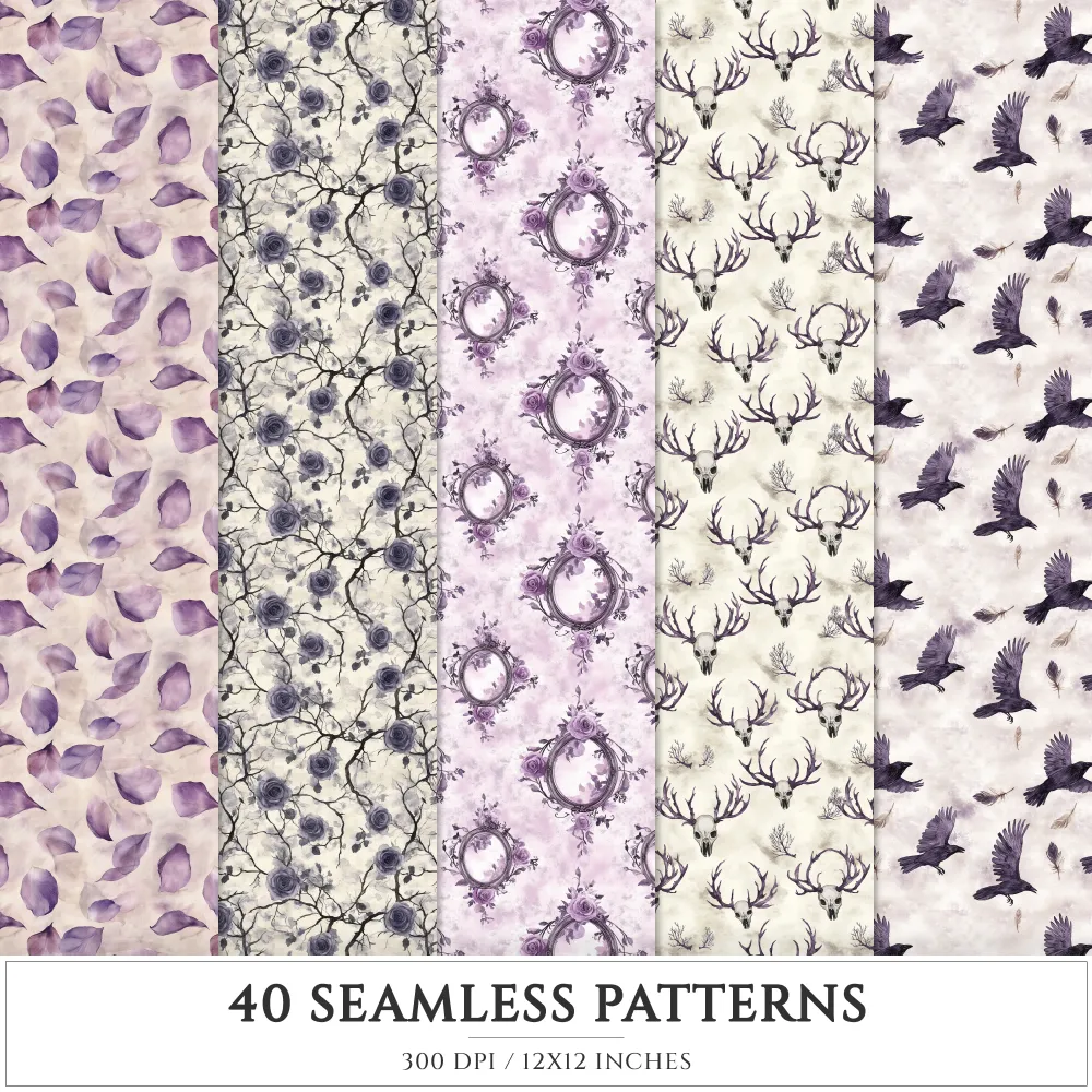 Haunted Woodland Seamless Patterns, Creepy woodland JPEG, Raven pattern, Halloween, Gothic rose repeating pattern, Digital scrapbook paper