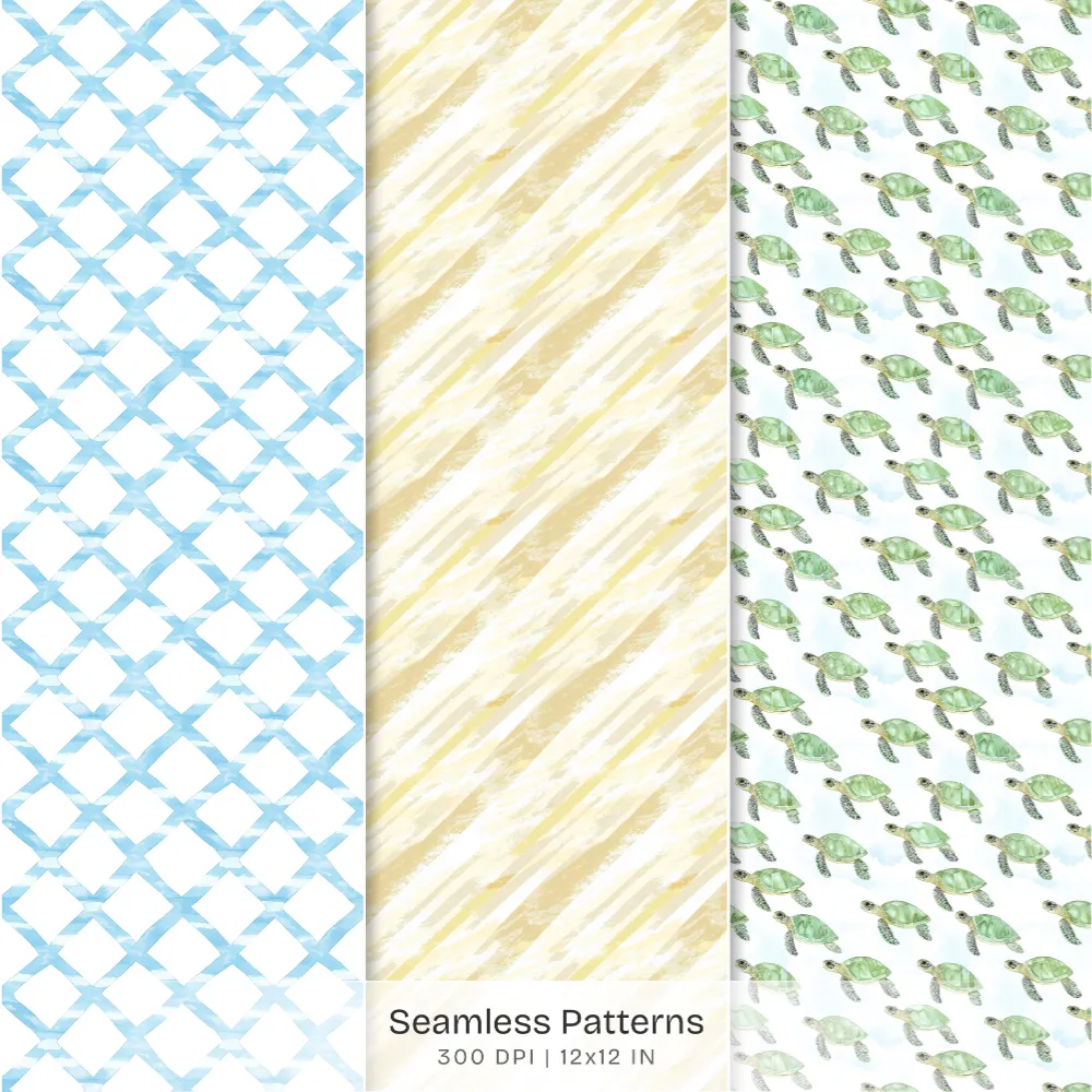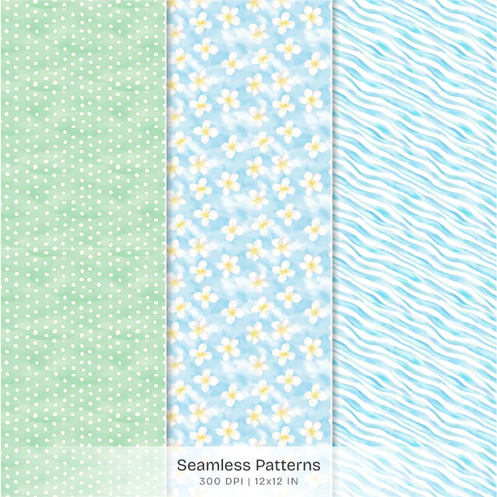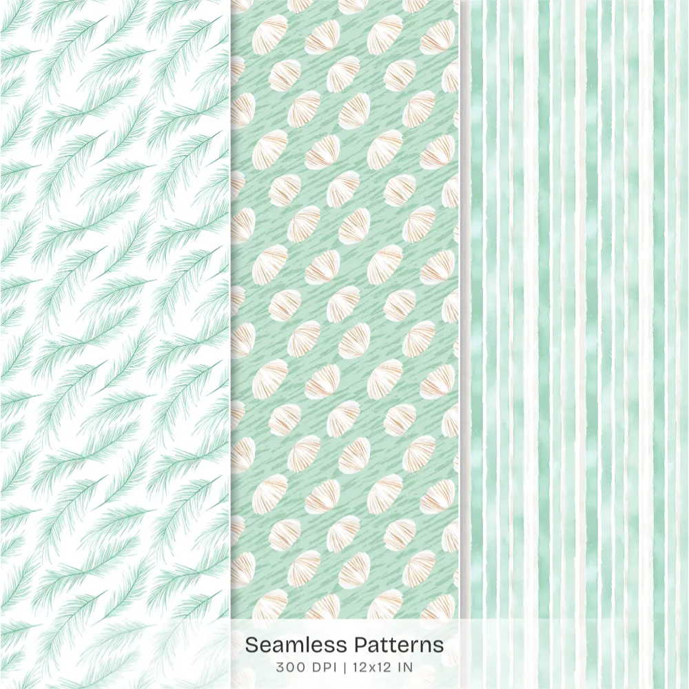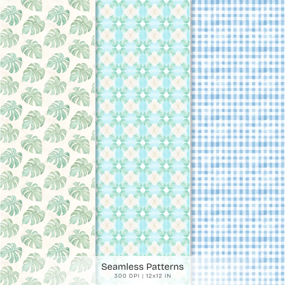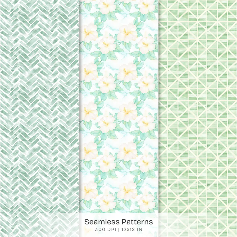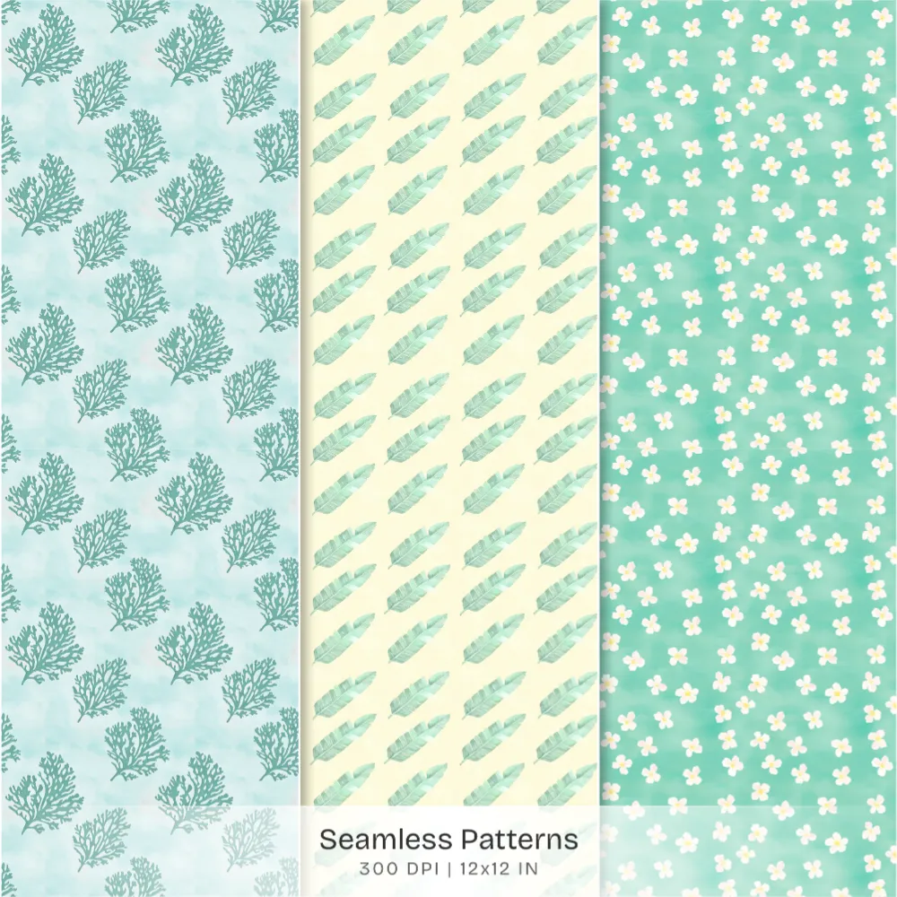 Hawaii Shores Seamless Patterns, Hibiscus Florals JPEG, Tropical Beach Pattern, Seashells Repeating Pattern, Digital Scrapbook Paper