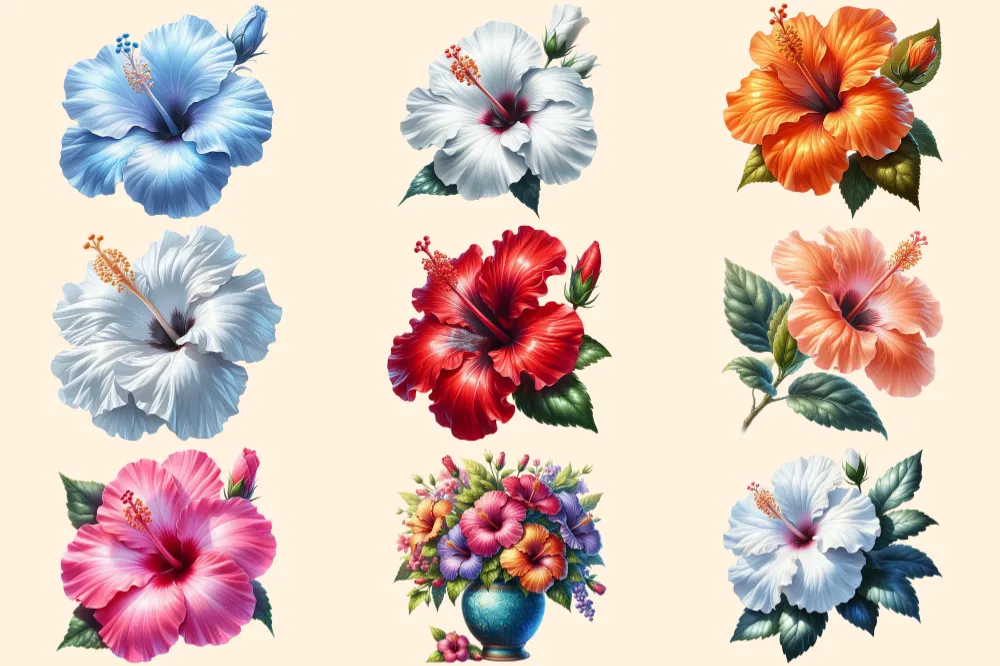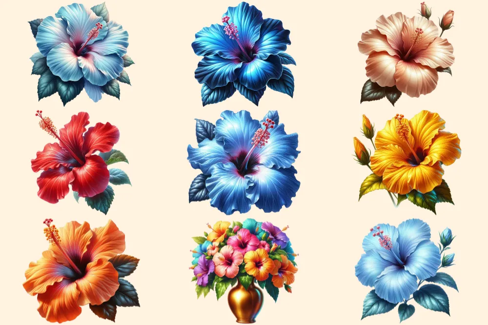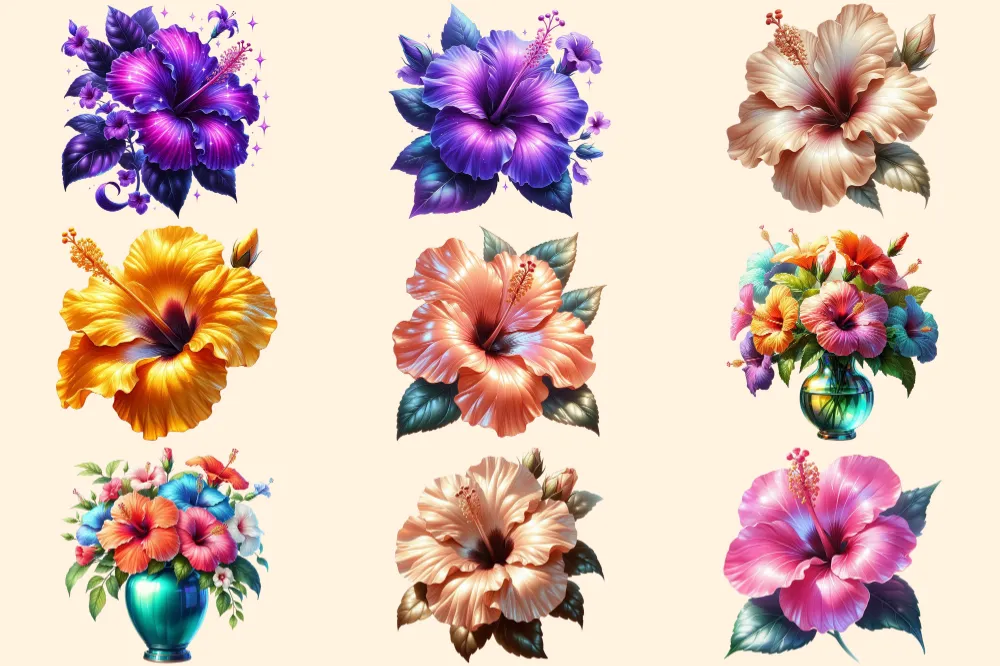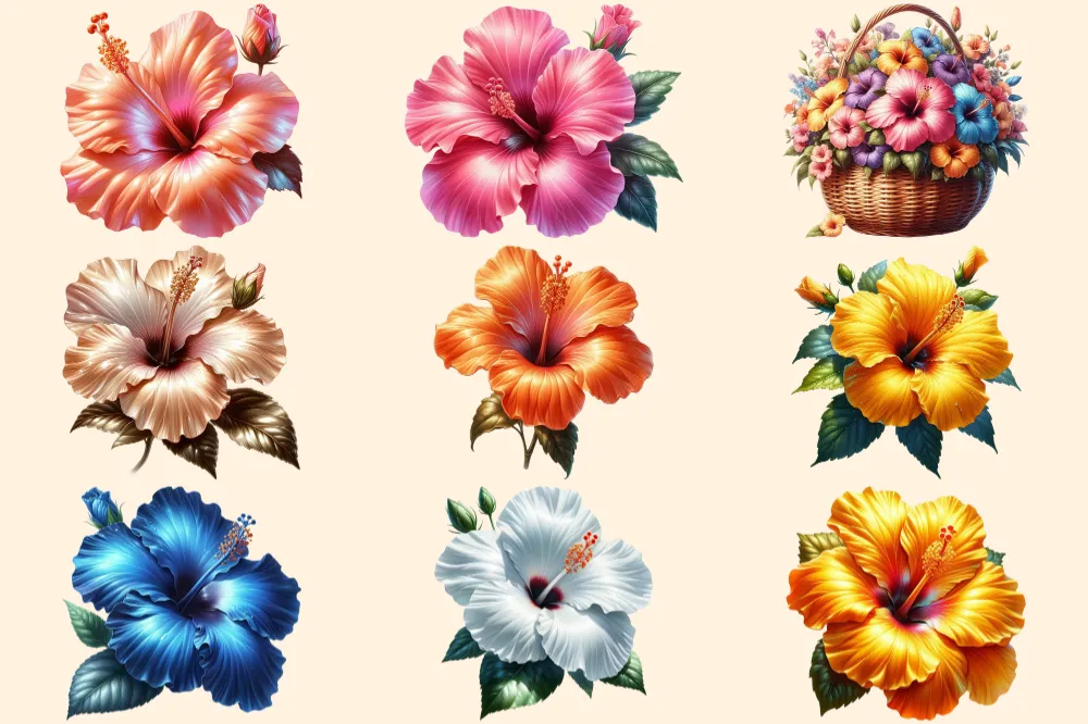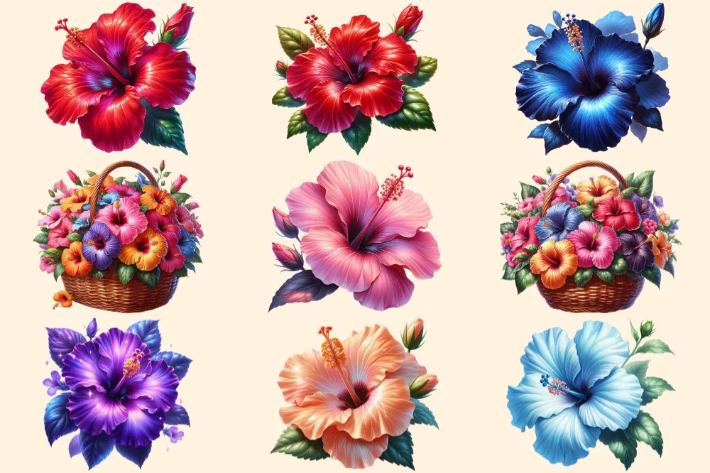 Hibiscus PNG Clipart Collection – 45 PNG, Bright Tropical blooms illustrations, Vibrant floral prints, Commercial use, Digital download