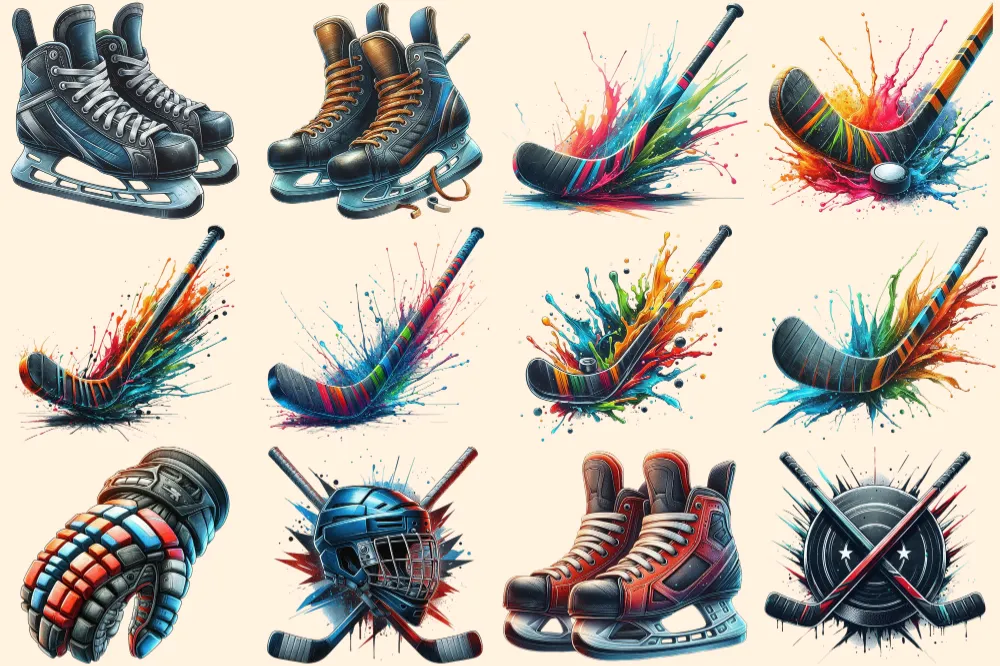 Hockey PNG Clipart Collection – 56 PNG, Vibrant hockey illustrations, Athletic sports art, Commercial use, Digital download