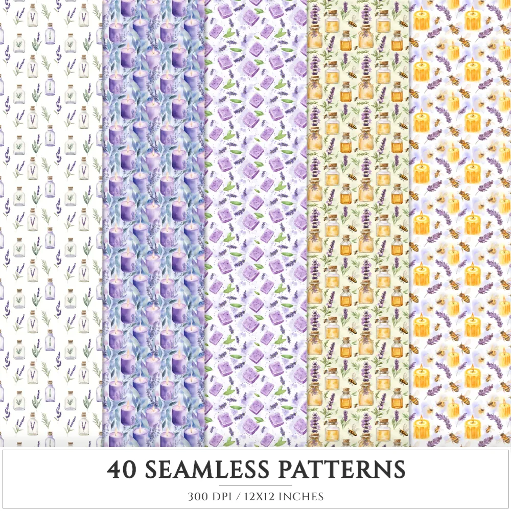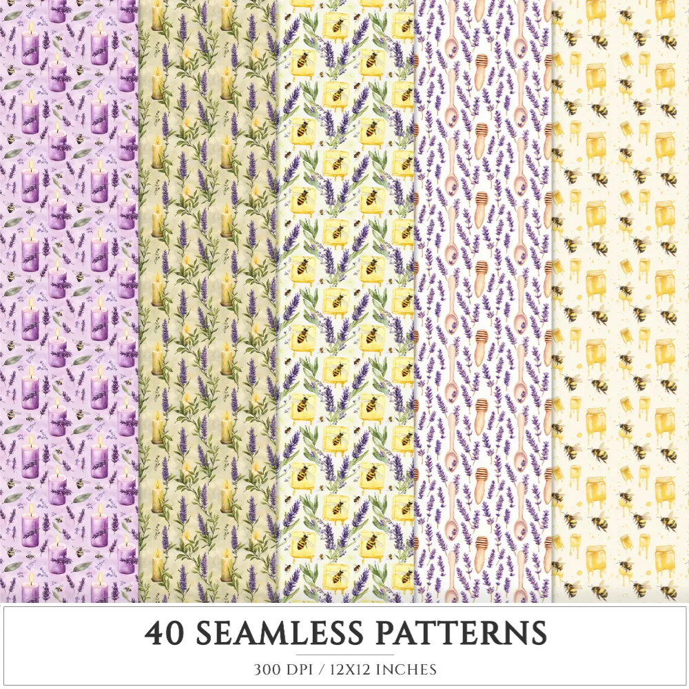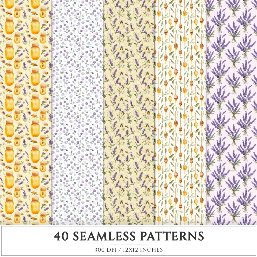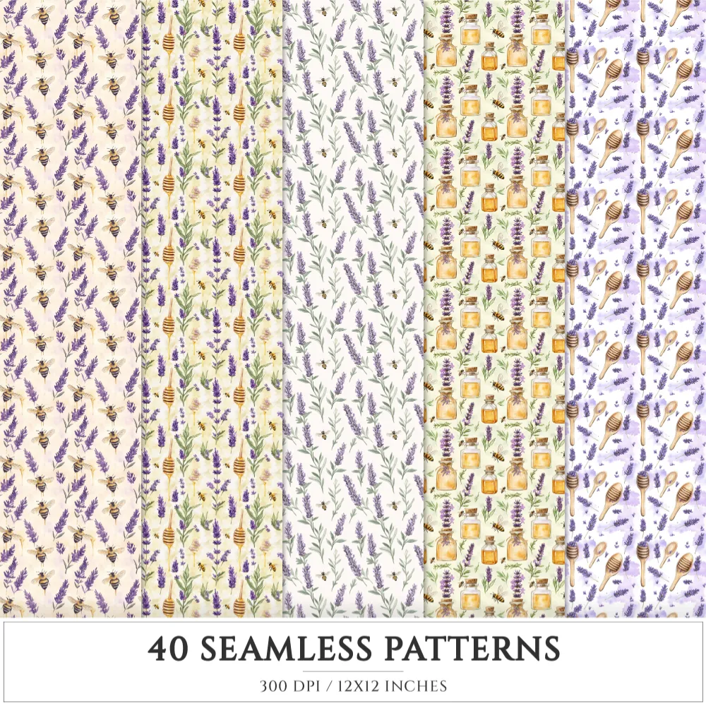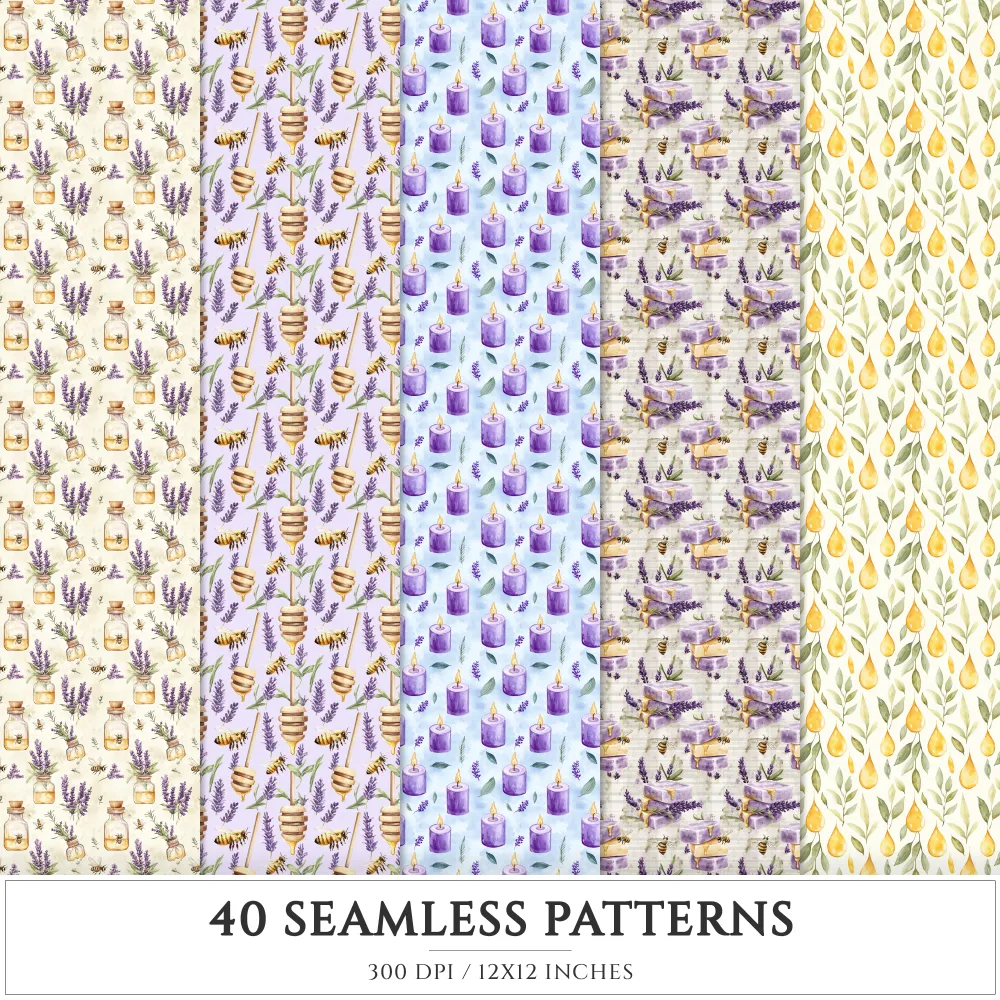 Honey and Herbs Seamless Patterns, Lavender Herb JPEG, Honey Pot, Bee Pattern, Herbal, Lavender Repeating Pattern, Digital Scrapbook Paper
