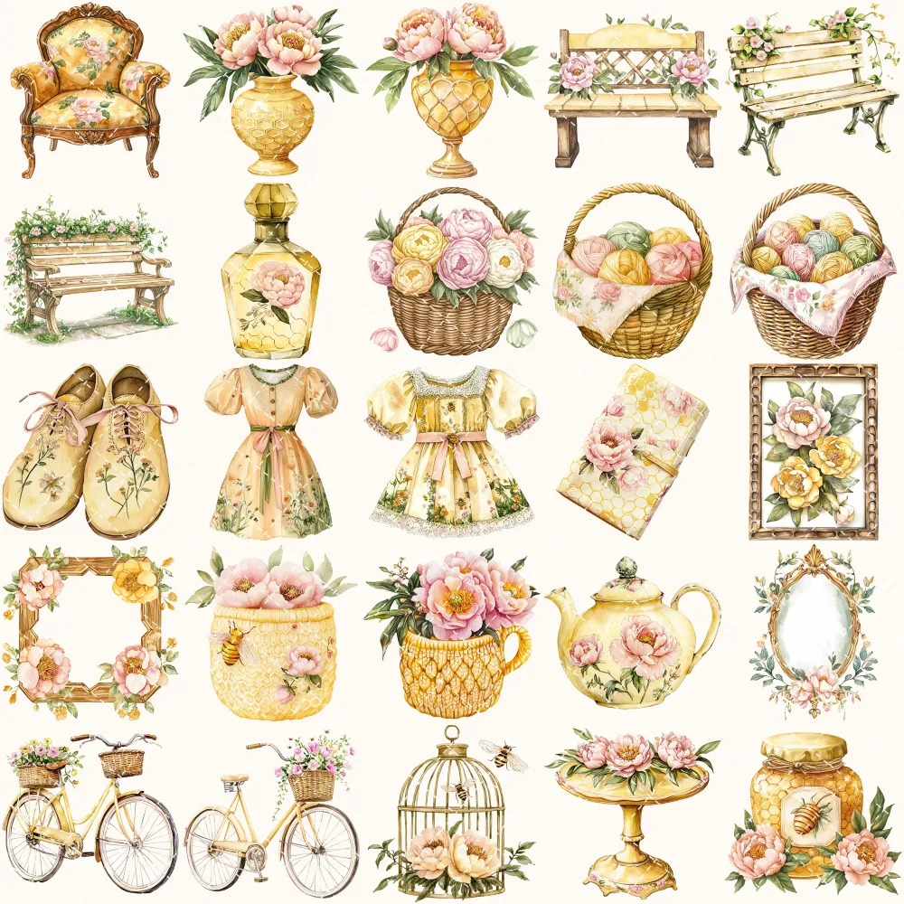 Honey Petal Archive Clipart Set – Vintage Botanical Illustrations, Antique Floral Graphics, Springtime, Spring Peony, Digital download